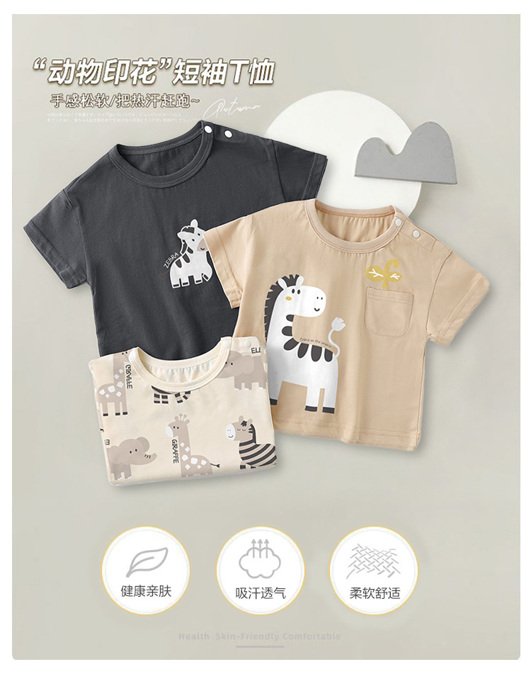 아기 옷 캐주얼 반팔 티셔츠 소년 소녀를위한 여름 옷 아기 중소형 어린이 아기 반소매 최고 트렌디스토어 가기