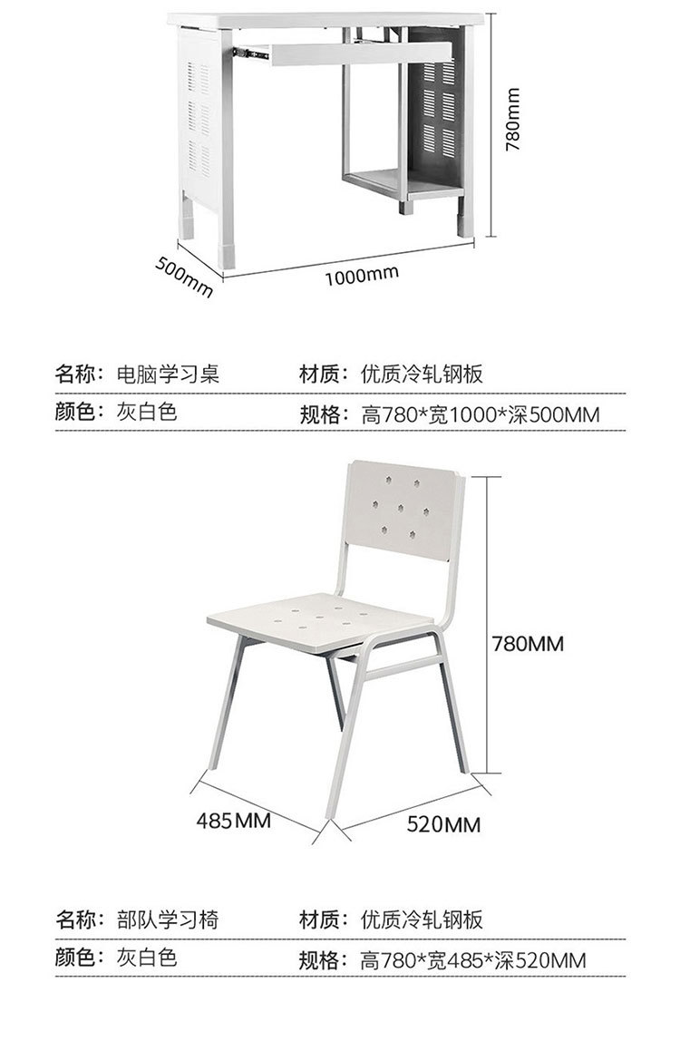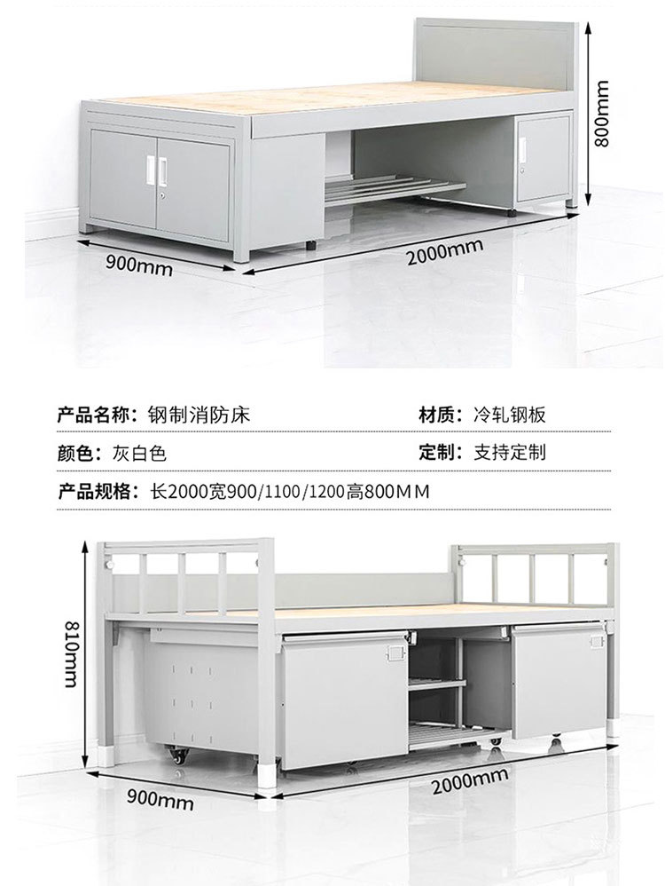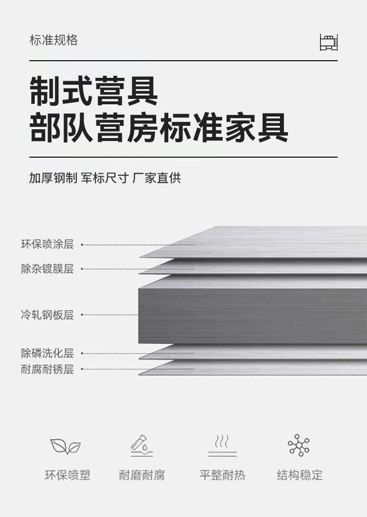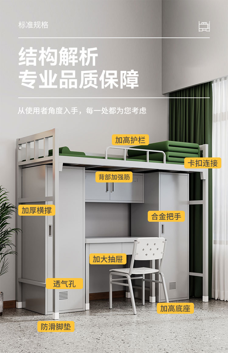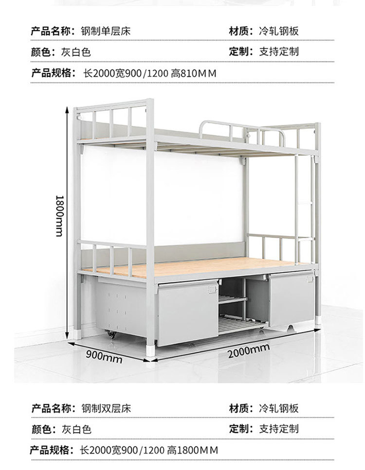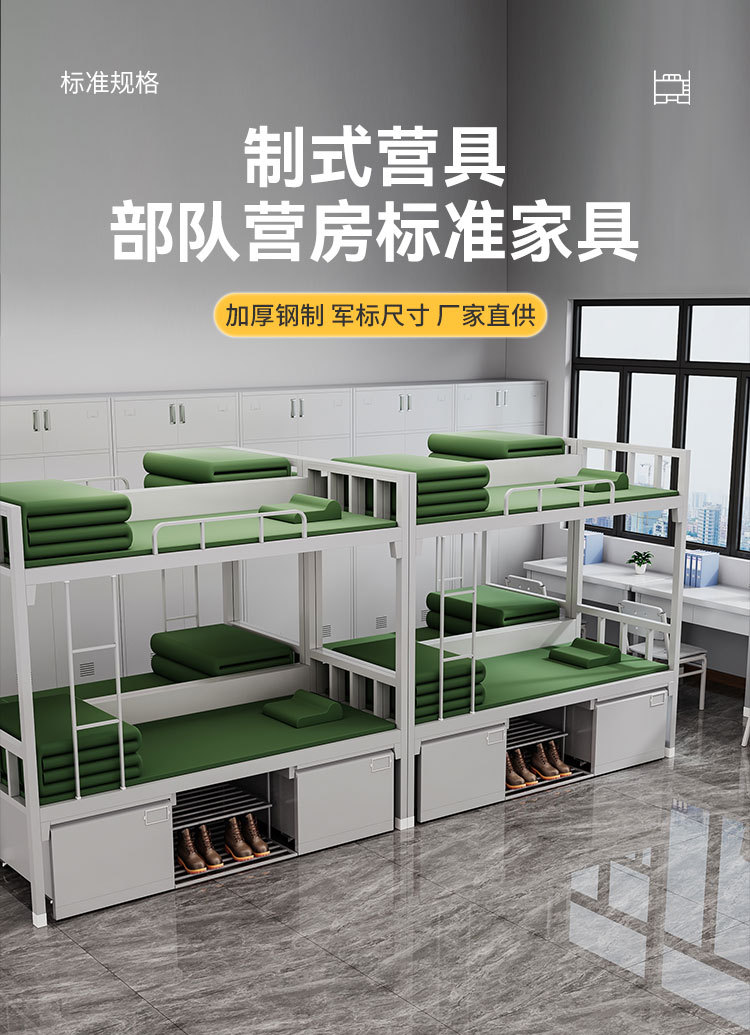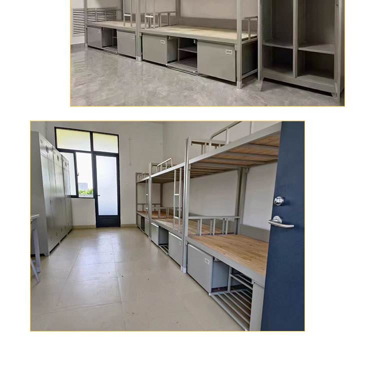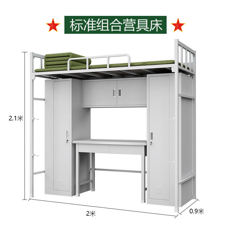 표준 캠프 장비 이층 침대 유닛 이층 철제 프레임 침대 직원 기숙사 침대 아래 테이블 내부 캐비닛 학습 테이블