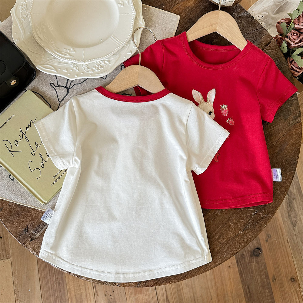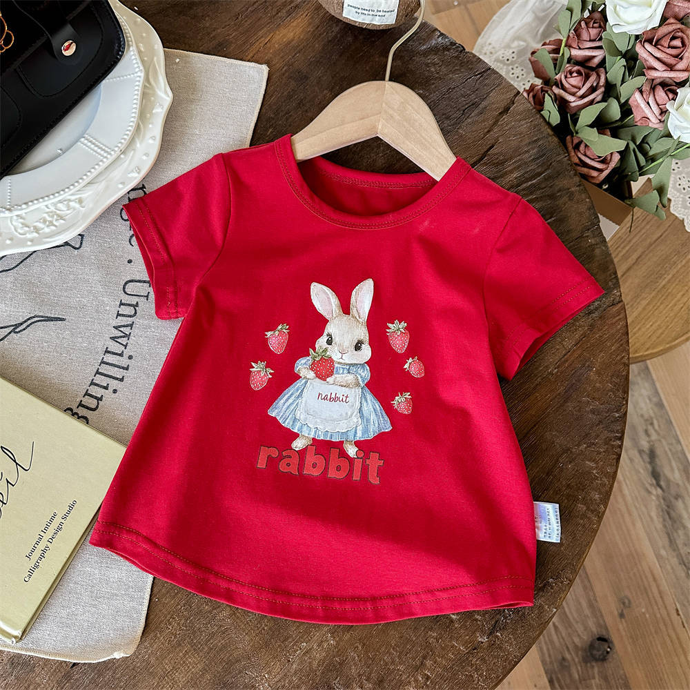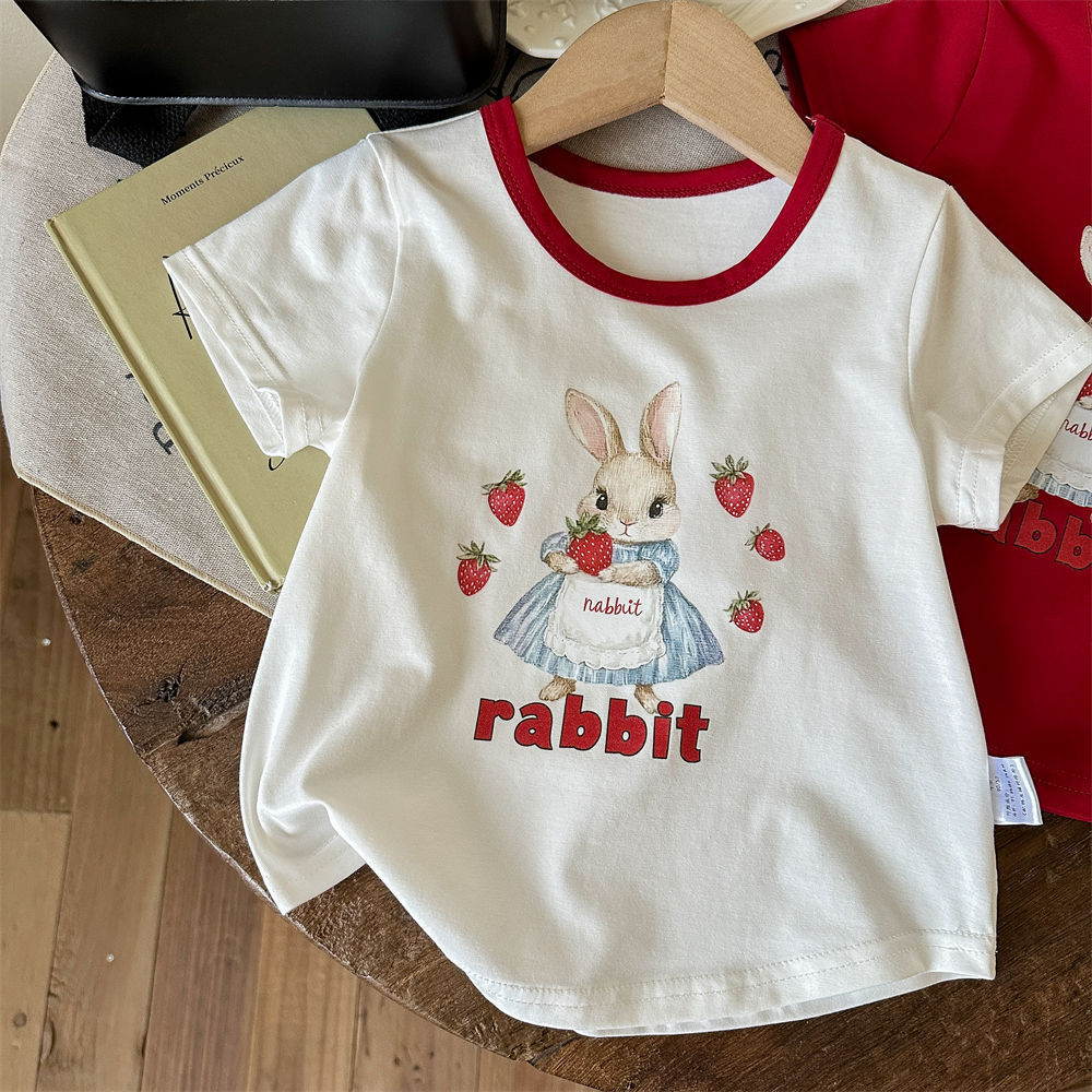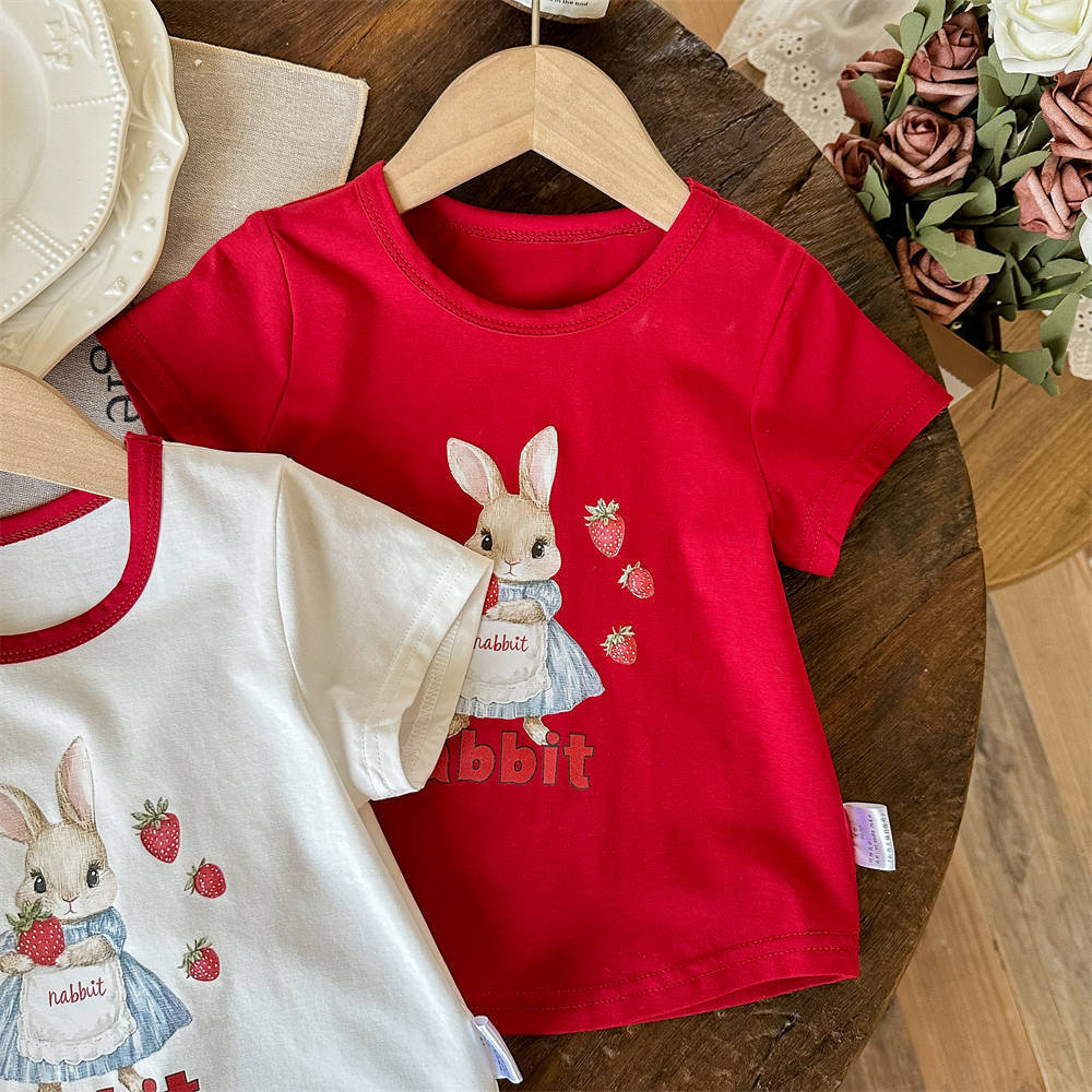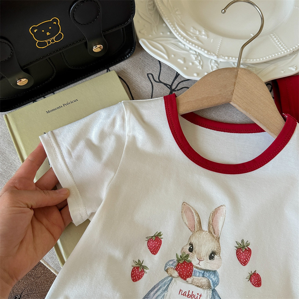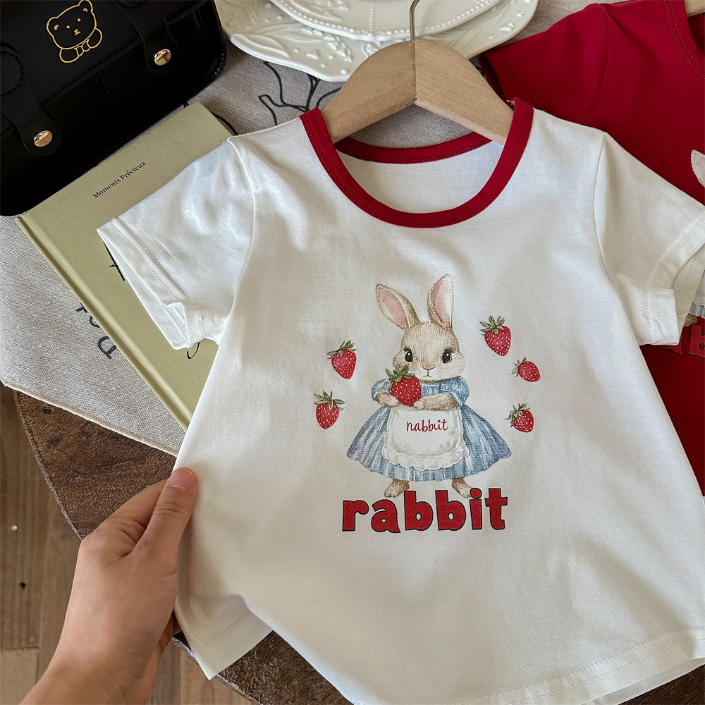 스위트 쇼트 슬리브 티셔츠 여름 한국 스타일 기본 티셔츠 여자 아이 토끼 아기 여름 상의