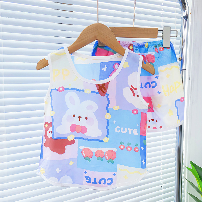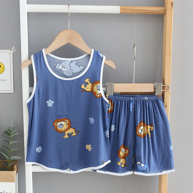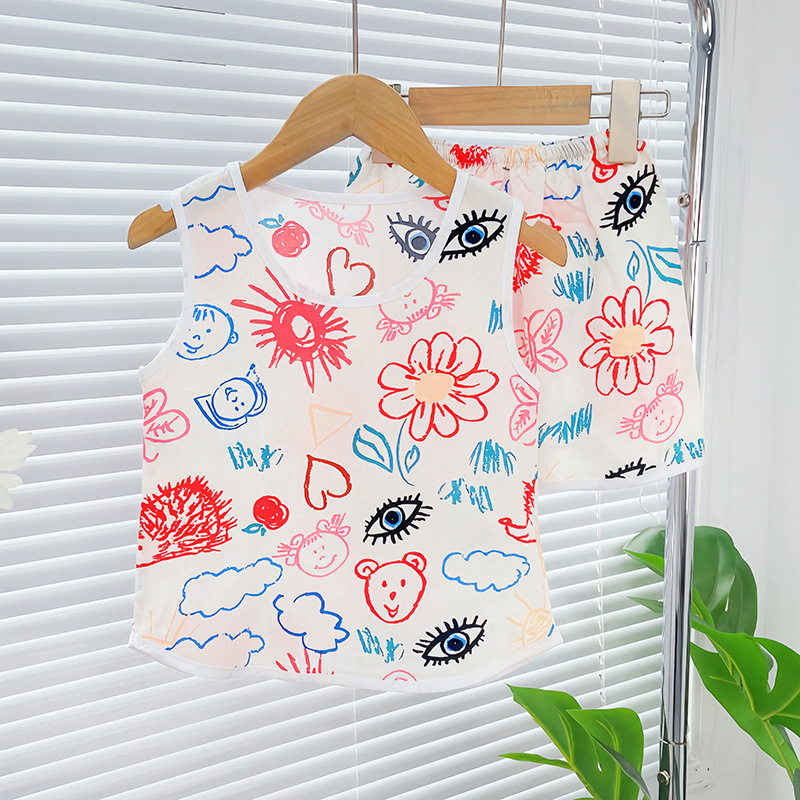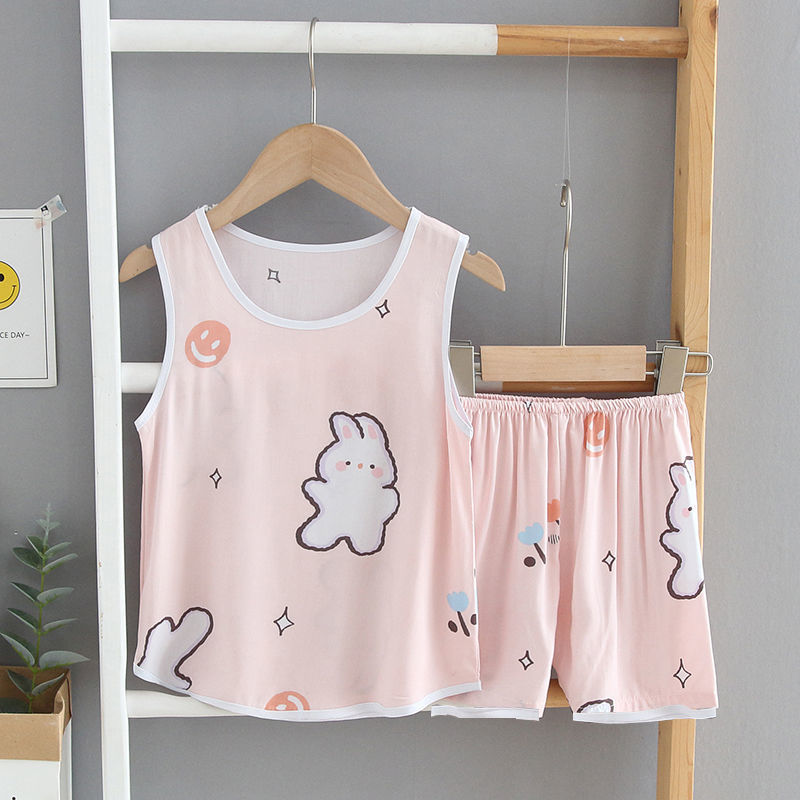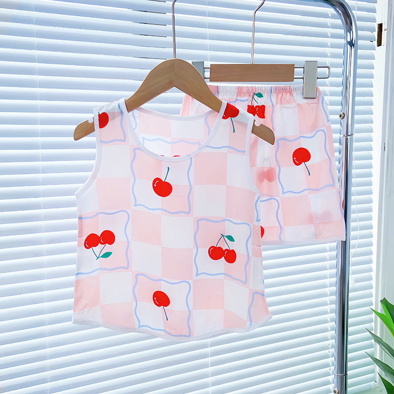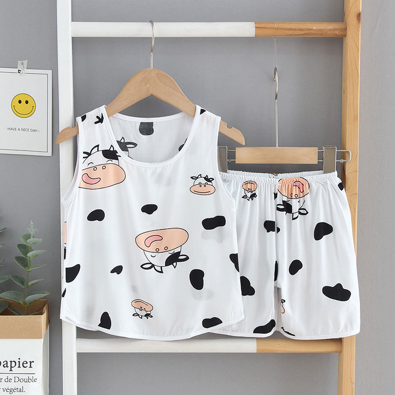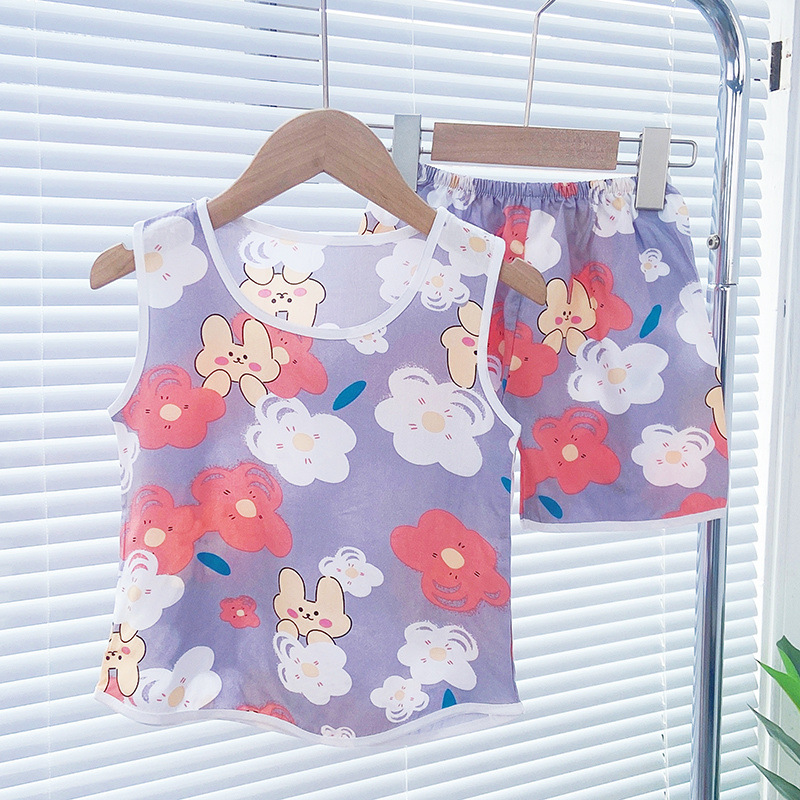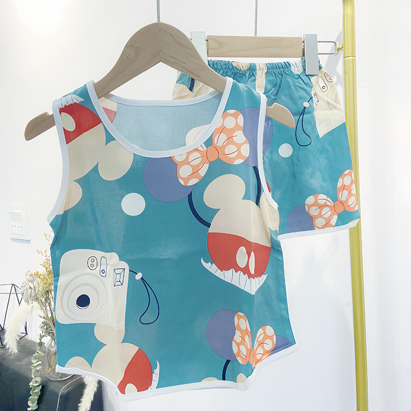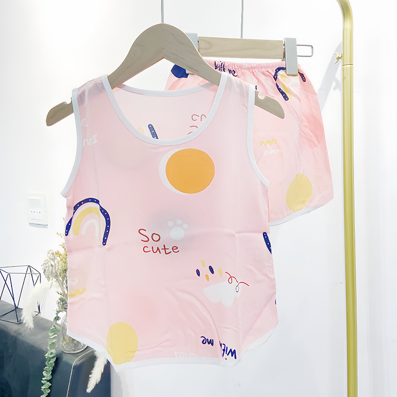 여름 어린이 홈 의류 소년과 소녀 얇은 실크 조끼 어린이 여름 민소매 세트 아기 면 실크 파자마