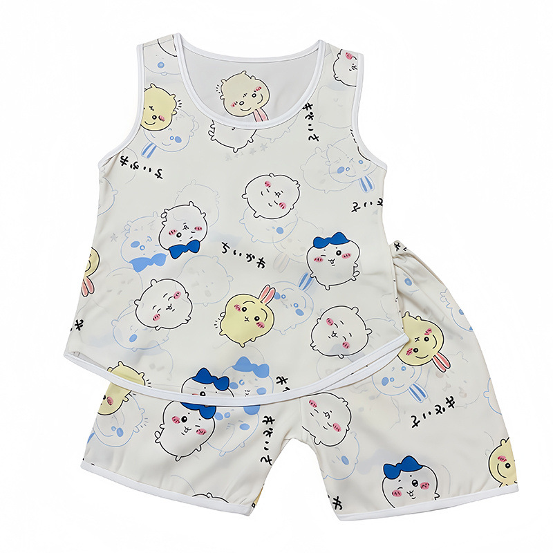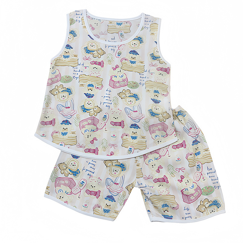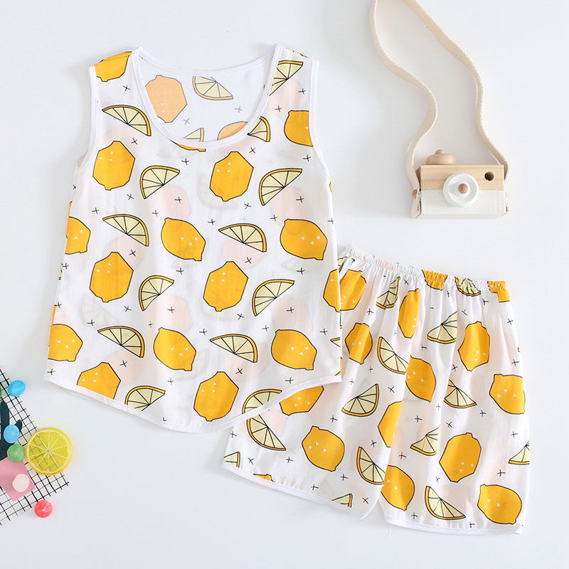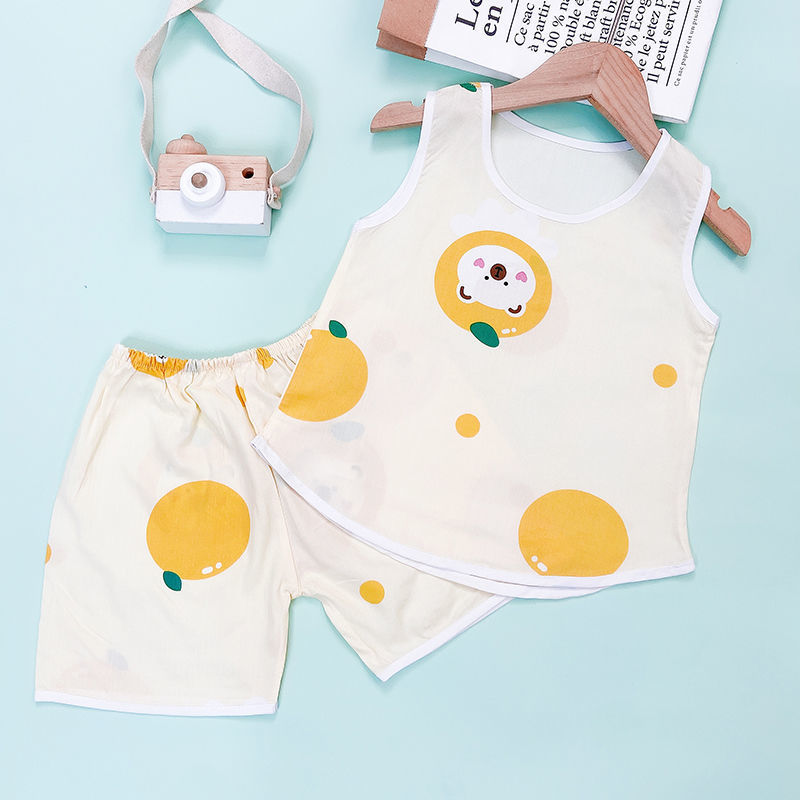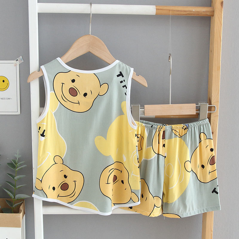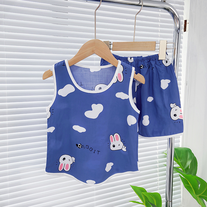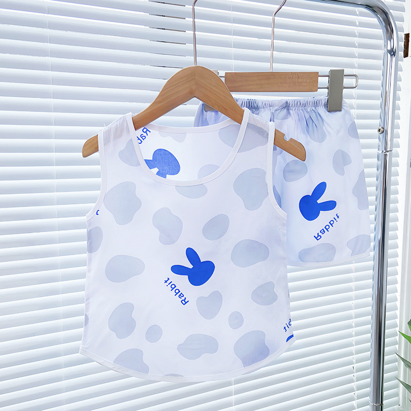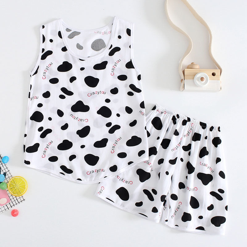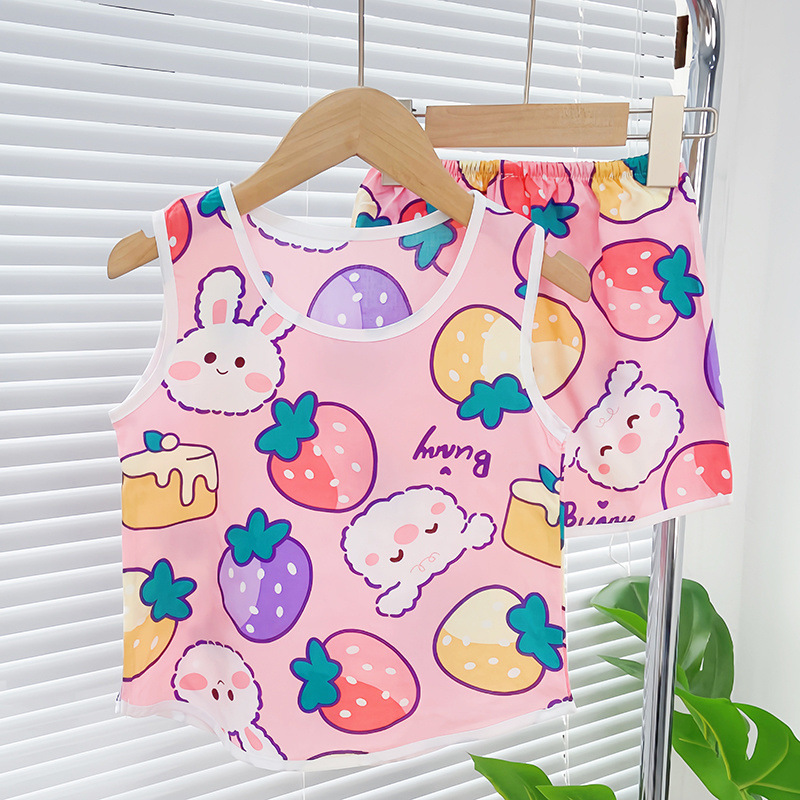여름 어린이 홈 의류 소년과 소녀 얇은 실크 조끼 어린이 여름 민소매 세트 아기 면 실크 파자마