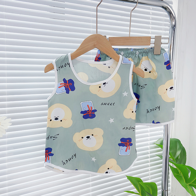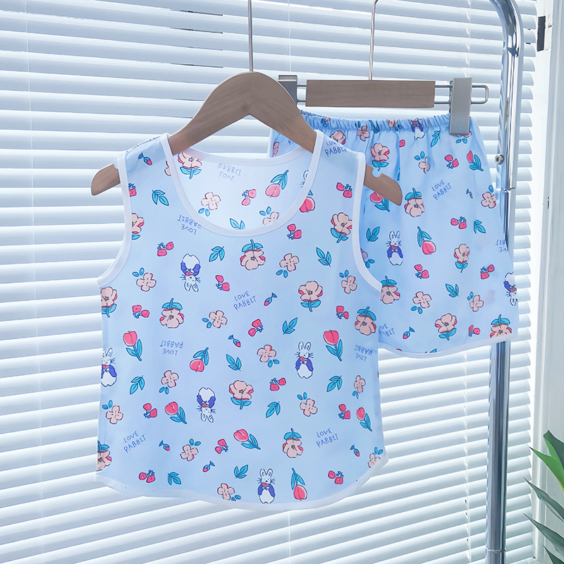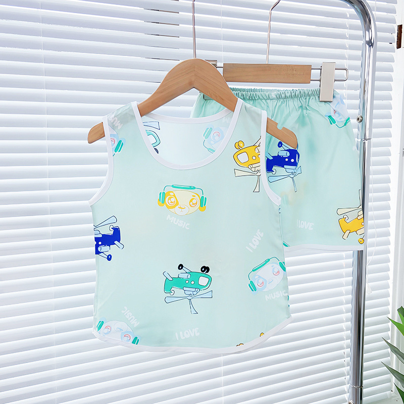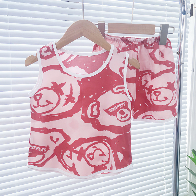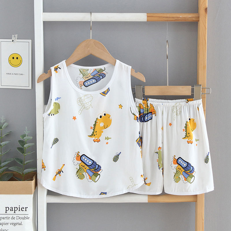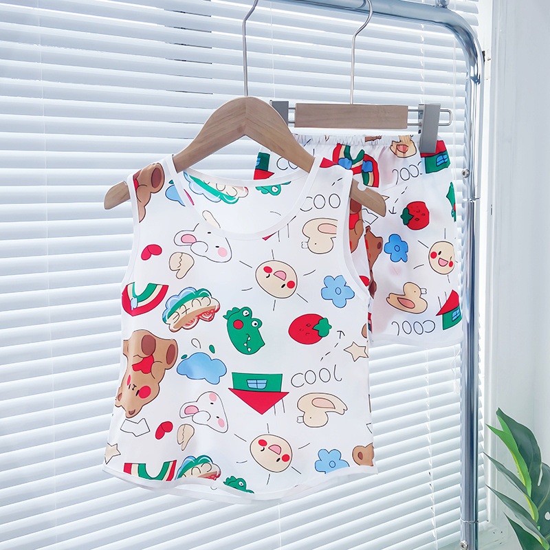 여름 어린이 홈 의류 소년과 소녀 얇은 실크 조끼 어린이 여름 민소매 세트 아기 면 실크 파자마스토어 가기