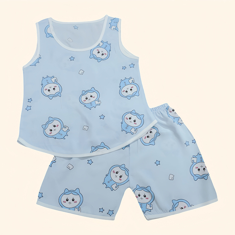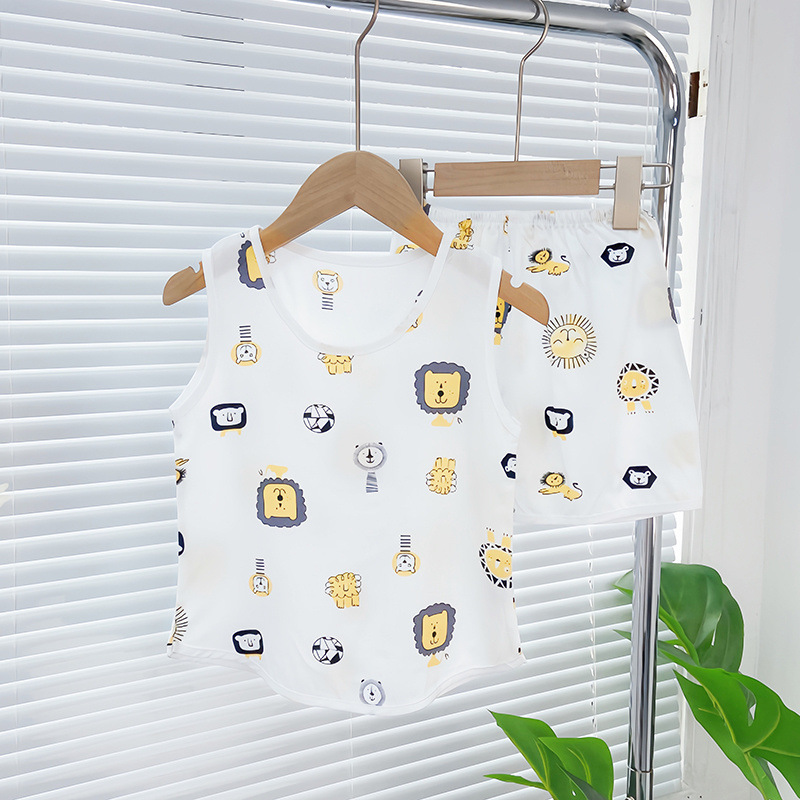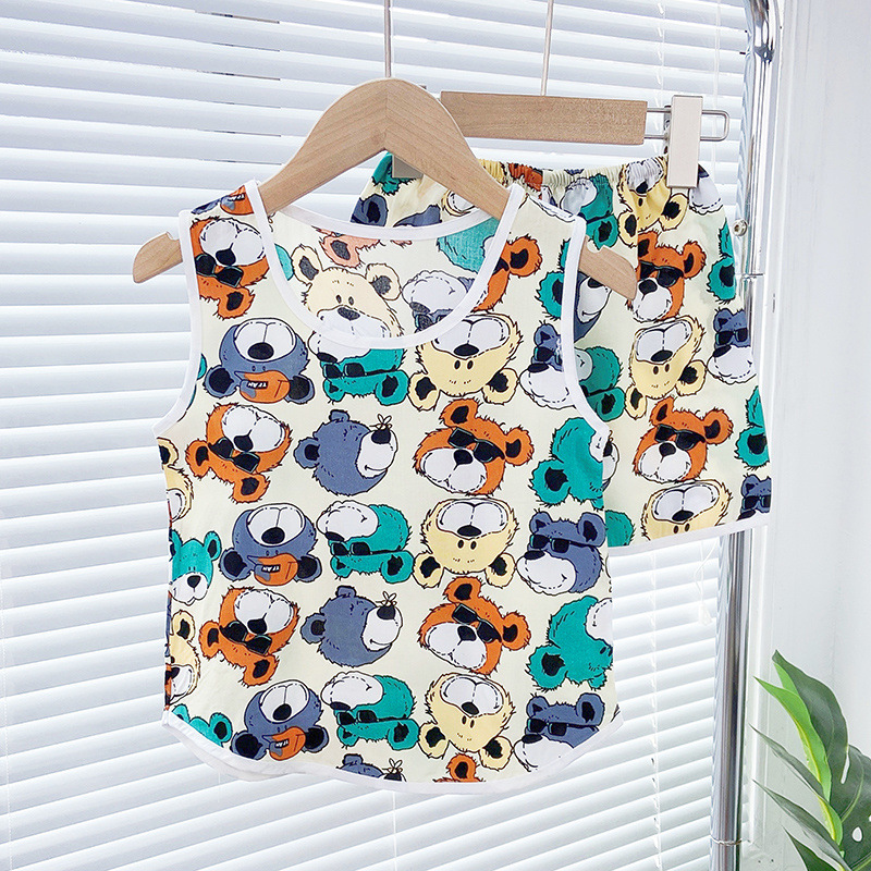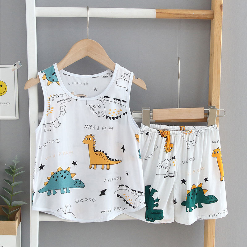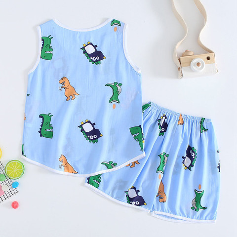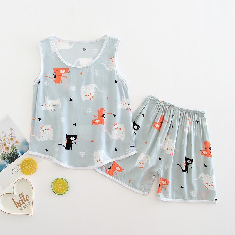 여름 어린이 홈 의류 소년과 소녀 얇은 실크 조끼 어린이 여름 민소매 세트 아기 면 실크 파자마스토어 가기