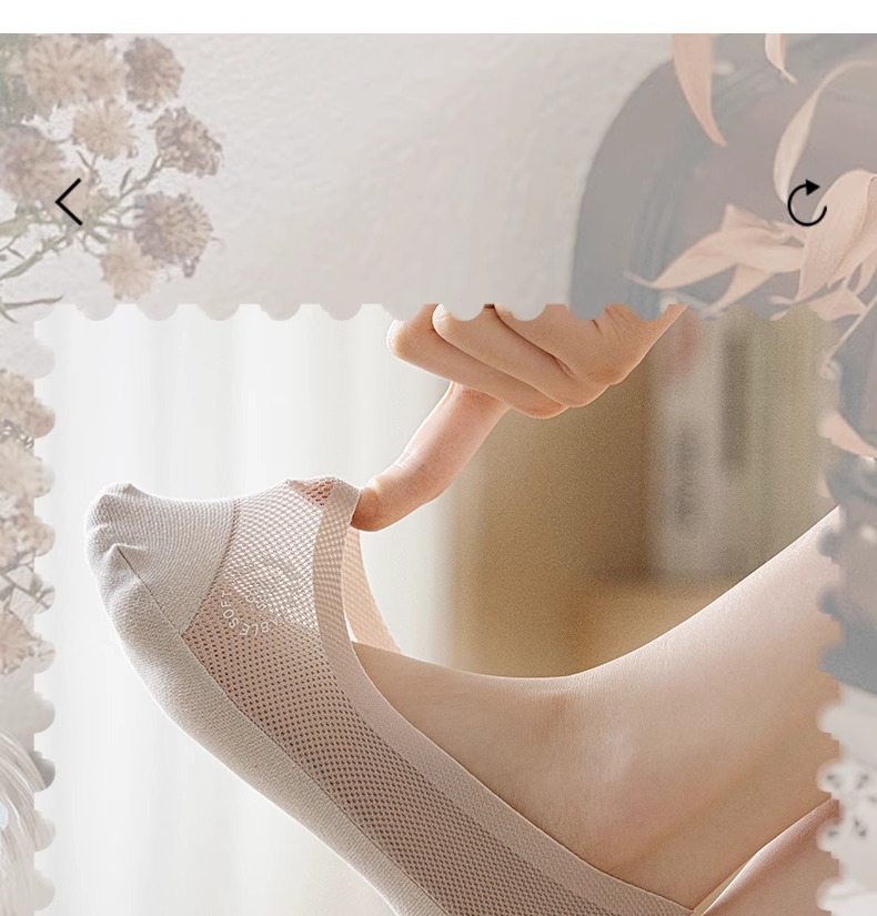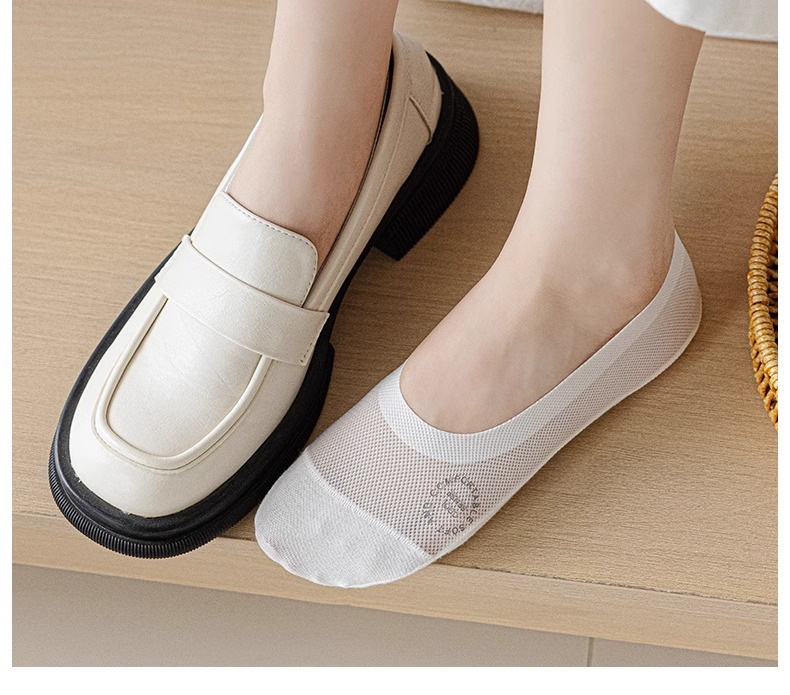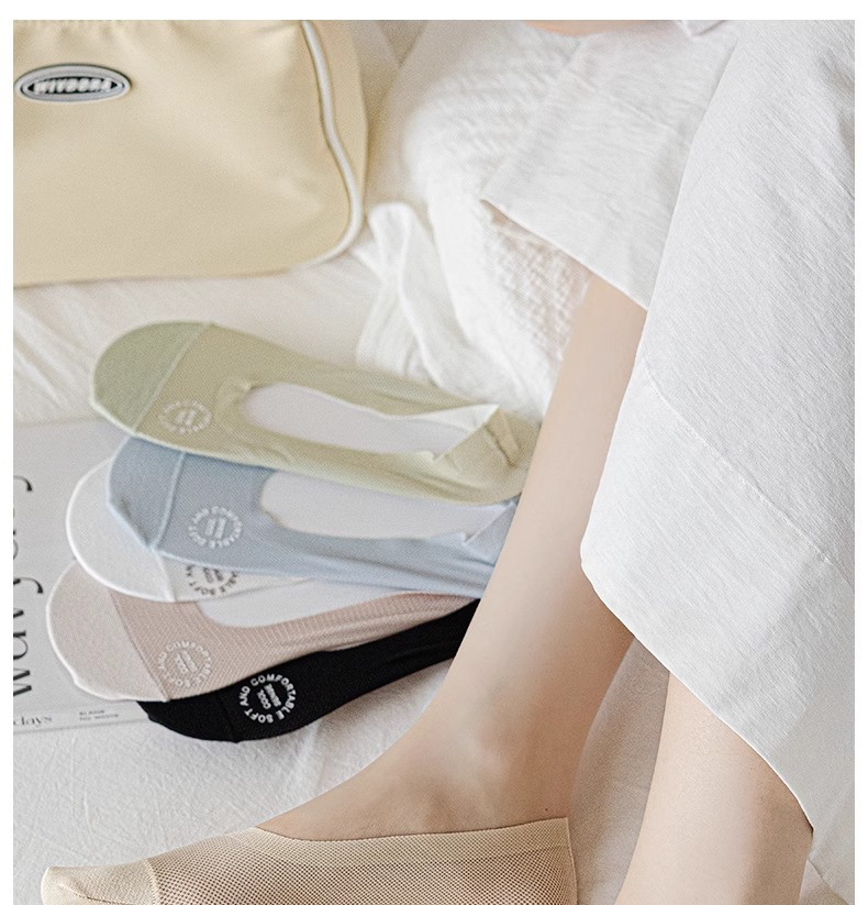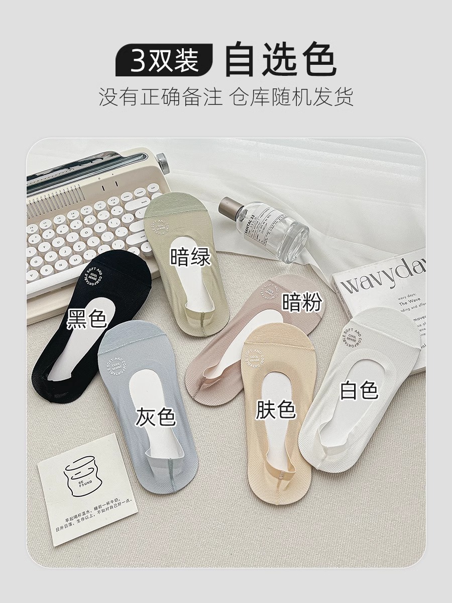 여름철 여성용 아이스 실크 보트 양말, 얇고 하이힐, 싱글 슈즈, 미끄럼 방지, 떨어지지 않는 면 밑창 양말, 얕은 입 보이지 않는 양말스토어 가기