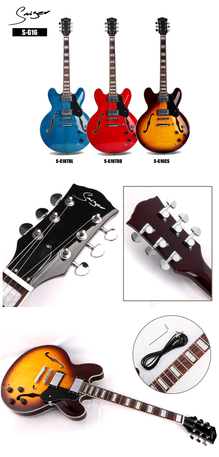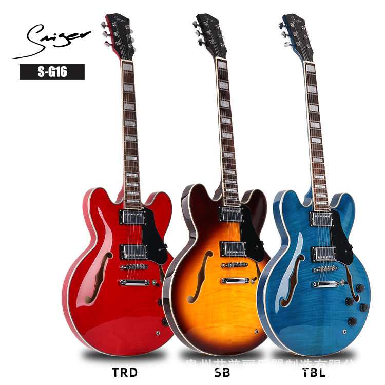 반 중공 일렉트릭 기타 도매 악기 일렉트릭 기타 공장 보급형 록 기타 로즈 우드 넥 기타