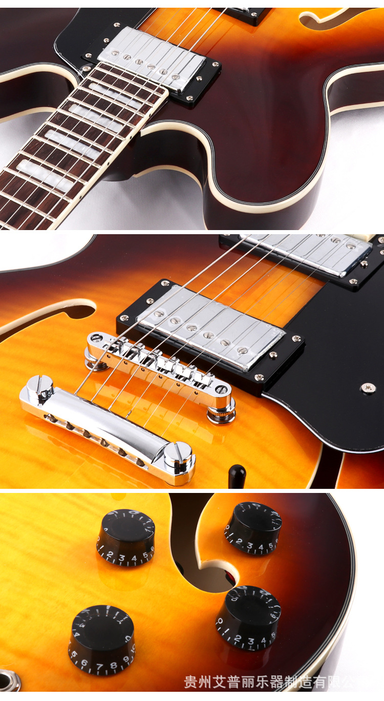 반 중공 일렉트릭 기타 도매 악기 일렉트릭 기타 공장 보급형 록 기타 로즈 우드 넥 기타스토어 가기