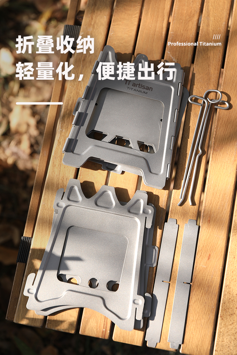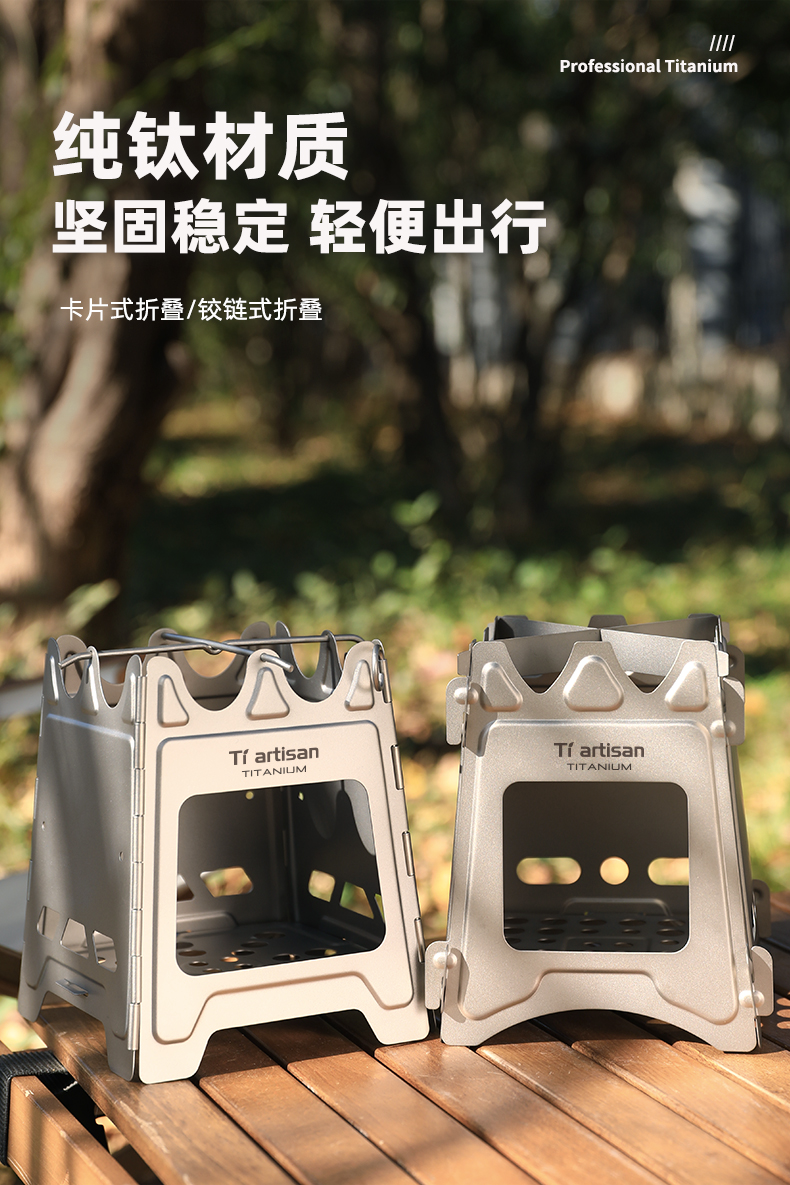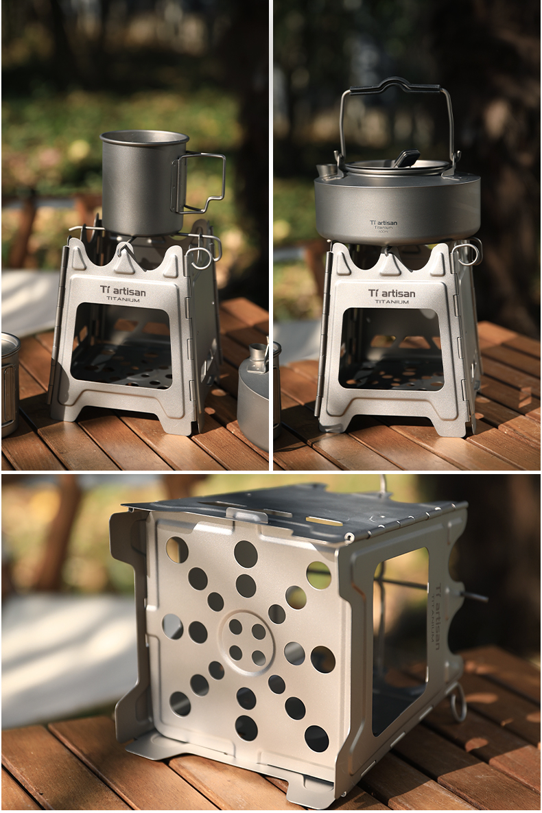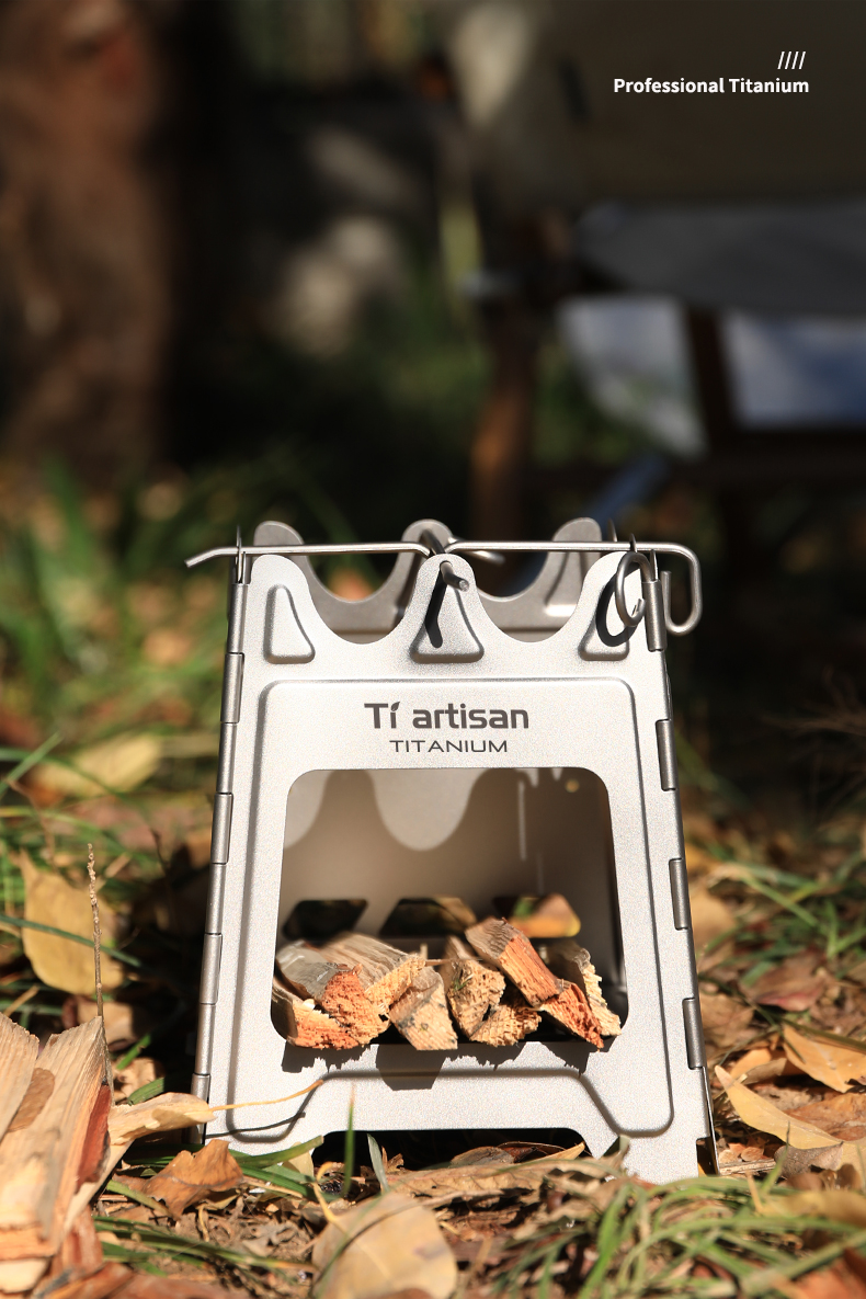 티타늄 장인 야외 순수 티타늄 장작 난로 캠핑 접이식 숯 난로 야외 바베큐 휴대용 스토브 카드 스토브