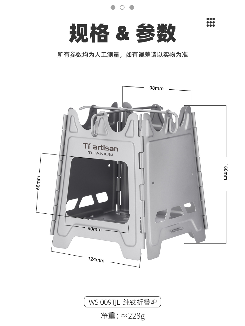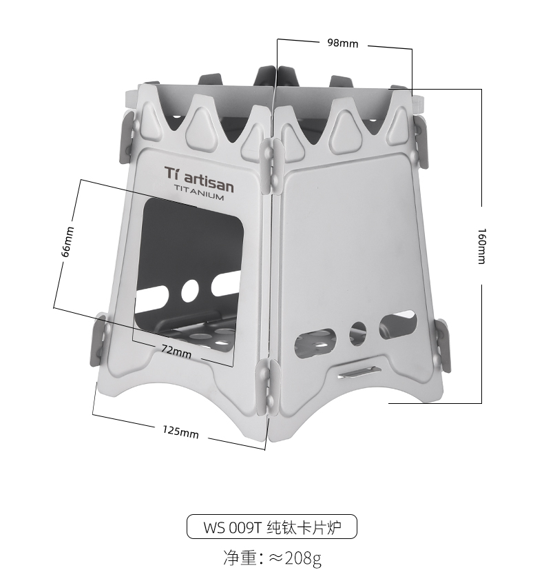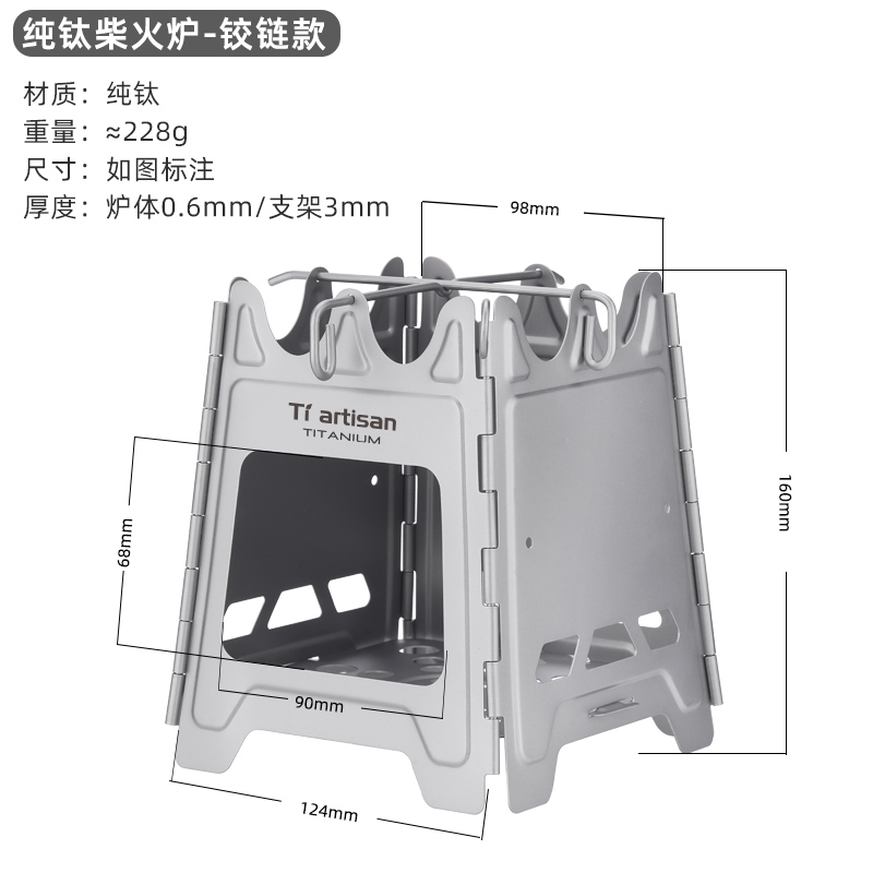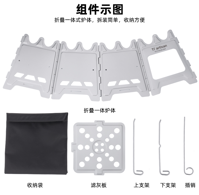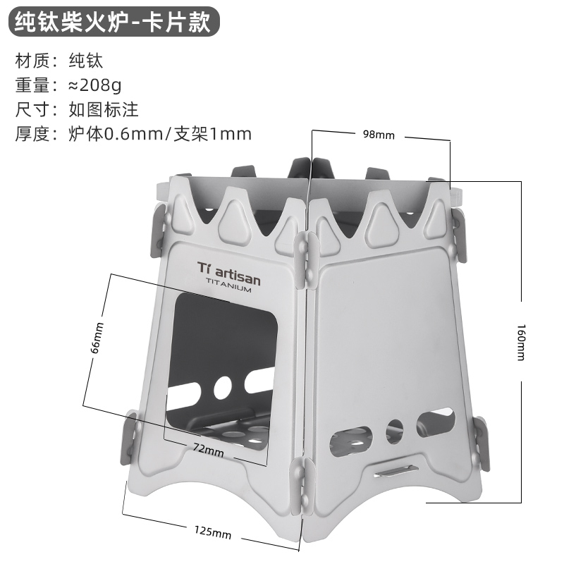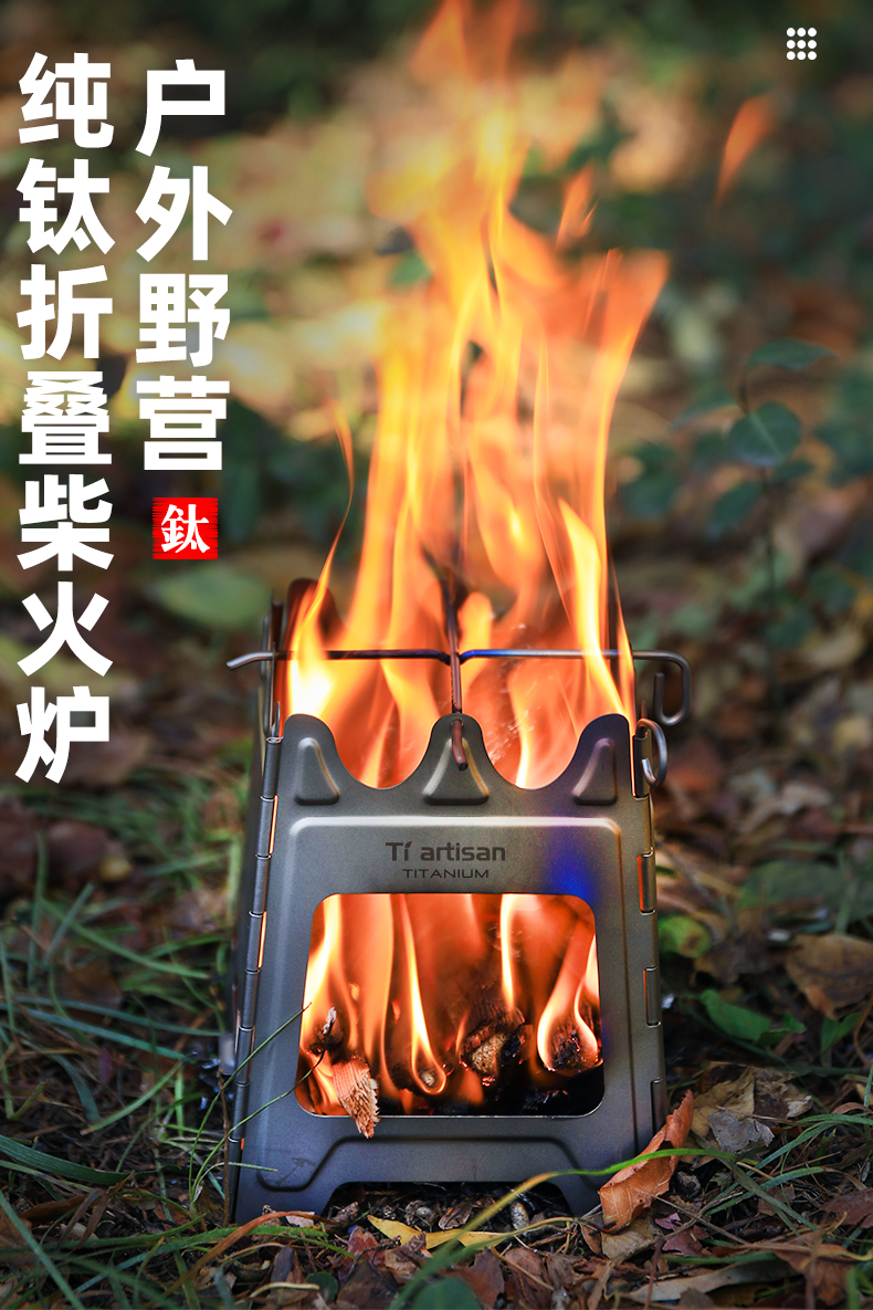 티타늄 장인 야외 순수 티타늄 장작 난로 캠핑 접이식 숯 난로 야외 바베큐 휴대용 스토브 카드 스토브