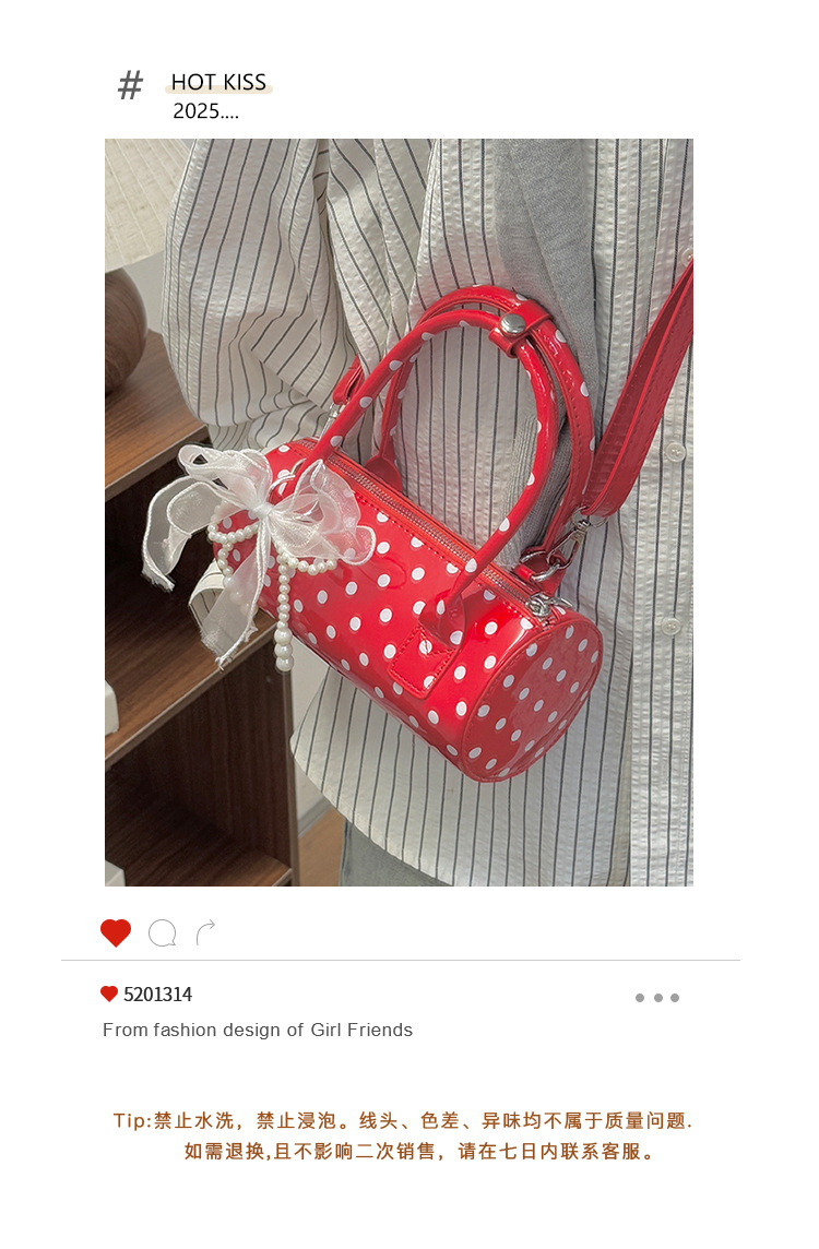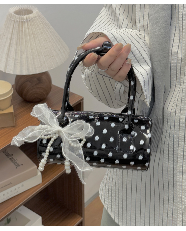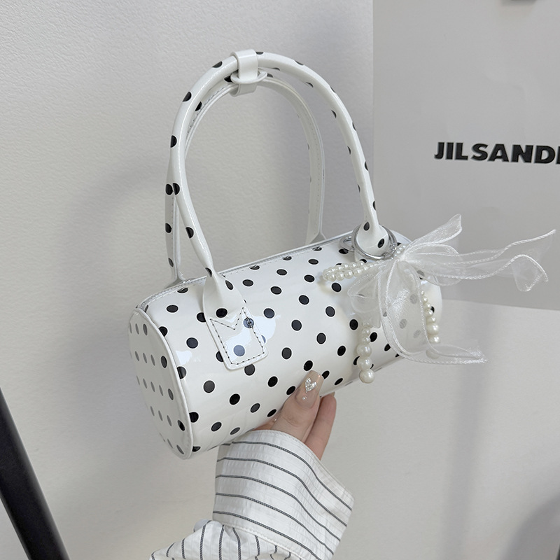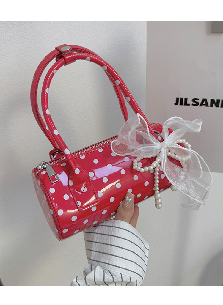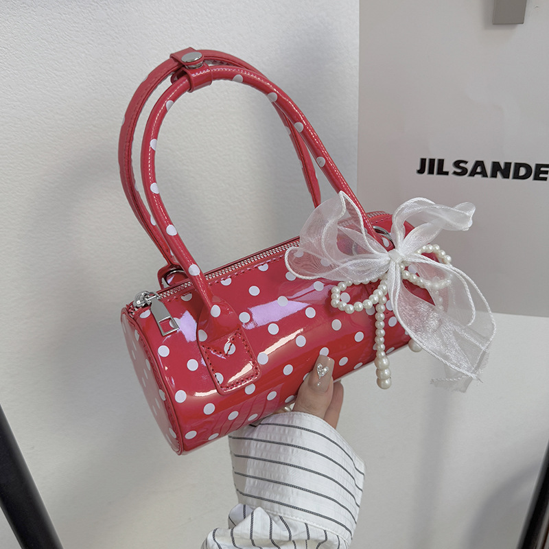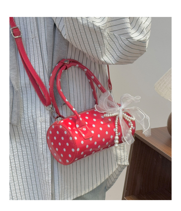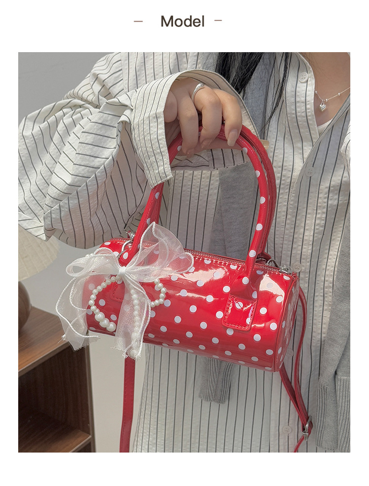 여성을위한 세련된 폴카 도트 가방 2025 여름 새로운 빨간색 핸드백 고급 단순 질감 통근 크로스 바디 백