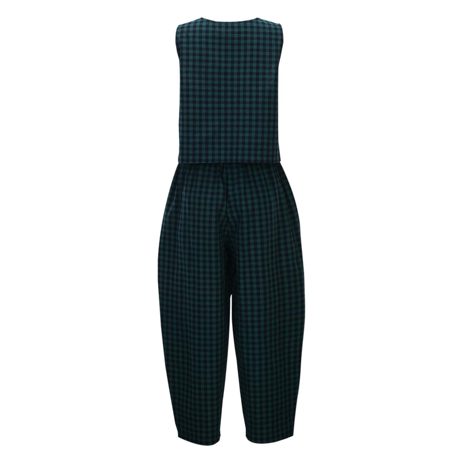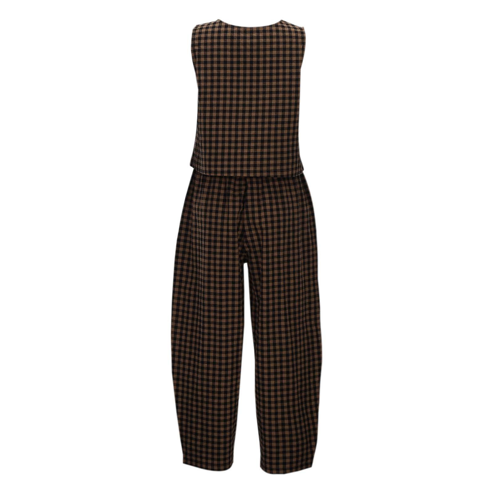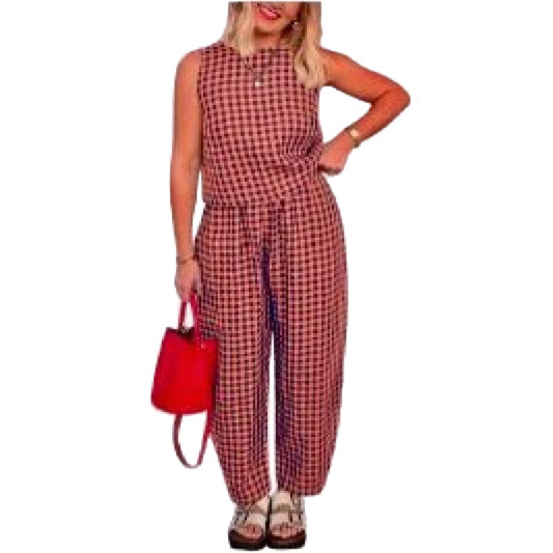 크로스보더 유럽 및 미국 여성 의류 2026 아마존 TK 신상 프린트 체크무늬 루즈핏 캐주얼 민소매 조끼와 롱 팬츠 세트