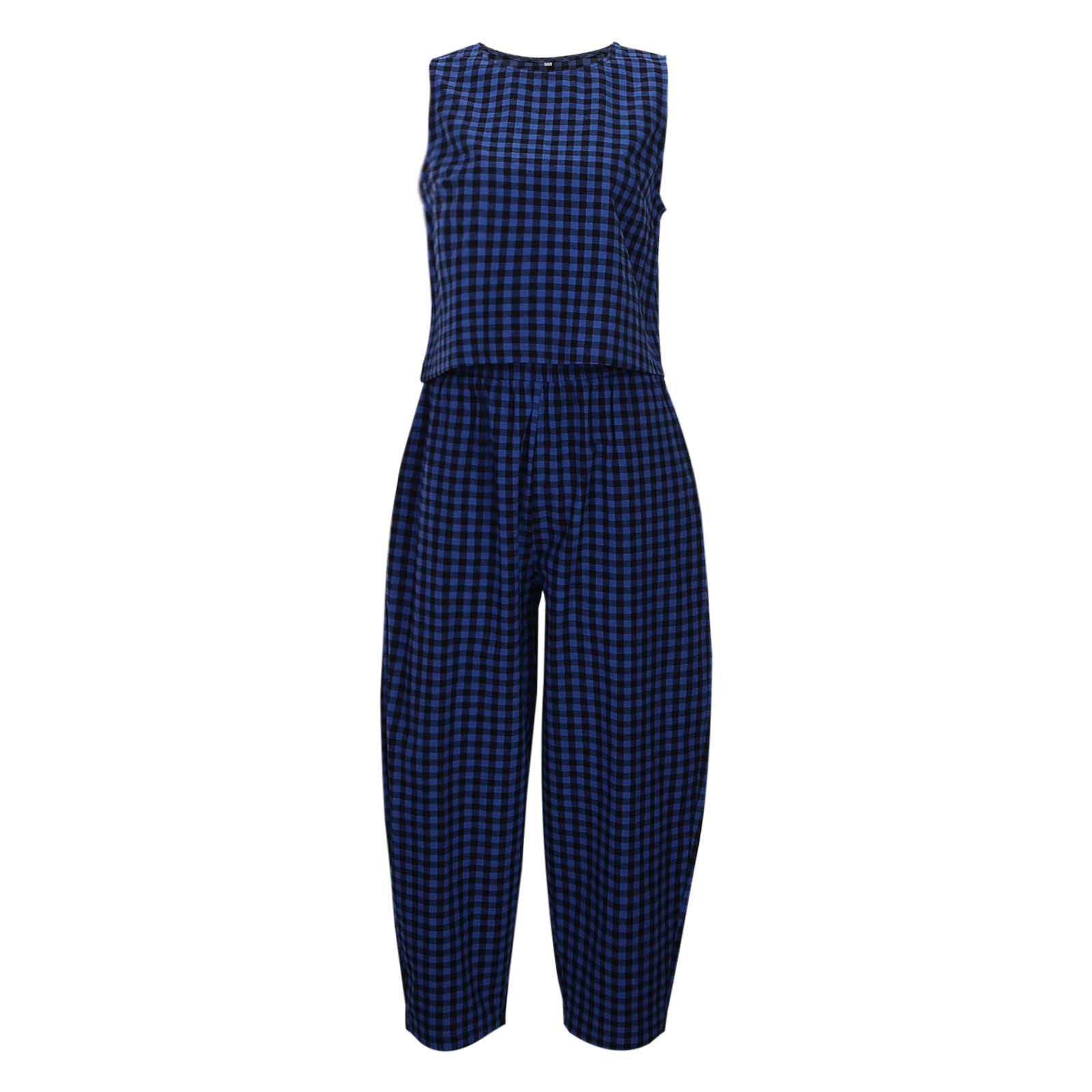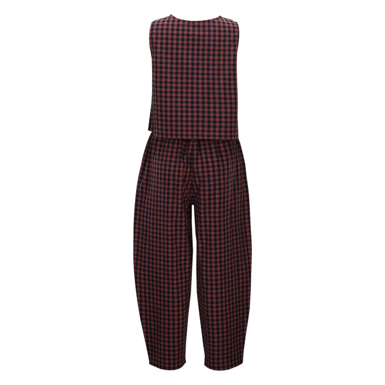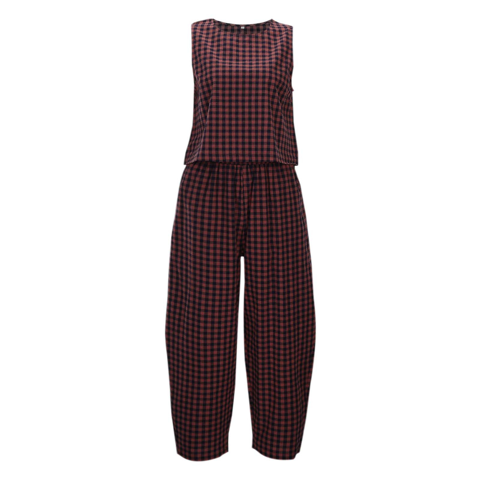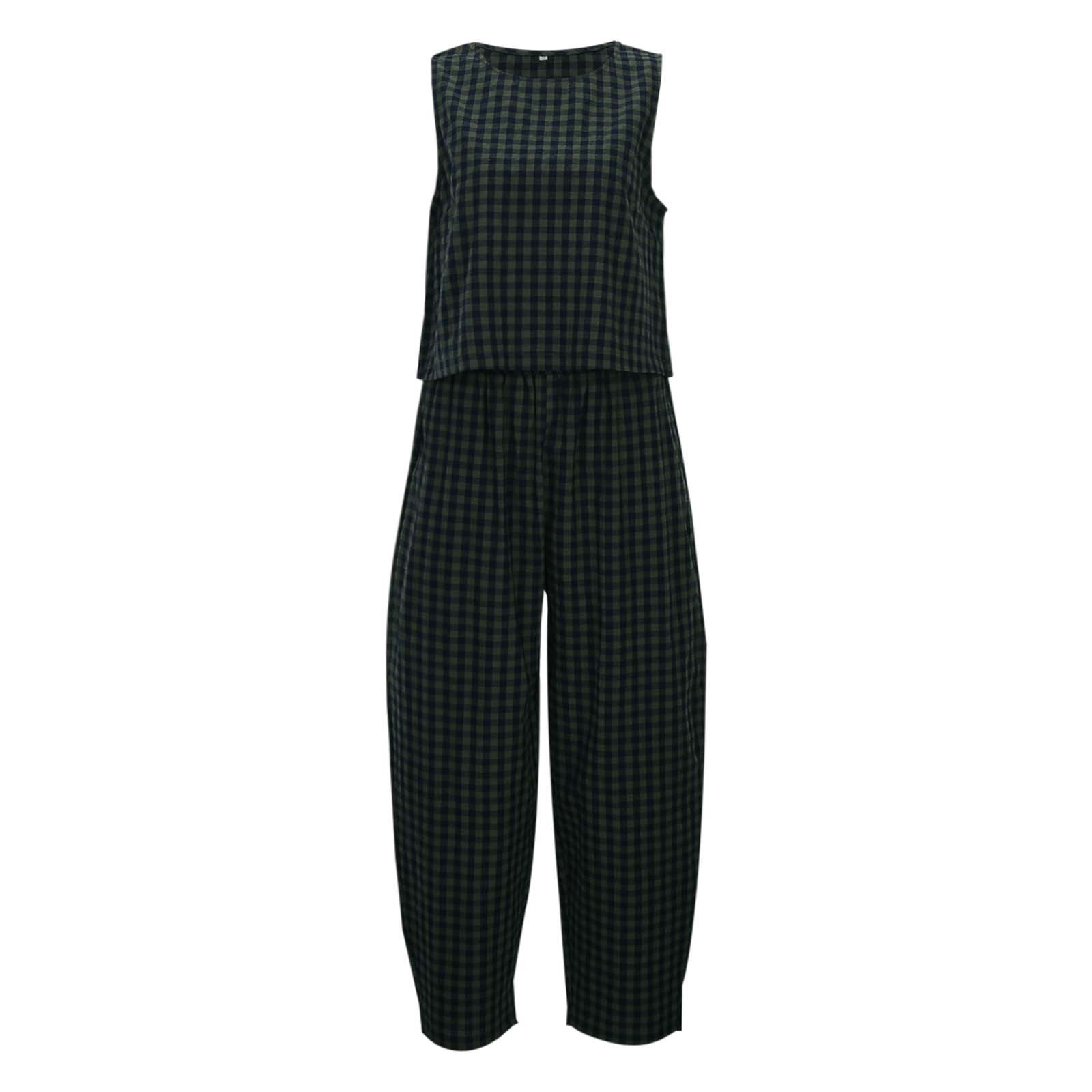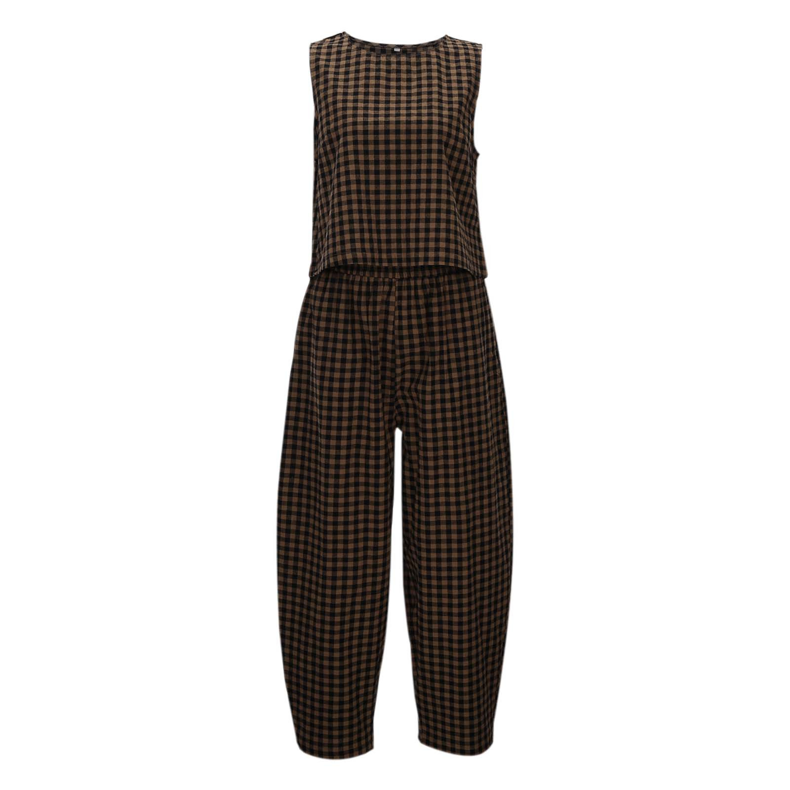 크로스보더 유럽 및 미국 여성 의류 2026 아마존 TK 신상 프린트 체크무늬 루즈핏 캐주얼 민소매 조끼와 롱 팬츠 세트스토어 가기