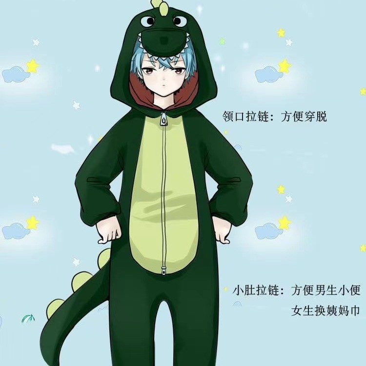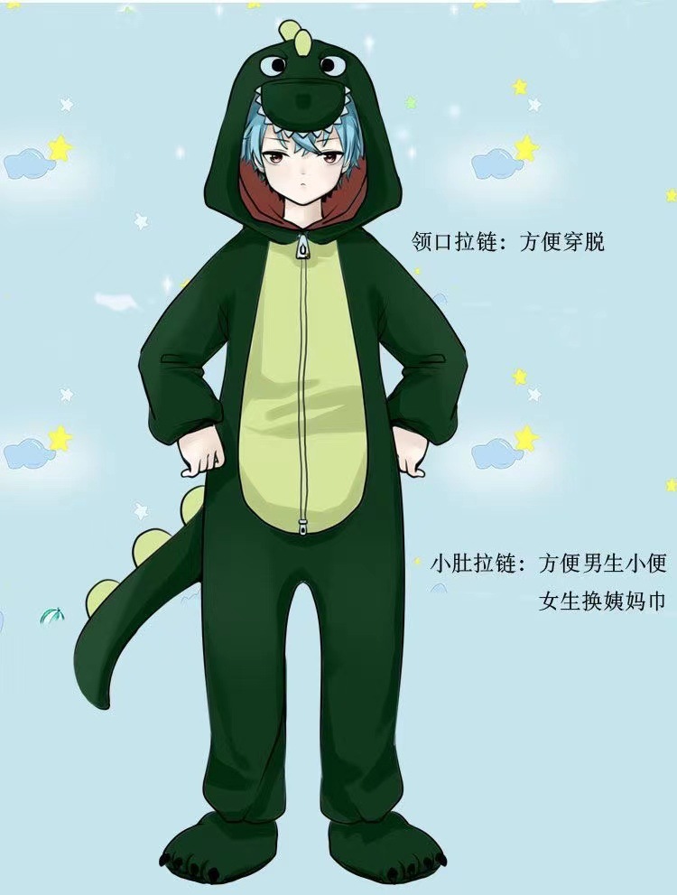 대외 무역 지퍼 스타일 공룡 블루 스티치 동물 홈 의류 플란넬 성인 홈 의류 공장 드롭 배송스토어 가기