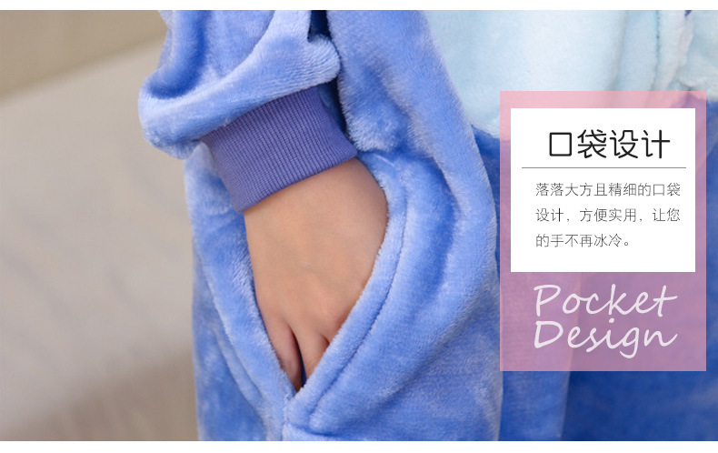 대외 무역 지퍼 스타일 공룡 블루 스티치 동물 홈 의류 플란넬 성인 홈 의류 공장 드롭 배송