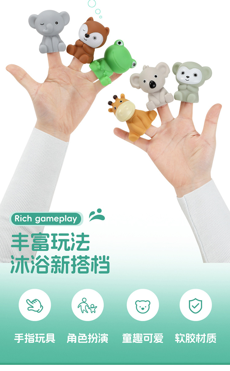 공장 직접 판매 어린이 조기 교육 계발 손가락 인형 아기 만화 작은 동물 아기 짜는 부드러운 플라스틱 장난감