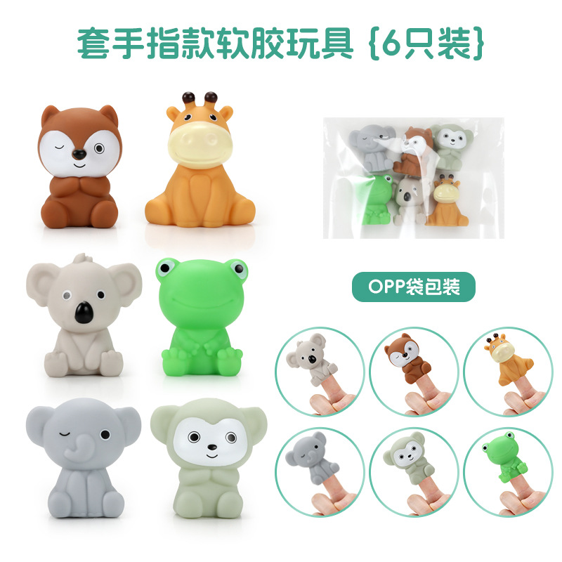 공장 직접 판매 어린이 조기 교육 계발 손가락 인형 아기 만화 작은 동물 아기 짜는 부드러운 플라스틱 장난감스토어 가기