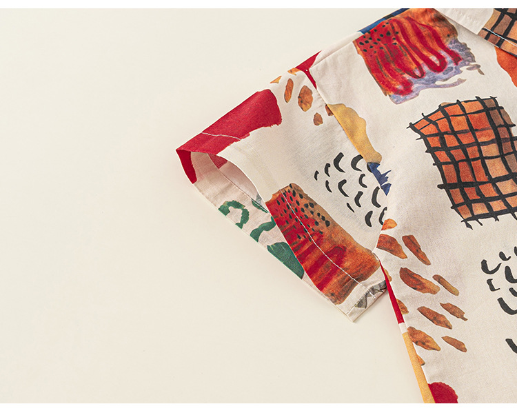 유바오 아동복 여름 새로운 도착 남성 어린이 대비 랩 탑 어린이 얇은 반소매 유행 인쇄 셔츠