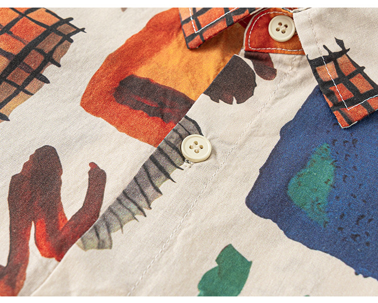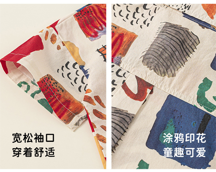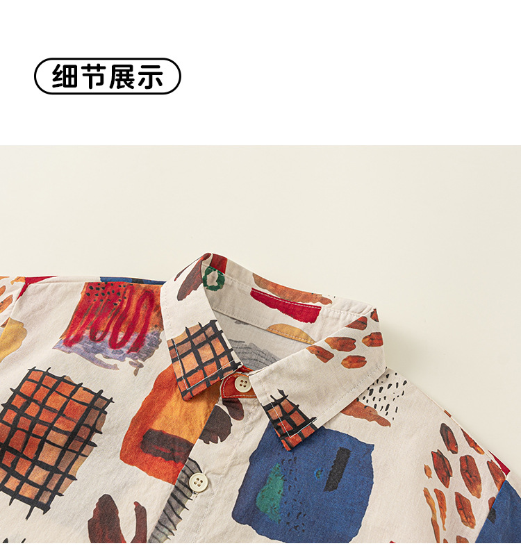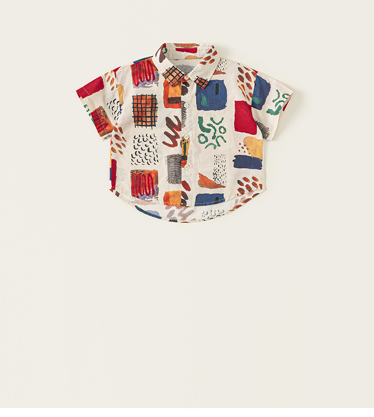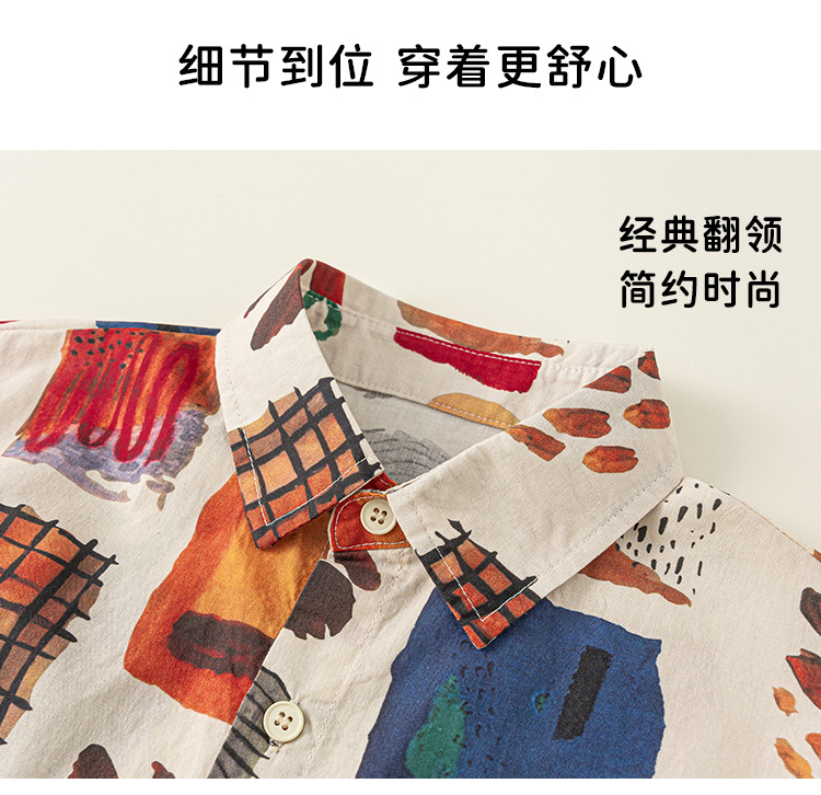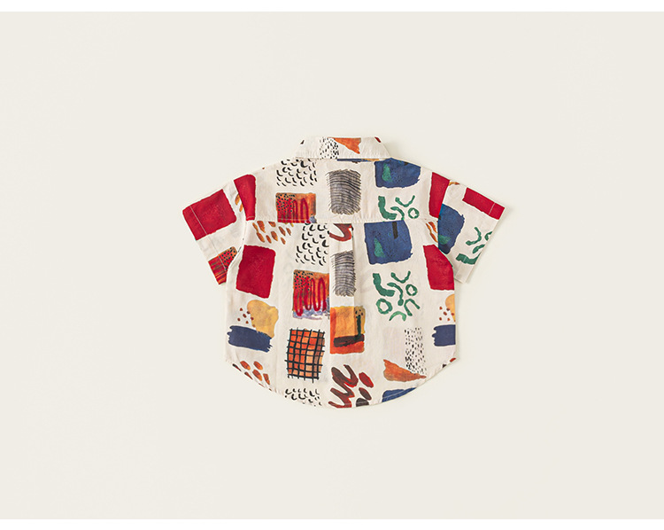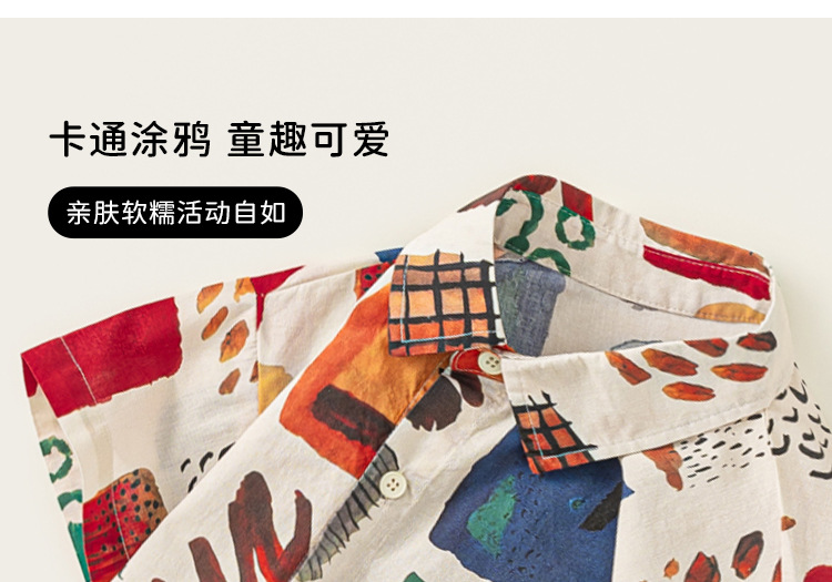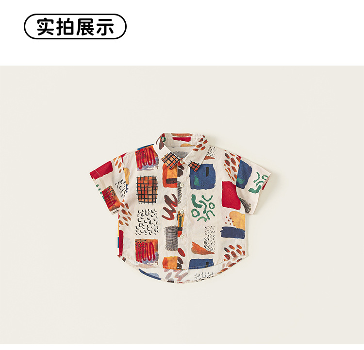 유바오 아동복 여름 새로운 도착 남성 어린이 대비 랩 탑 어린이 얇은 반소매 유행 인쇄 셔츠스토어 가기