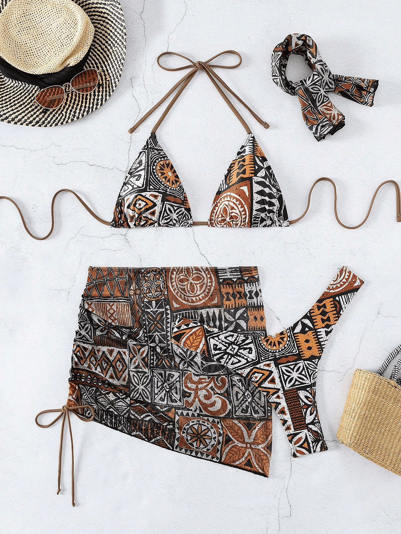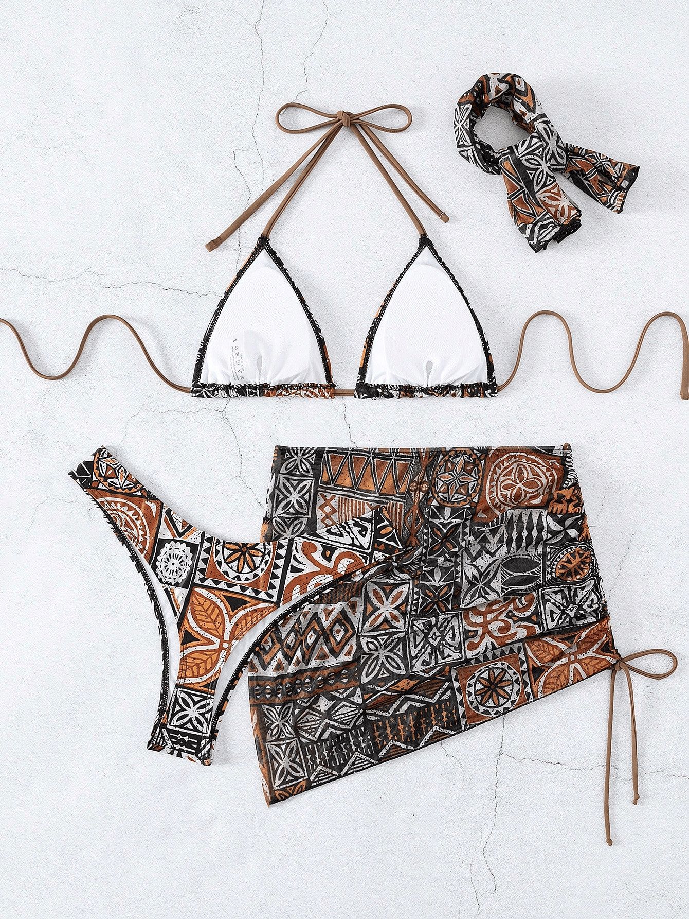 2025 새로운 수영복 여성 섹시한 4 피스 비키니 터번 비키니 여성 비치 스플릿 수영복