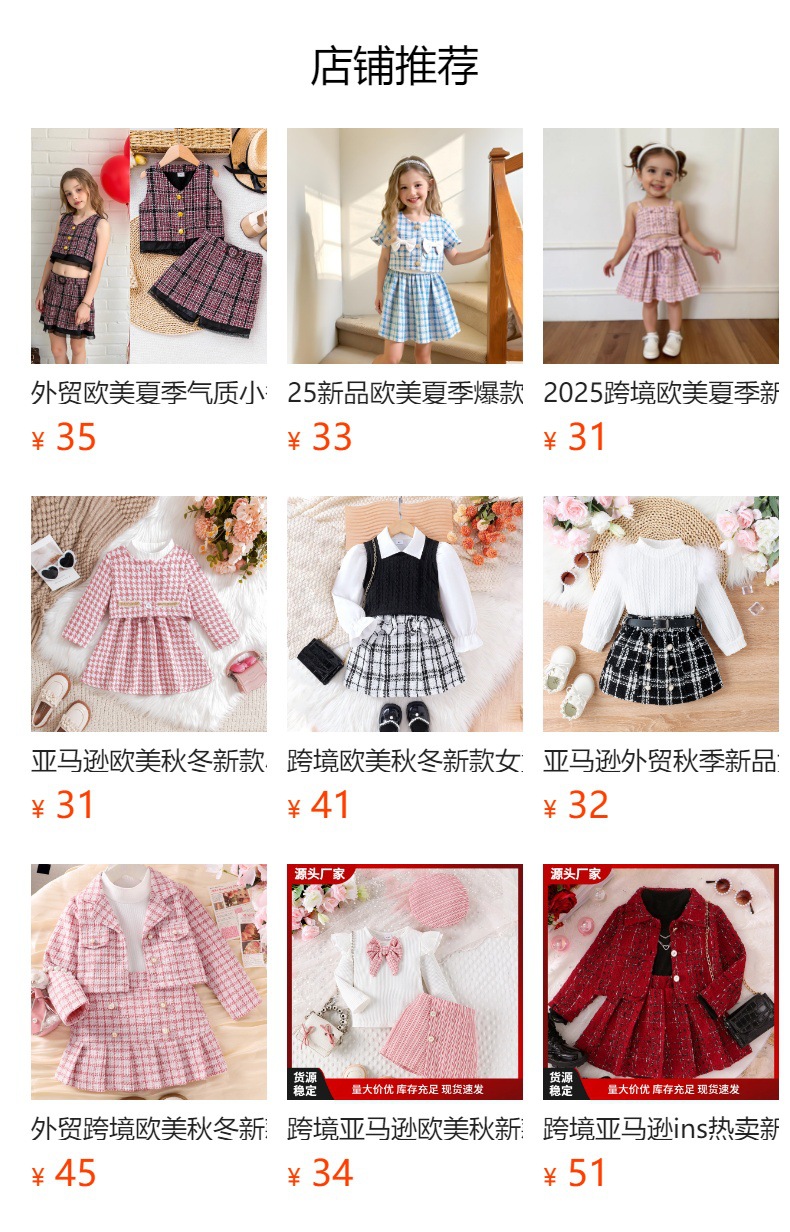 AliExpress 유럽과 미국 여름 기질 소녀 정장 중소형 어린이 작은 향기로운 나비 넥타이 재킷 + 주름 치마 정장스토어 가기