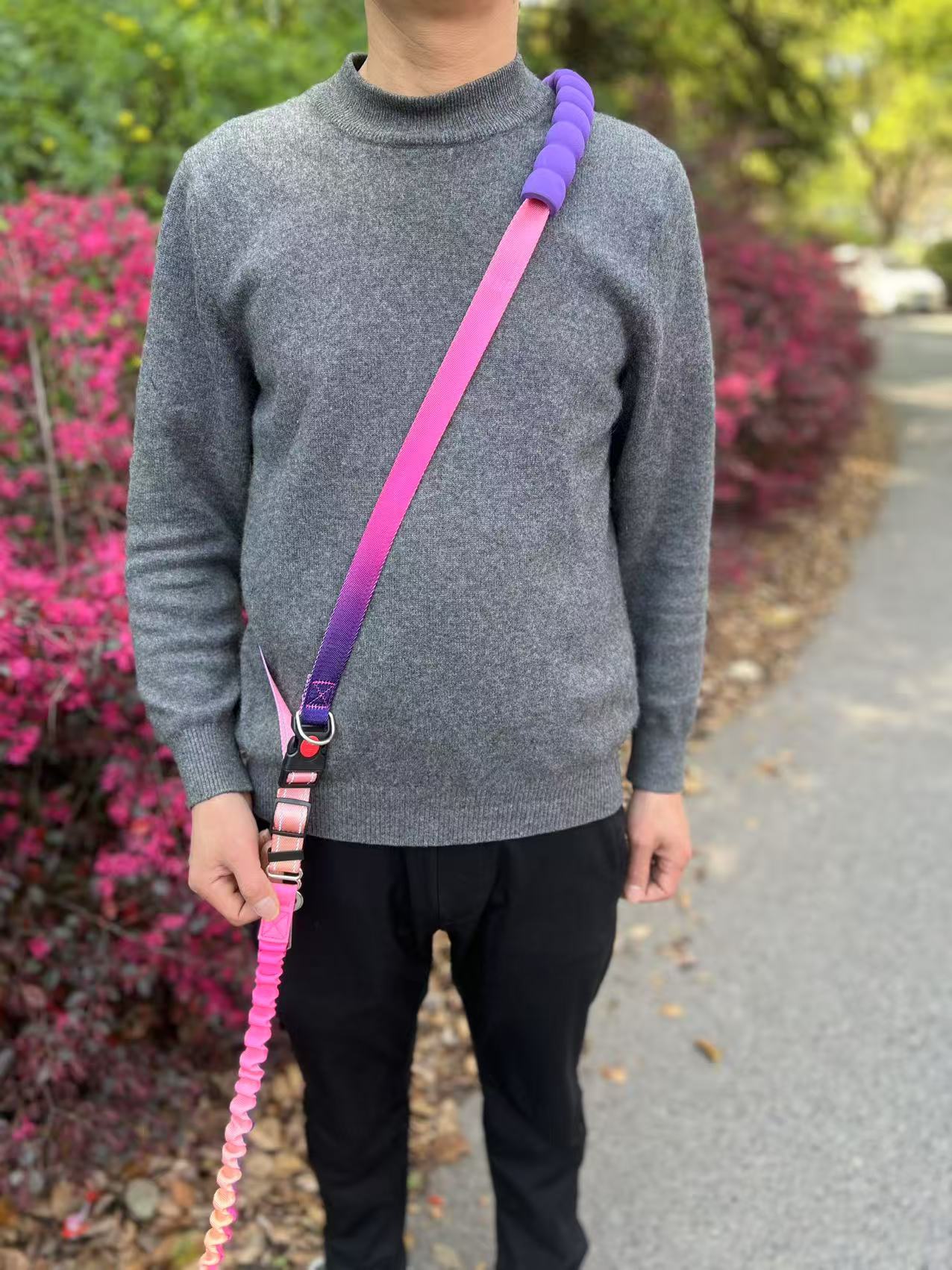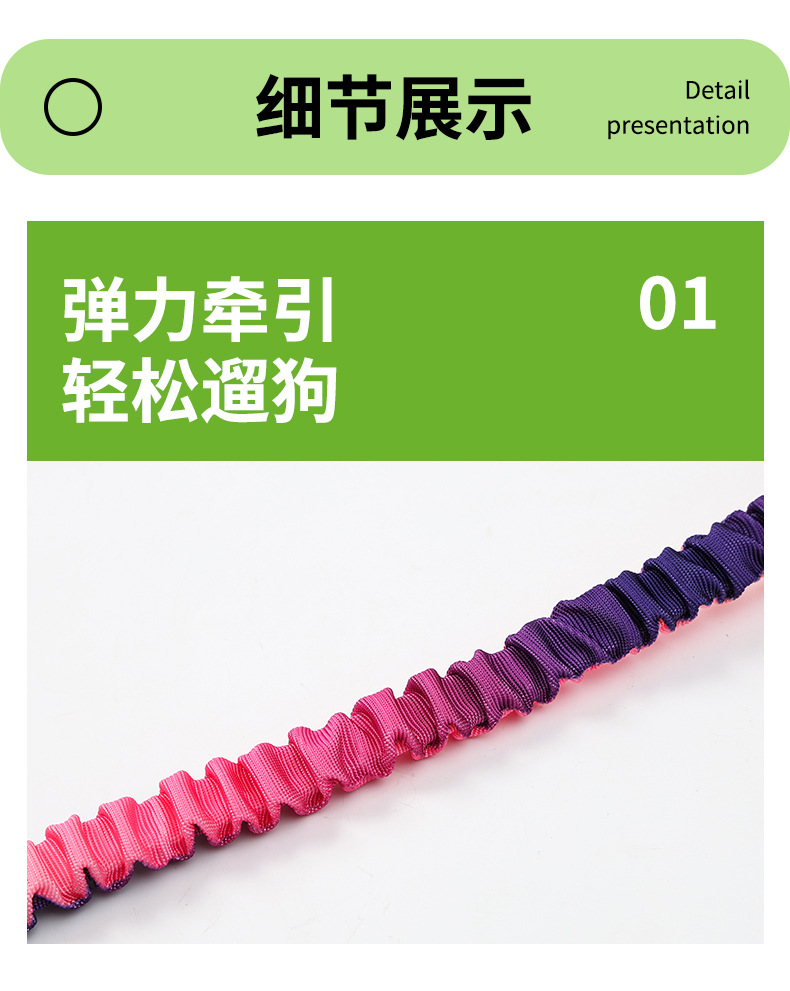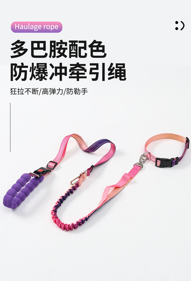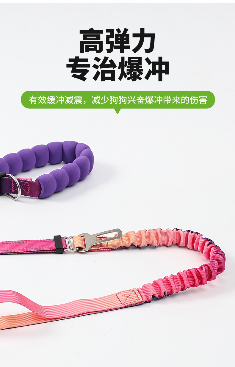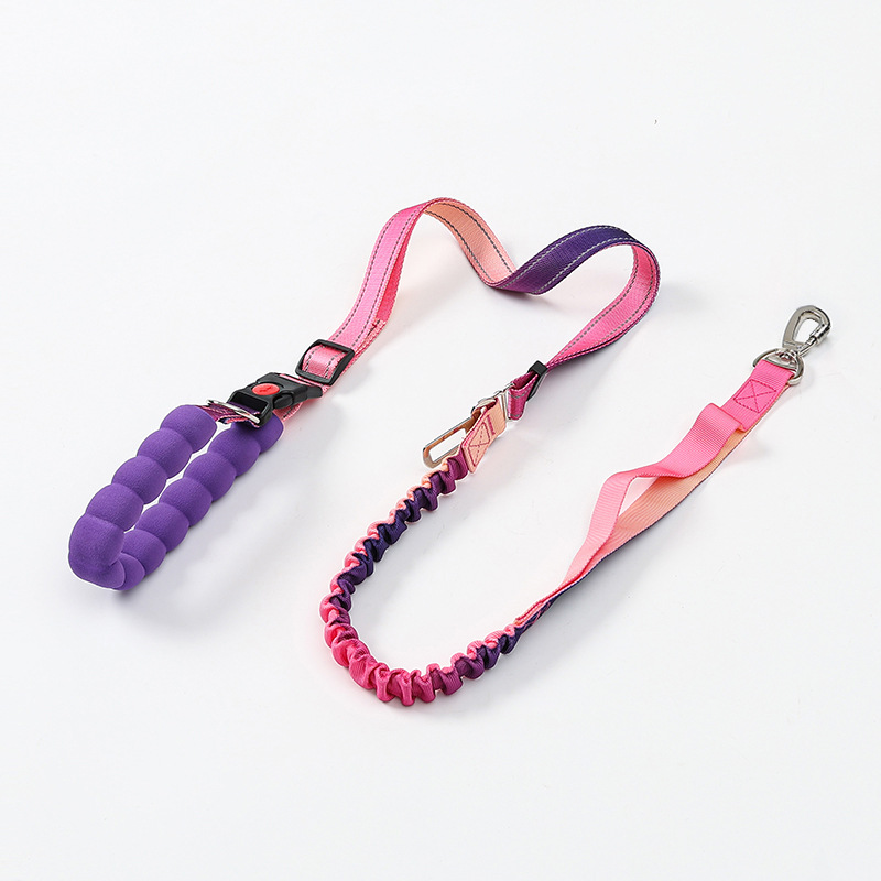 국경을 넘는 새로운 다기능 허리끈 반사 탄성 로프 그라데이션 컬러 차량용 안전 로프 겸용 크로스바디 강아지 목줄