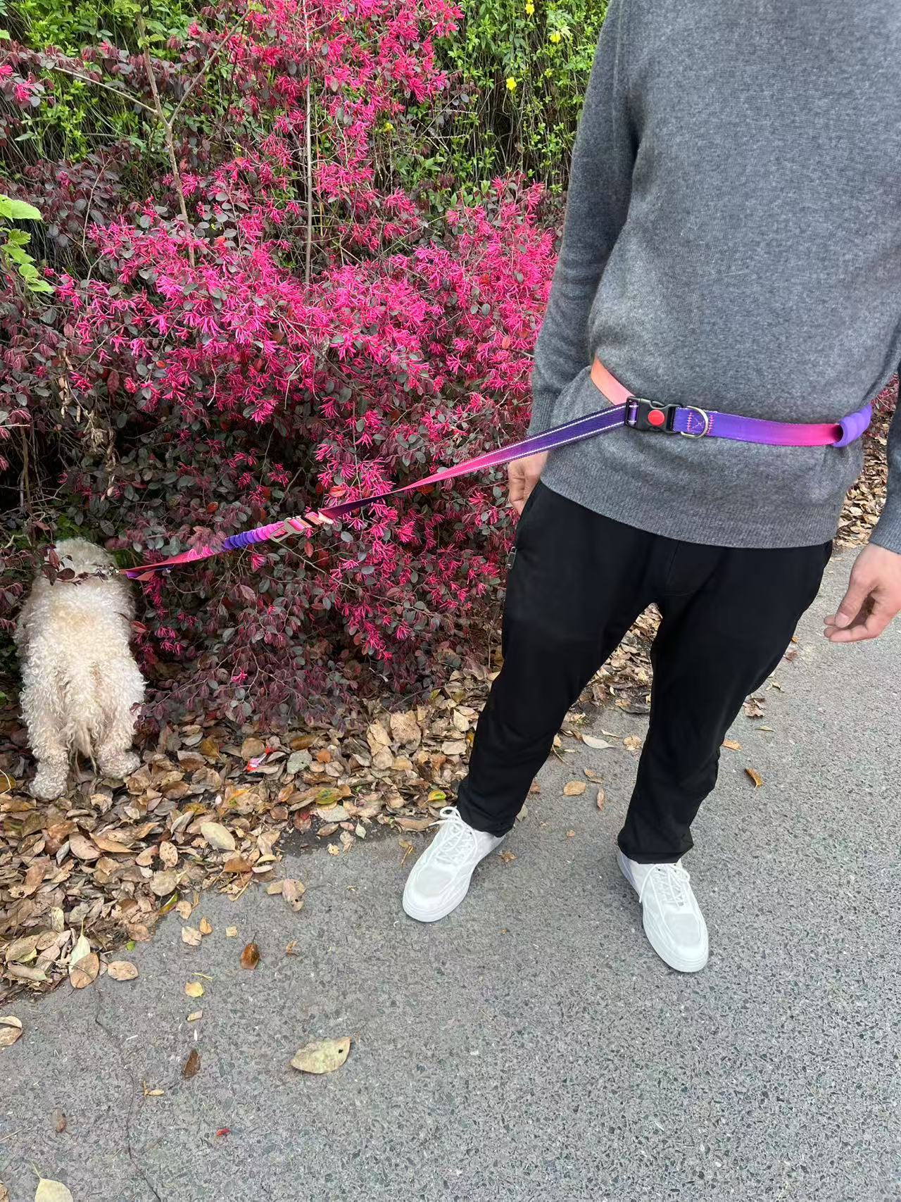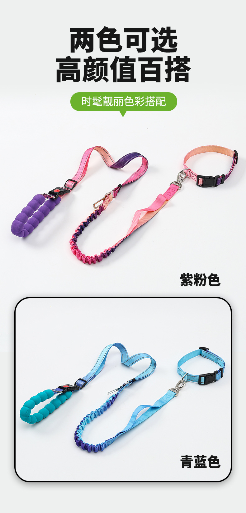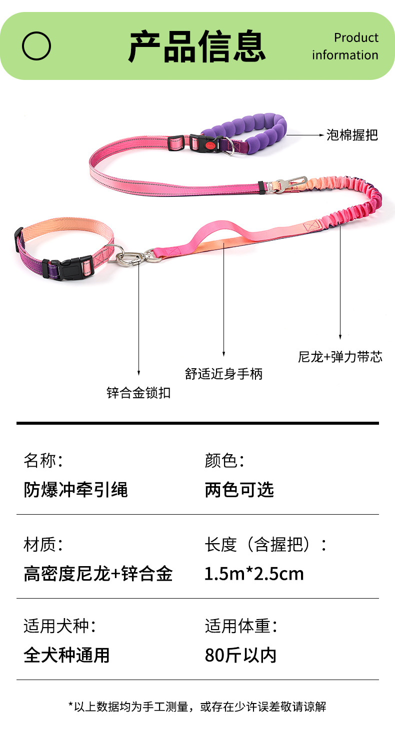 국경을 넘는 새로운 다기능 허리끈 반사 탄성 로프 그라데이션 컬러 차량용 안전 로프 겸용 크로스바디 강아지 목줄
