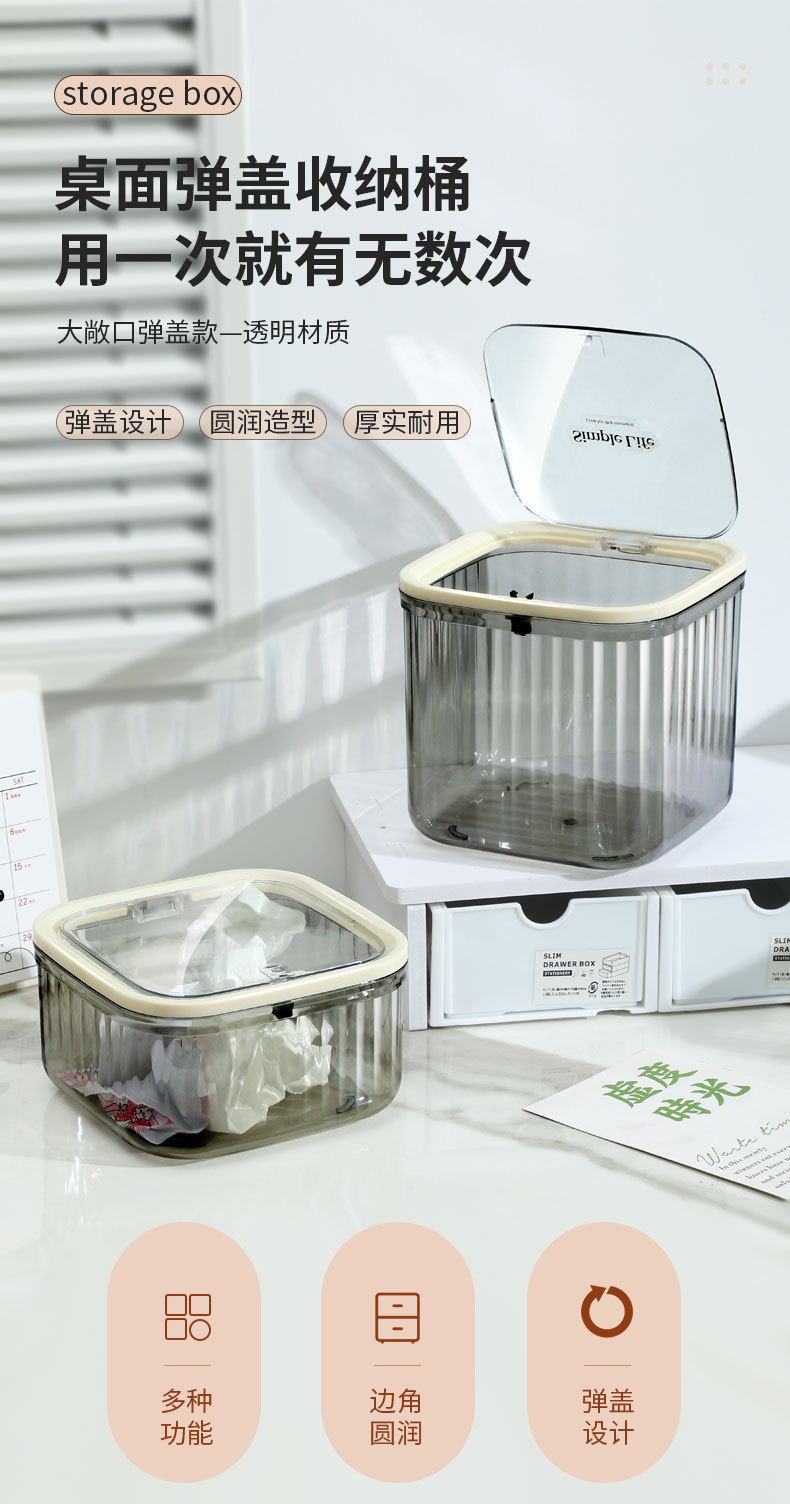 다기능 팝업 데스크탑 쓰레기통, 고급스럽고 대용량의 소녀용 가죽 로프 헤어 액세서리 보관함