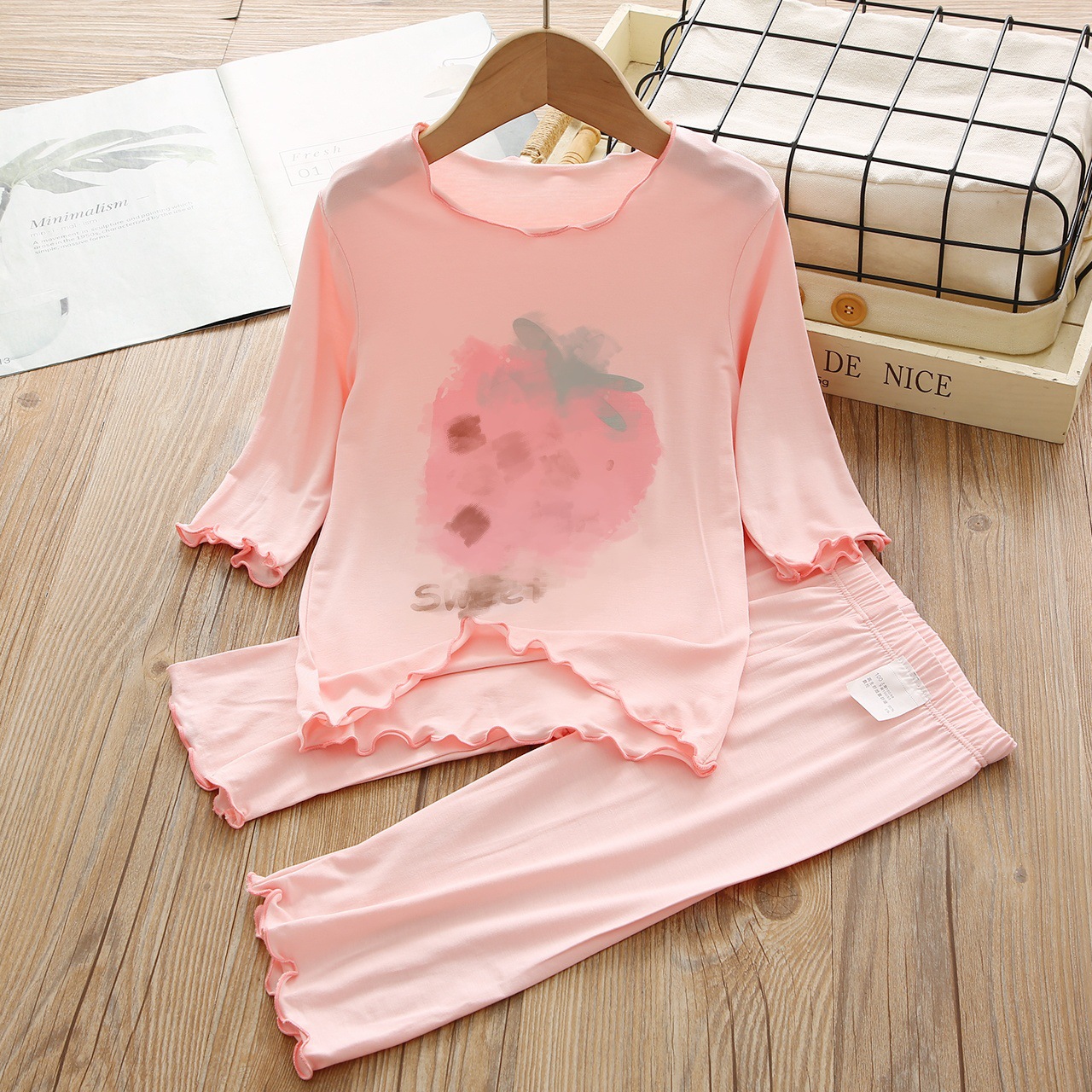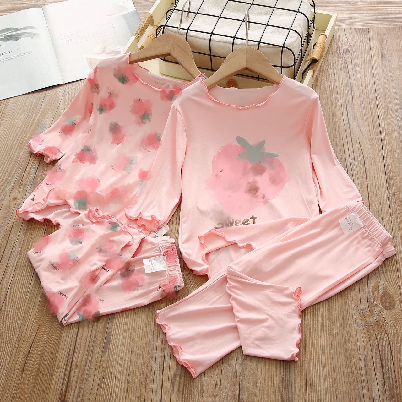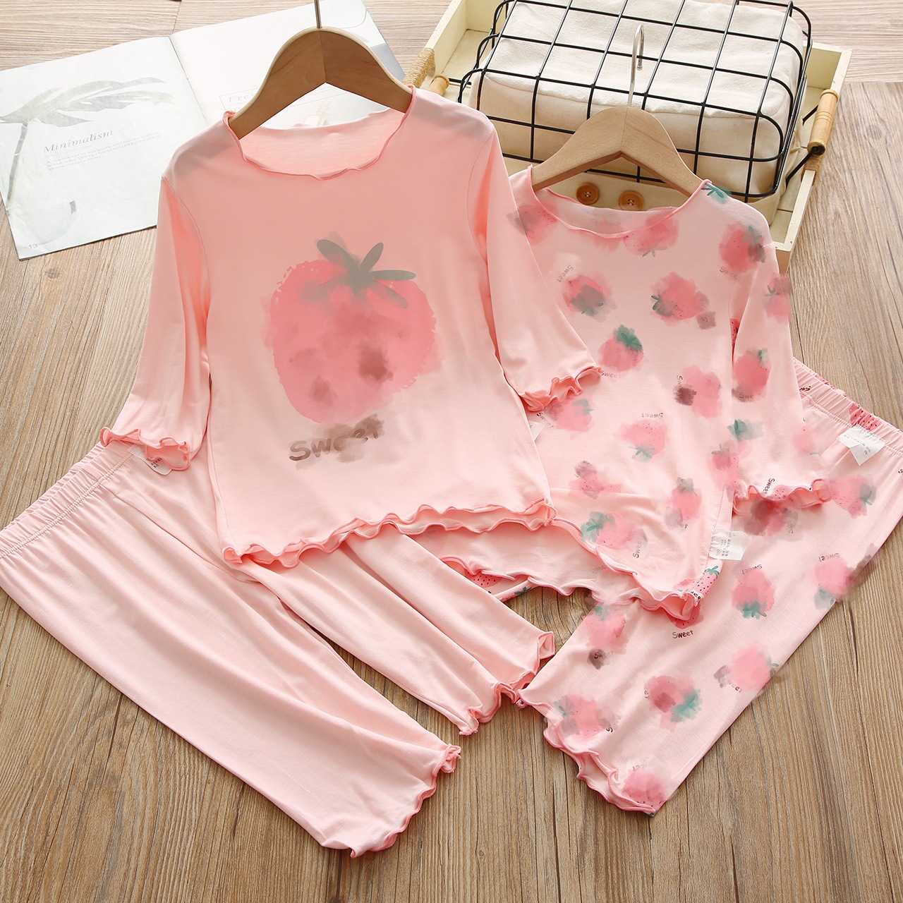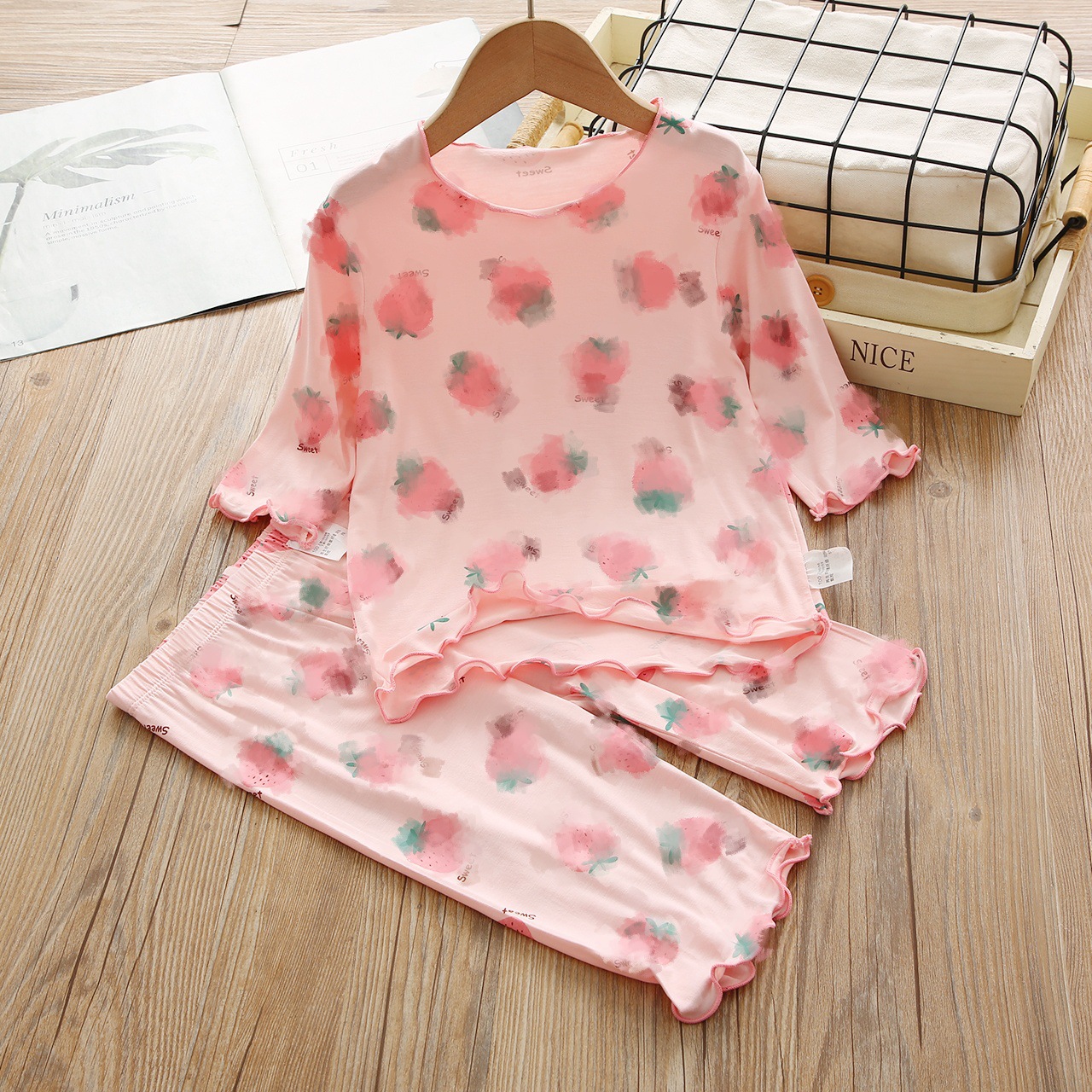 여아 반팔 양복, 얼음 실크 편안한 에어컨 양복, 여름 신작, 중대형 아동용 투피스 세트, 패셔너블한 잠옷 세트, 트렌디스토어 가기