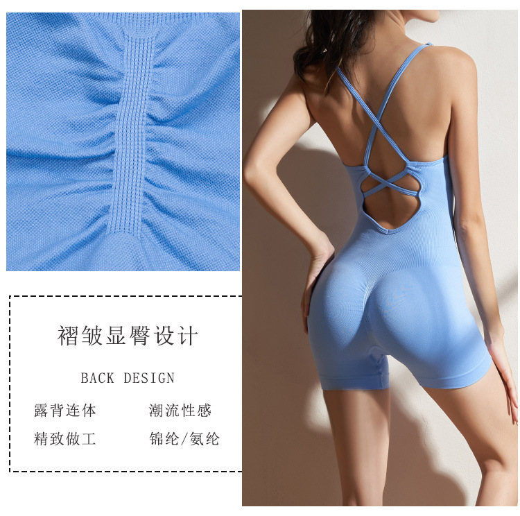 고급 스트랩 백 요가 점프 수트 원활한 복숭아 엉덩이 피트니스 반바지 빠른 건조 스포츠 세트 점프 수트스토어 가기