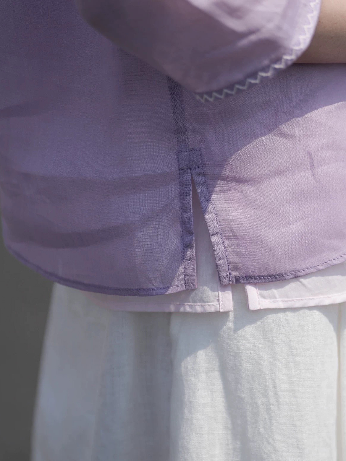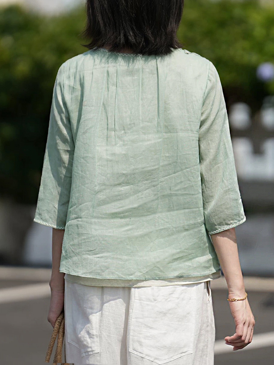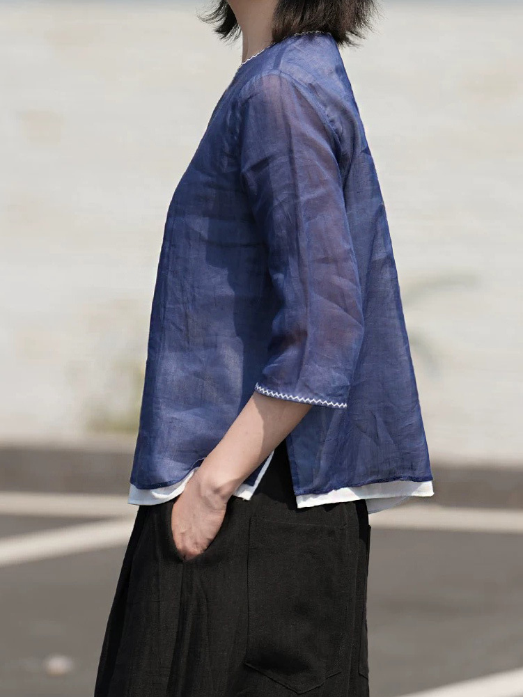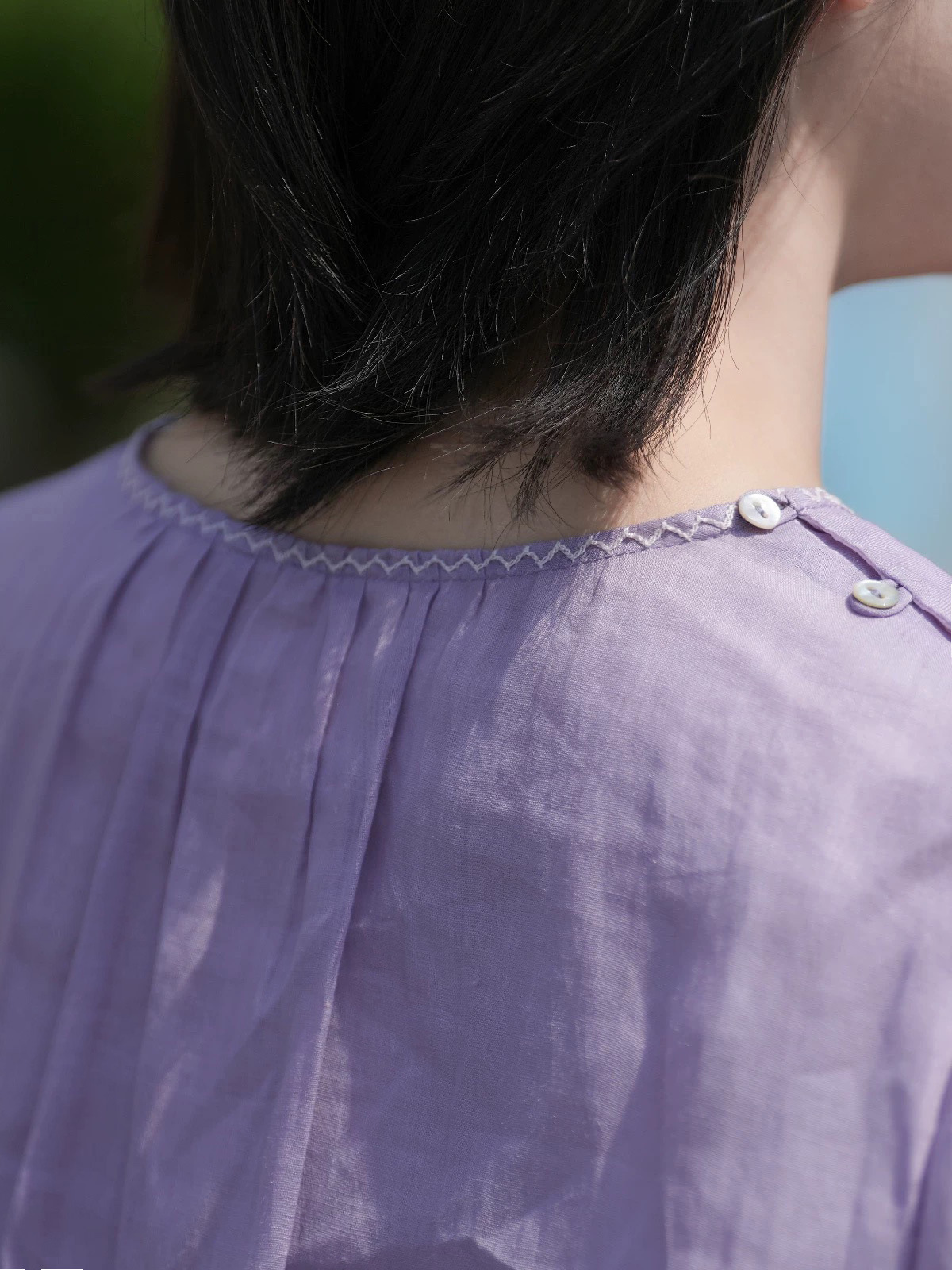 오리지널 하이 엔드 여성 신작 100 카운트 순수 모시 셔츠 가볍고 얇은 선명한 복고풍 루즈 라운드 넥 탑