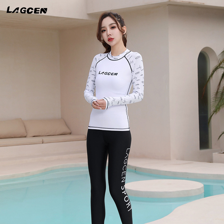 LAGCEN/신상 여성 스플릿 프리 다이빙 및 스노클링 수영복 긴팔 다이빙 슈트 속건성 서핑 슈트 스노클링 슈트