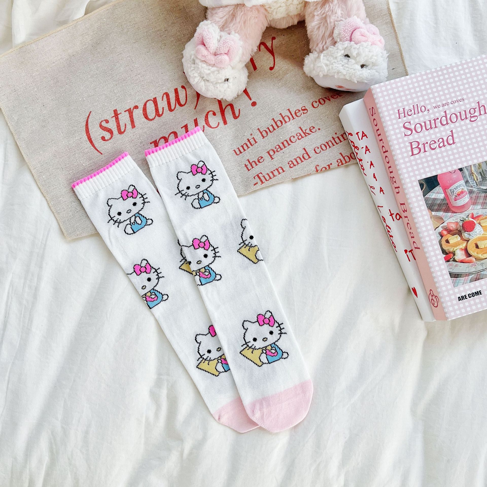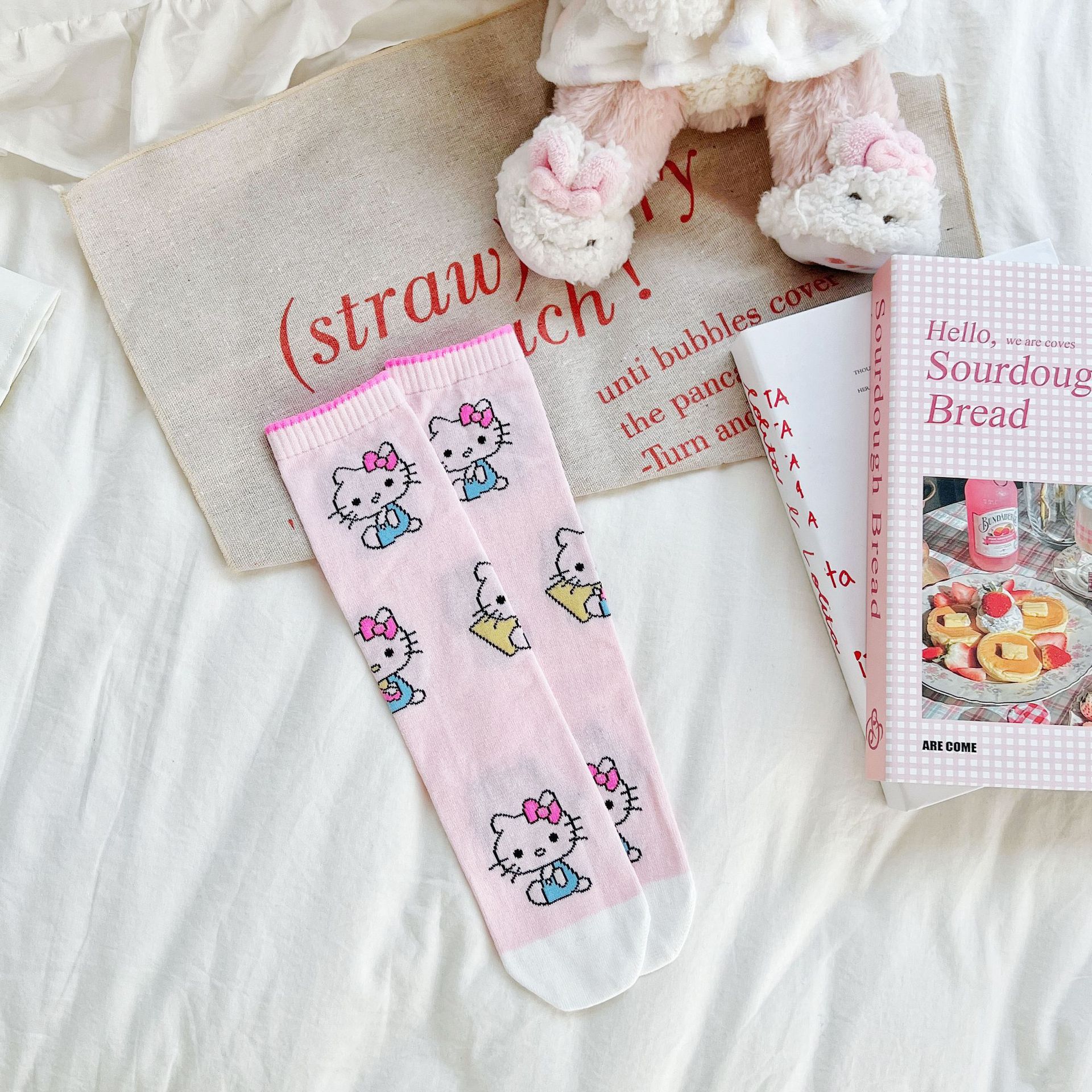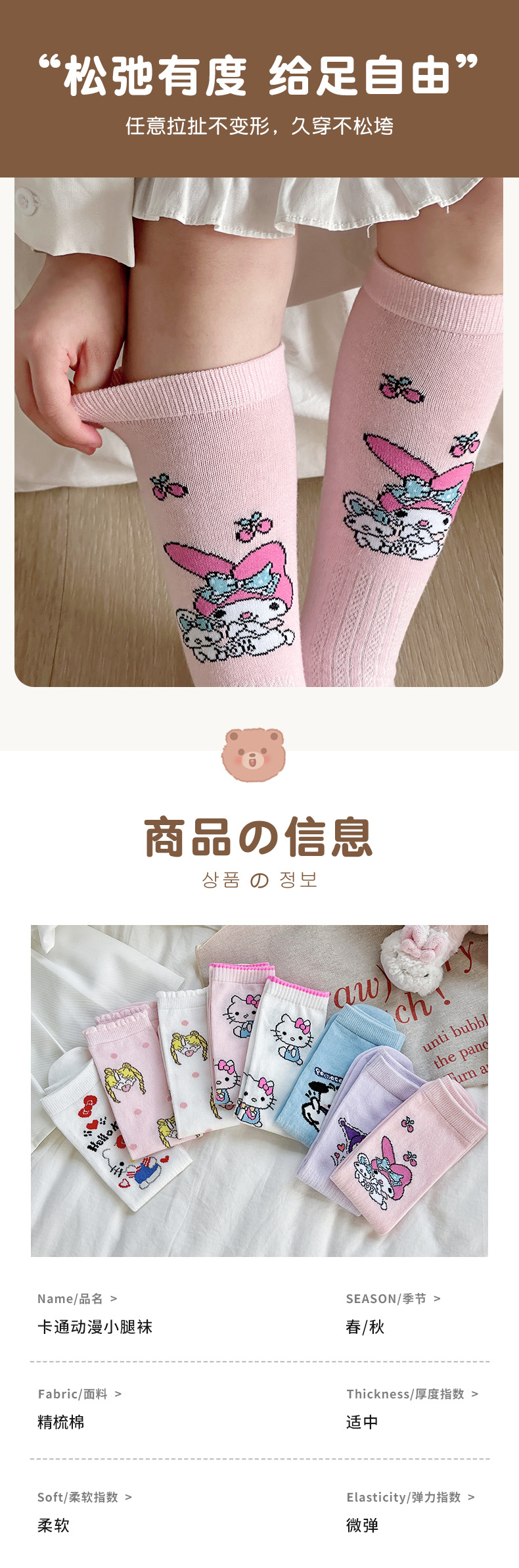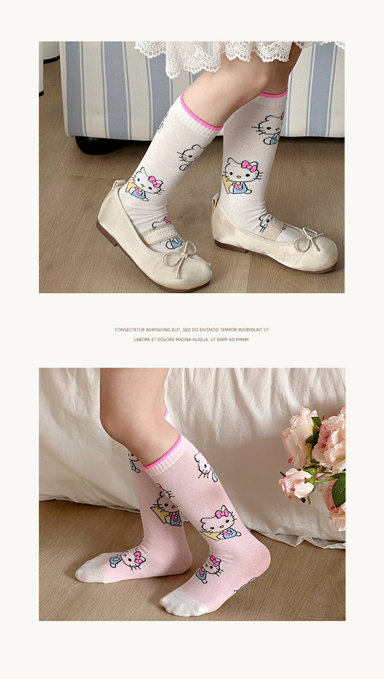 봄과 가을 얇은 귀여운 한국 스타일 어린이 양말 소녀 커프 양말 만화 헬로 키티 땀 통기성 미드 양말 흡수