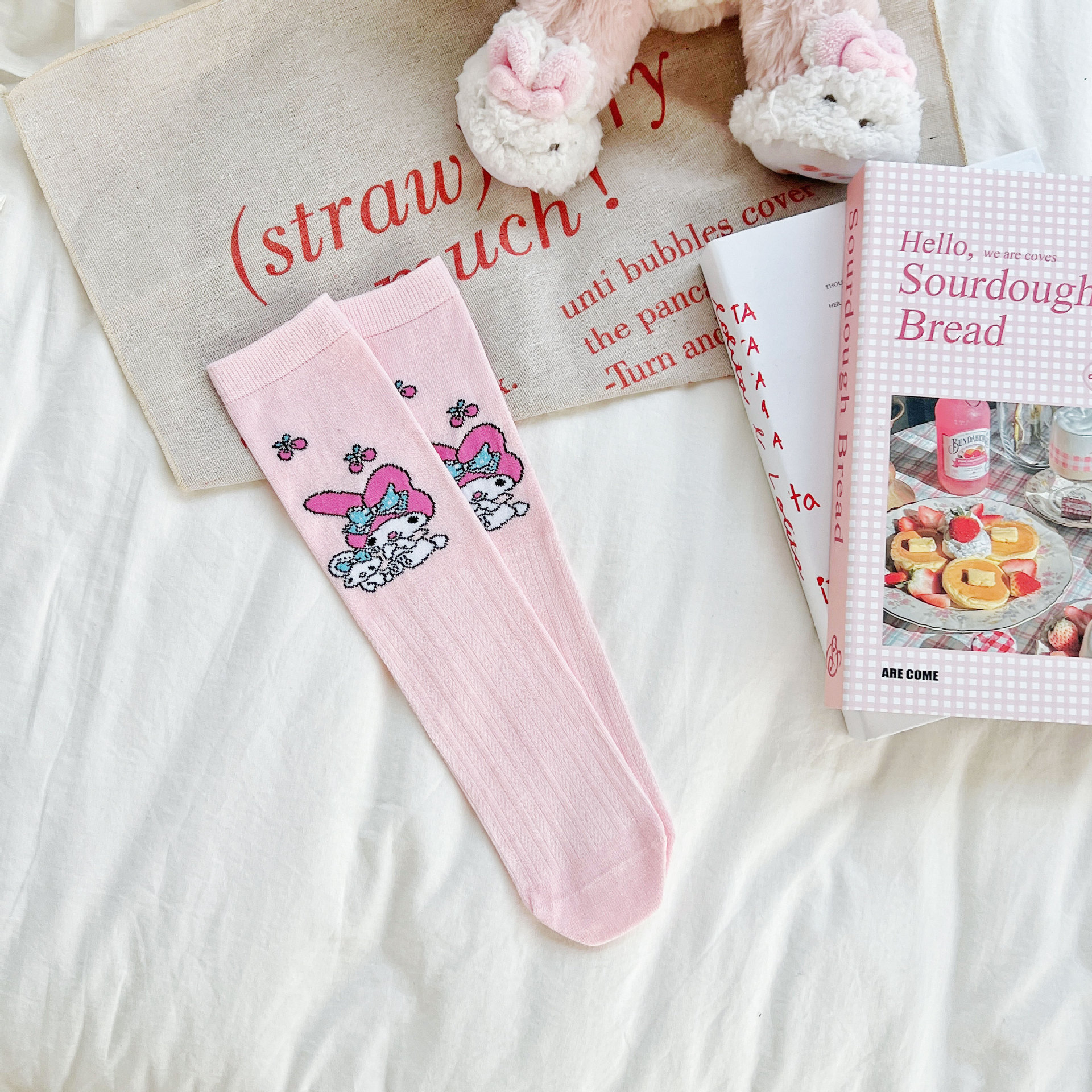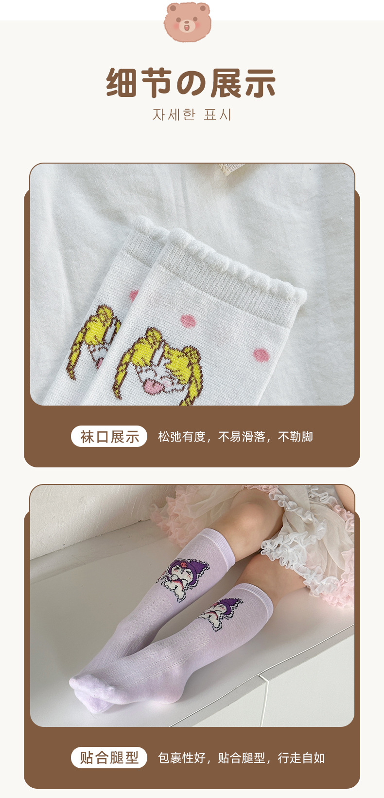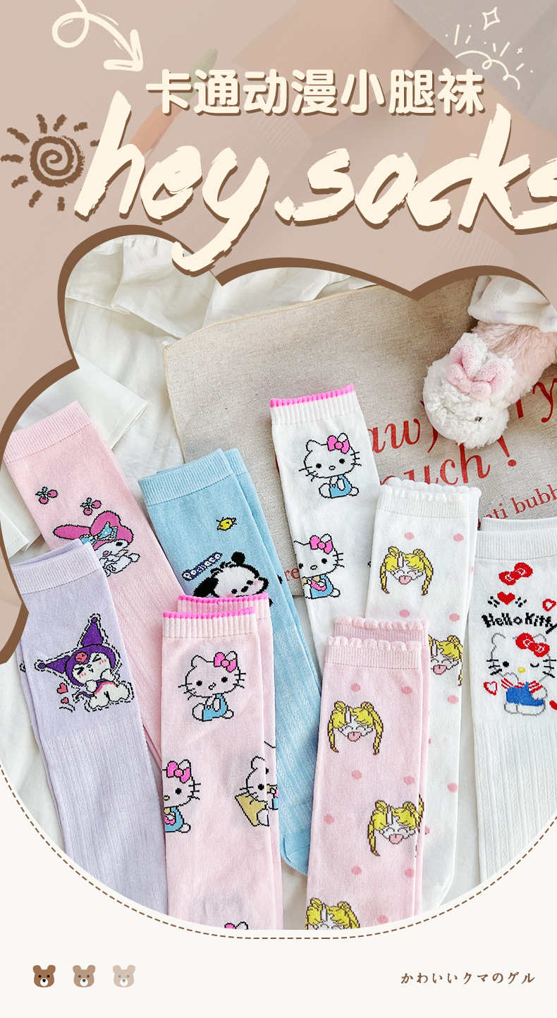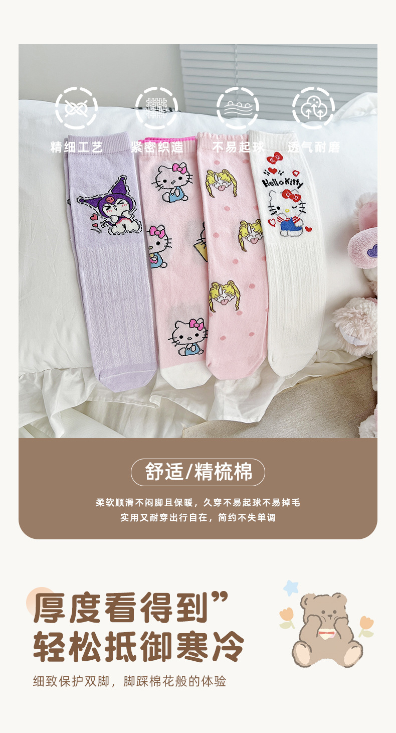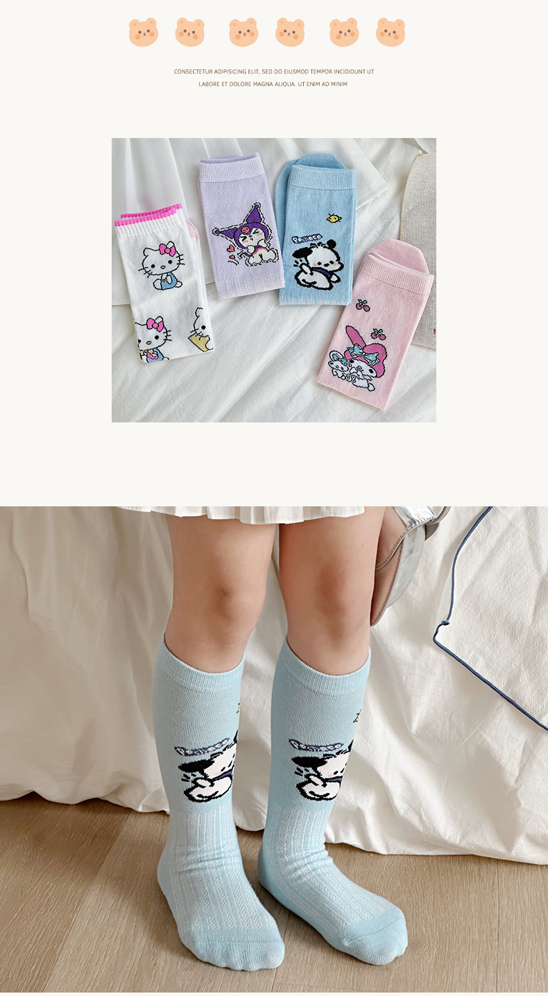 봄과 가을 얇은 귀여운 한국 스타일 어린이 양말 소녀 커프 양말 만화 헬로 키티 땀 통기성 미드 양말 흡수