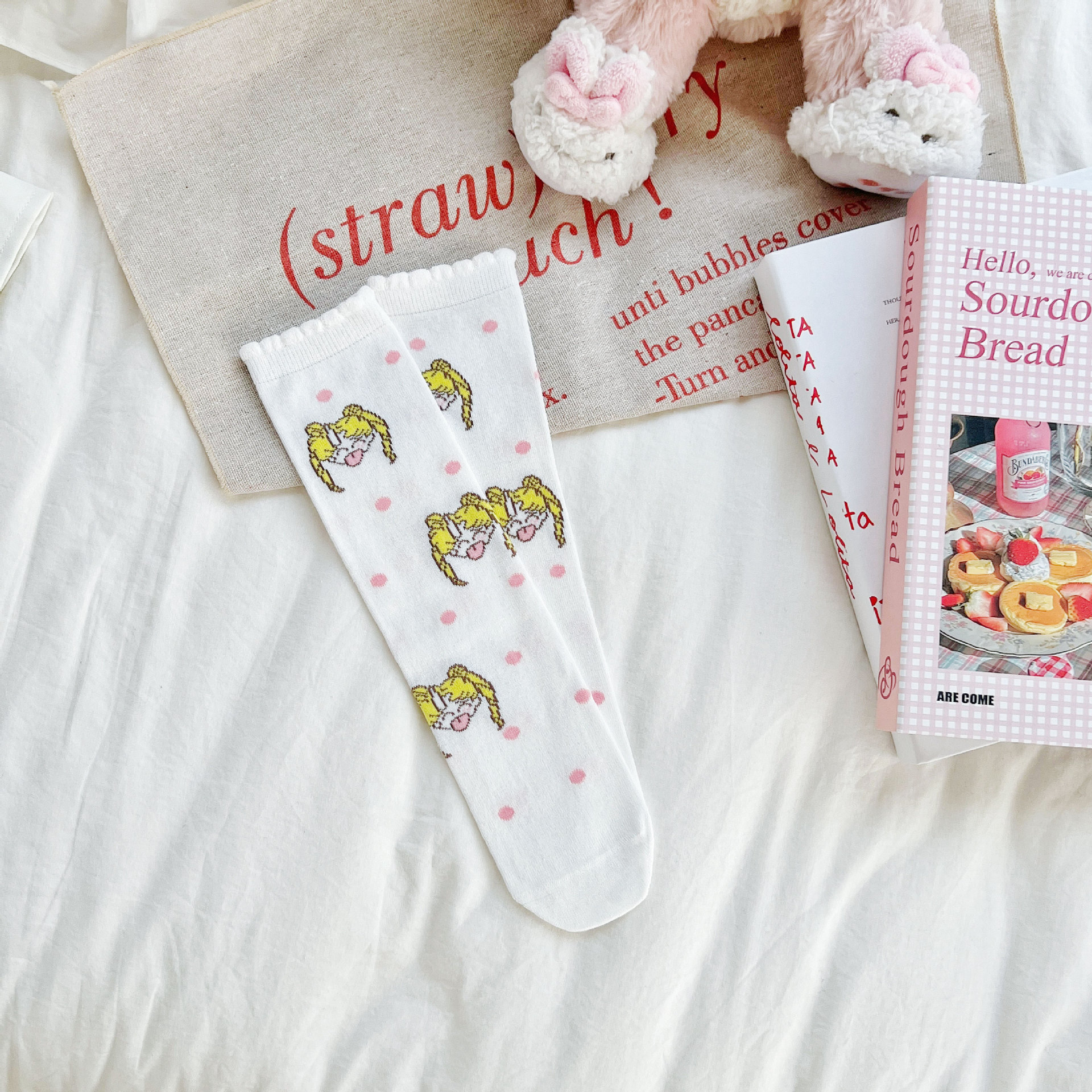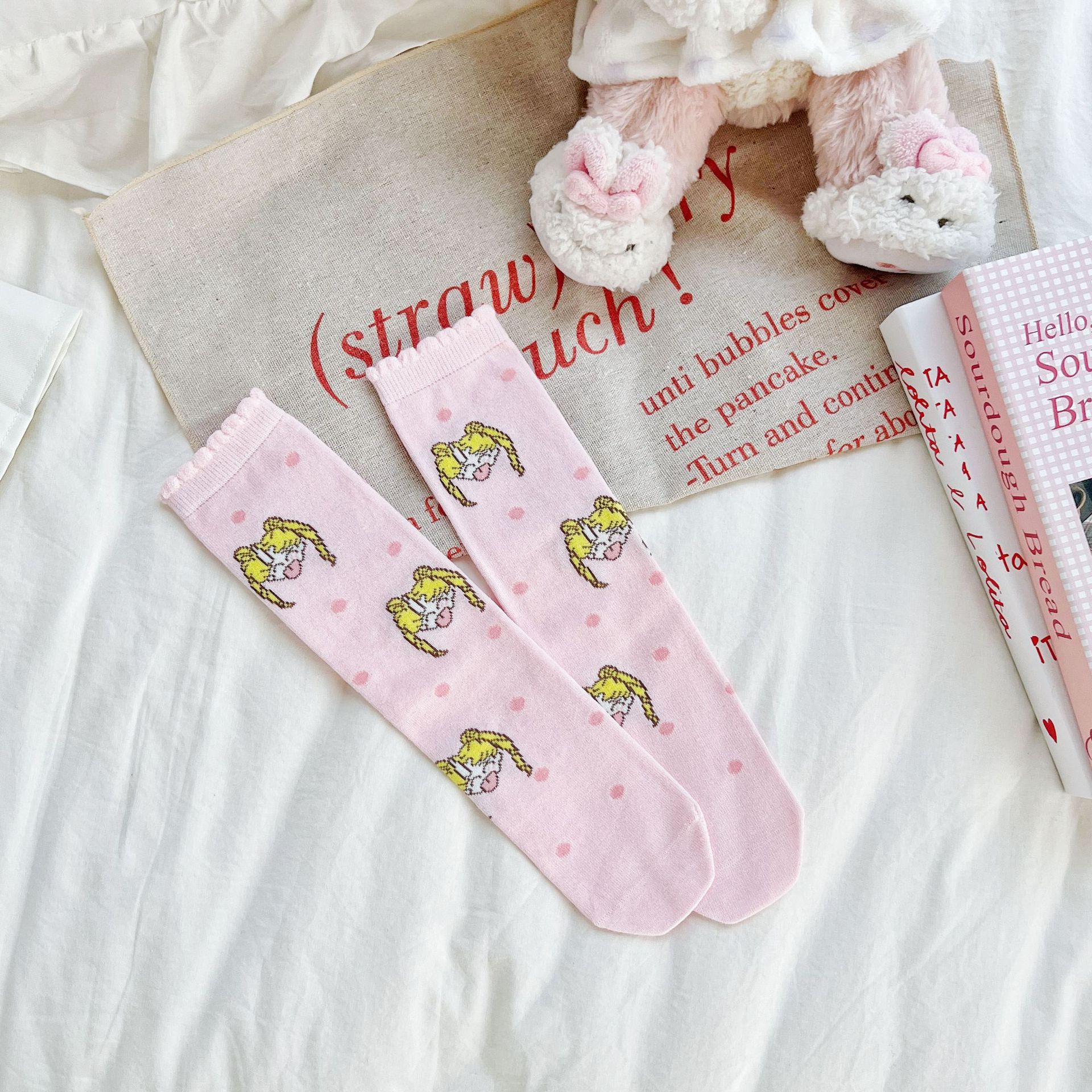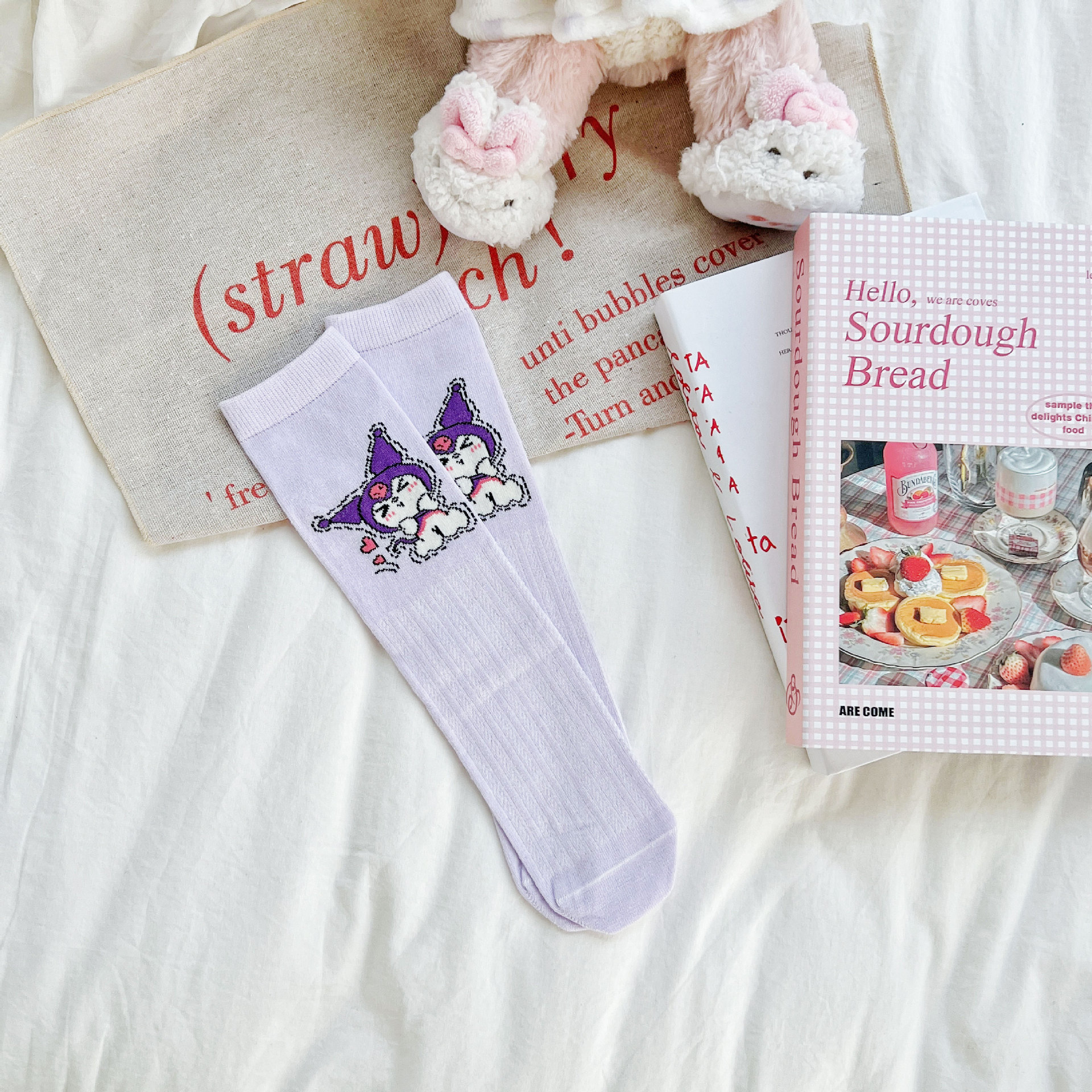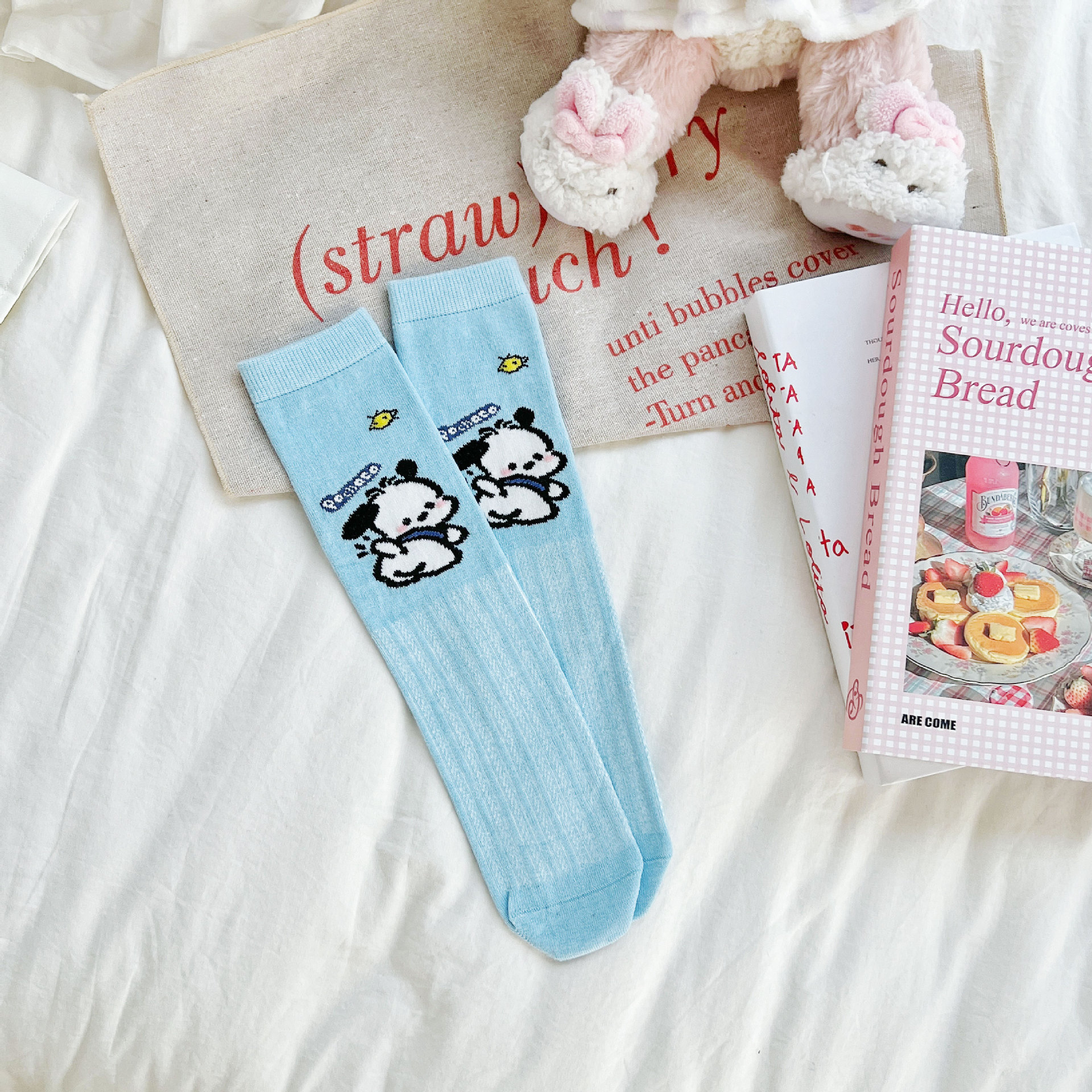 봄과 가을 얇은 귀여운 한국 스타일 어린이 양말 소녀 커프 양말 만화 헬로 키티 땀 통기성 미드 양말 흡수