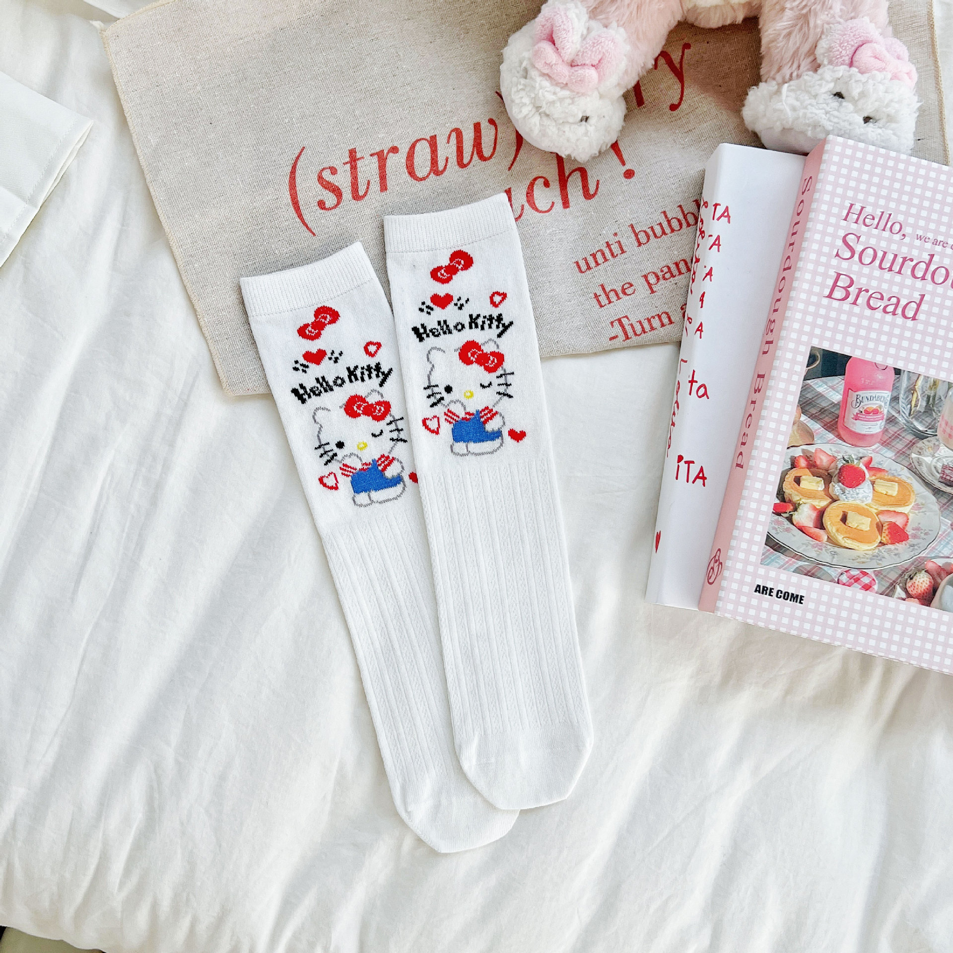 봄과 가을 얇은 귀여운 한국 스타일 어린이 양말 소녀 커프 양말 만화 헬로 키티 땀 통기성 미드 양말 흡수스토어 가기