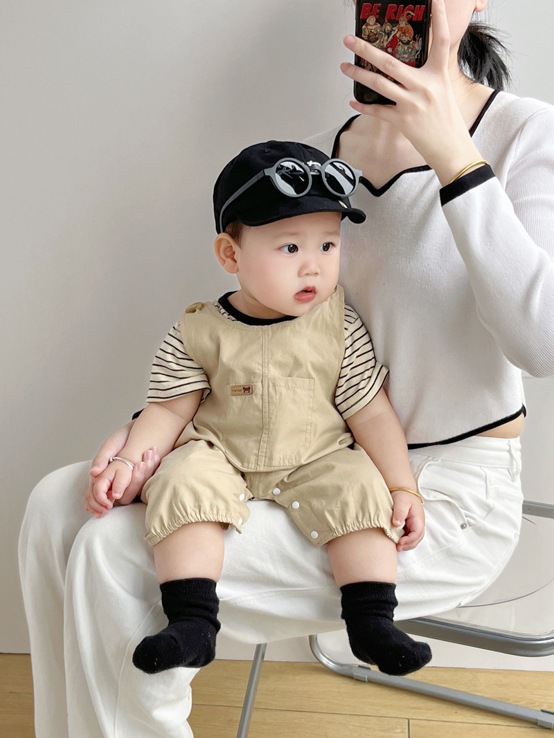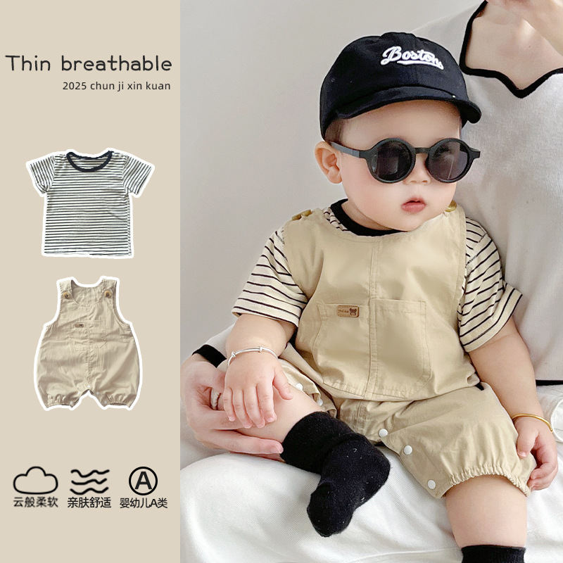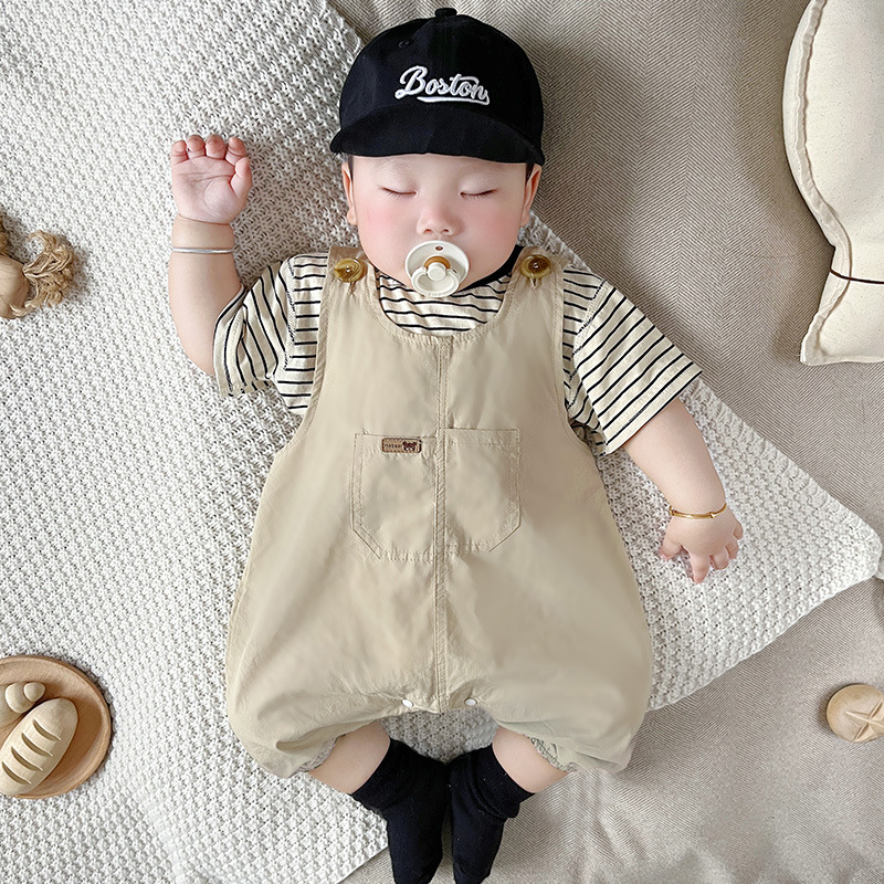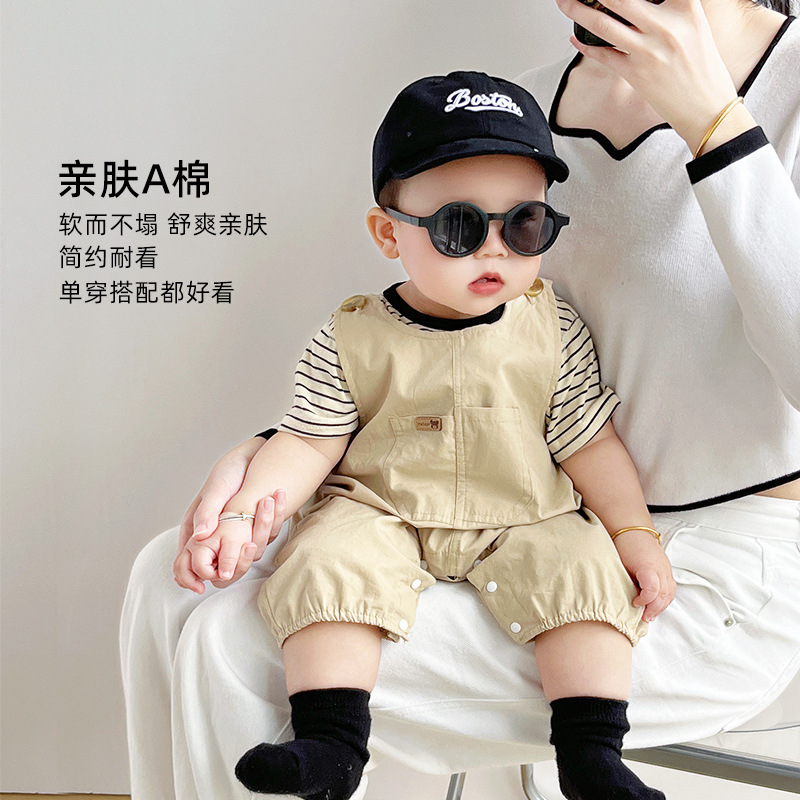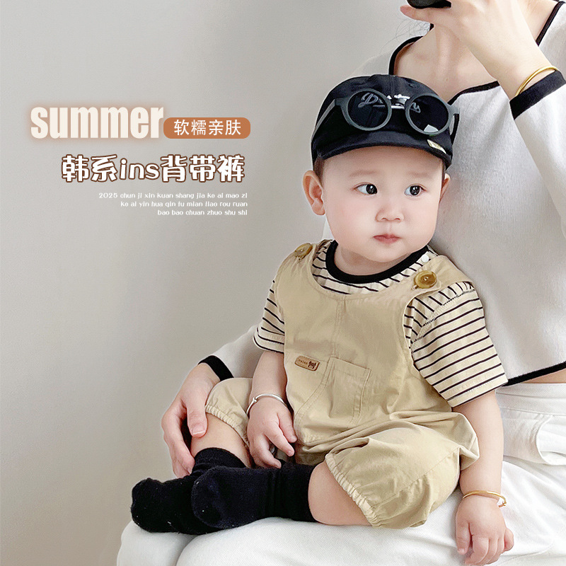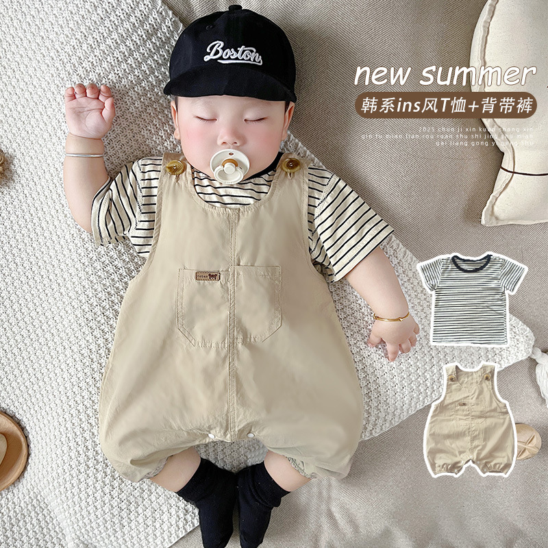 [티셔츠 멜빵 세트] 아기 여름 세트 점프 수트 면 투피스 아기 소년 소녀 옷 조수를 등반