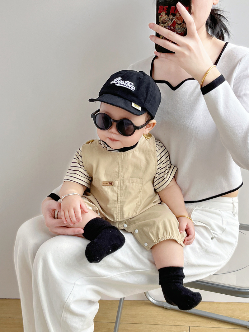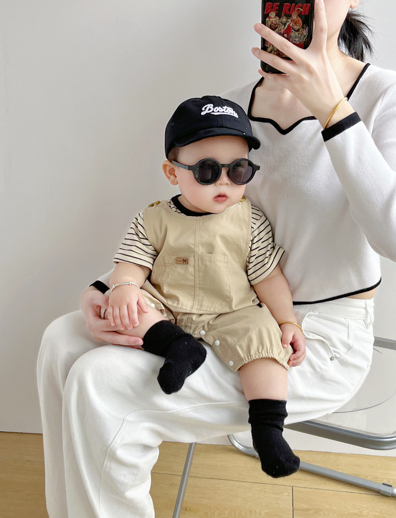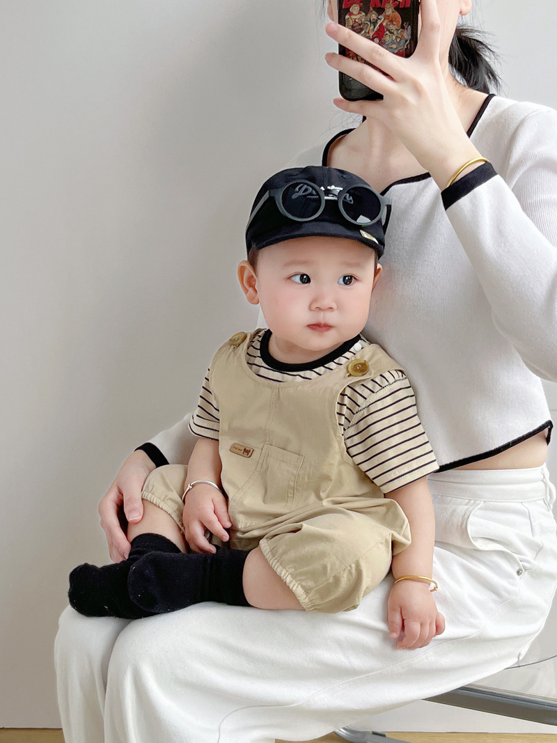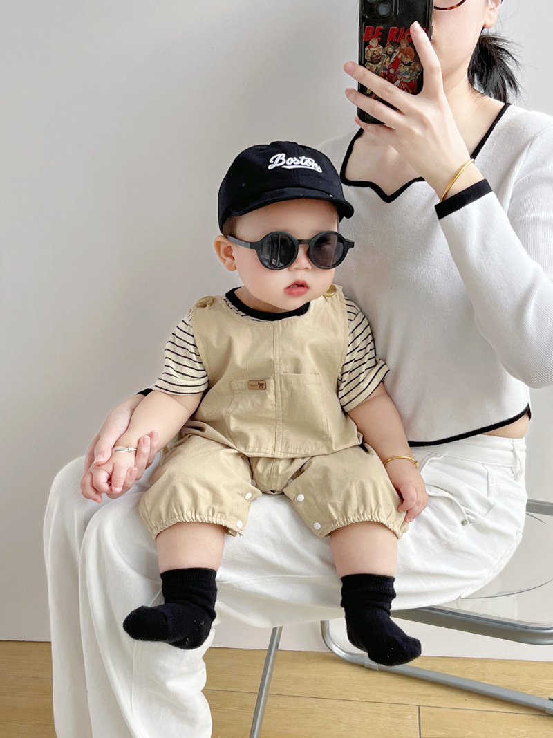 [티셔츠 멜빵 세트] 아기 여름 세트 점프 수트 면 투피스 아기 소년 소녀 옷 조수를 등반