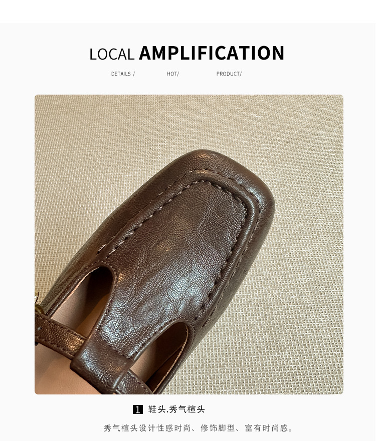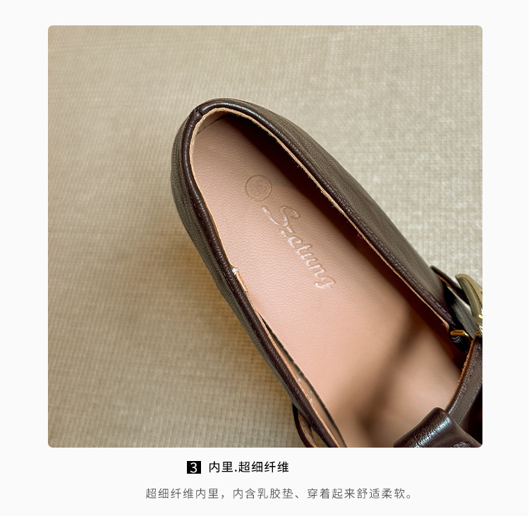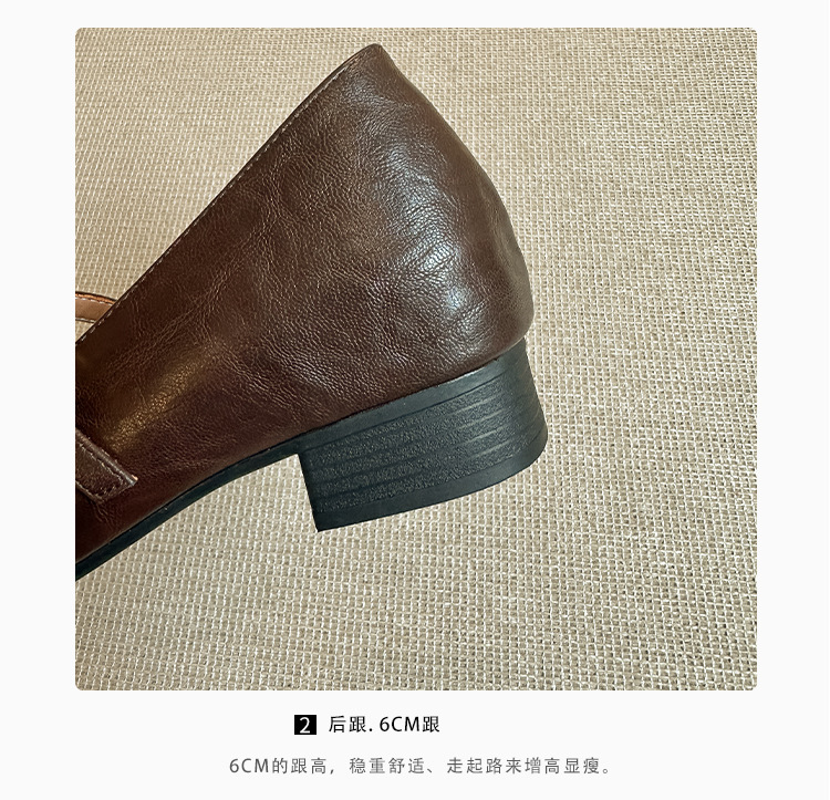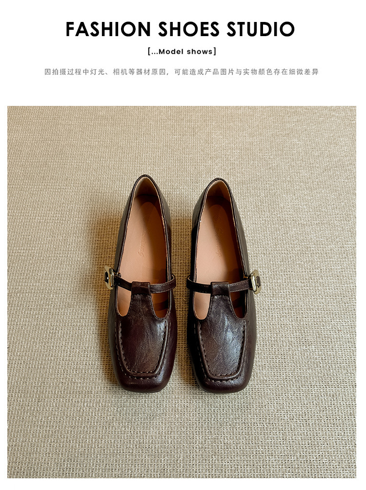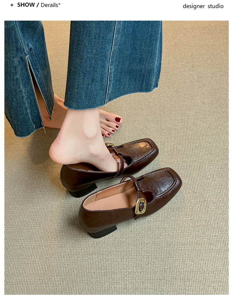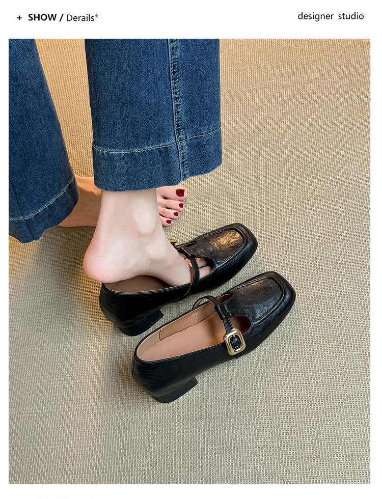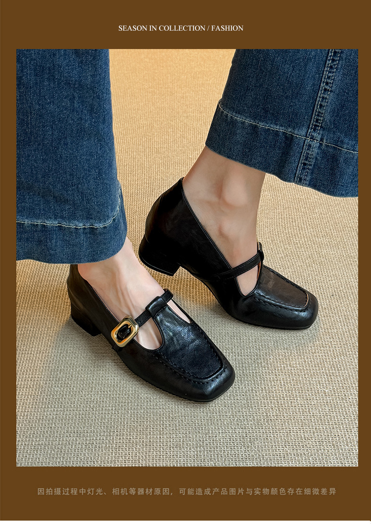 인테리어 높이 증가 광장 발가락 메리 제인 가죽 신발 Cowhide 한 자형 버클 벨트 프랑스 얕은 입 양각 부드러운 밑바닥 낮은 발 뒤꿈치 여성 신발