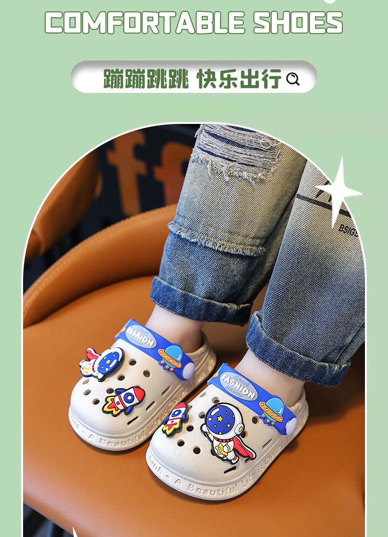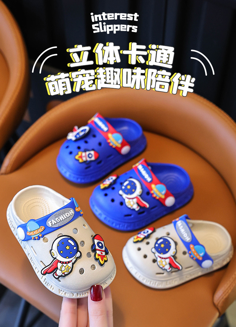 만화 우주인 어린이 샌들과 슬리퍼 여름 소년과 소녀 동굴 신발 외부 발가락 부드러운 밑바닥 미끄럼 방지 아기 샌들