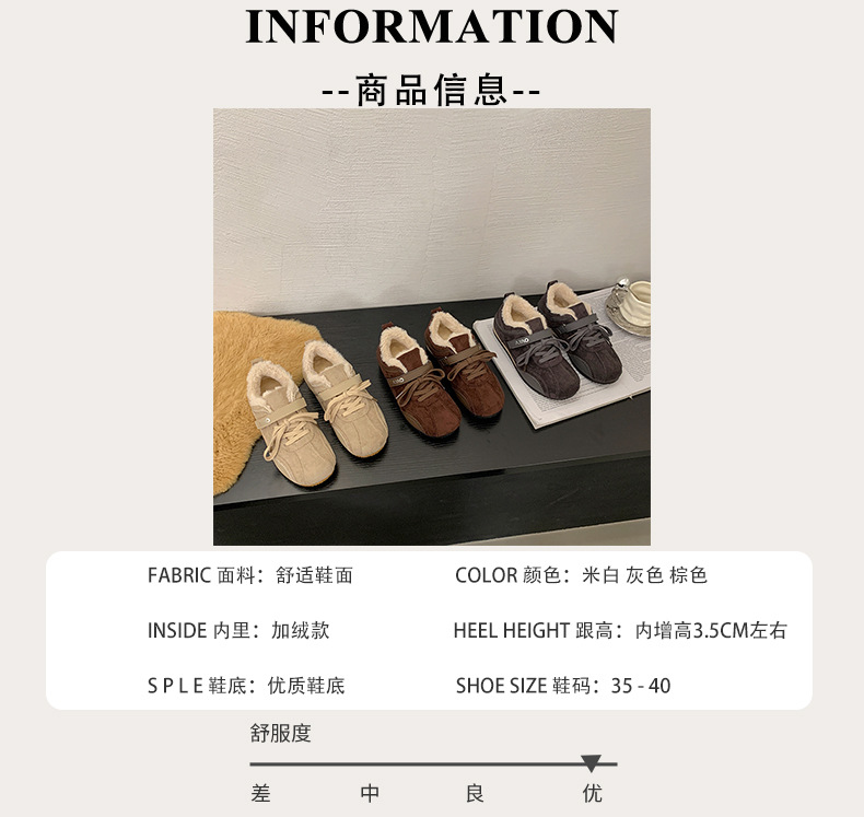 내부 키높이 여성화, 플리스 안감 데일리 슈즈, 2025 겨울 신상, 따뜻한 면화, 가볍고 미끄럼 방지, 버켄슈즈, 운동화스토어 가기