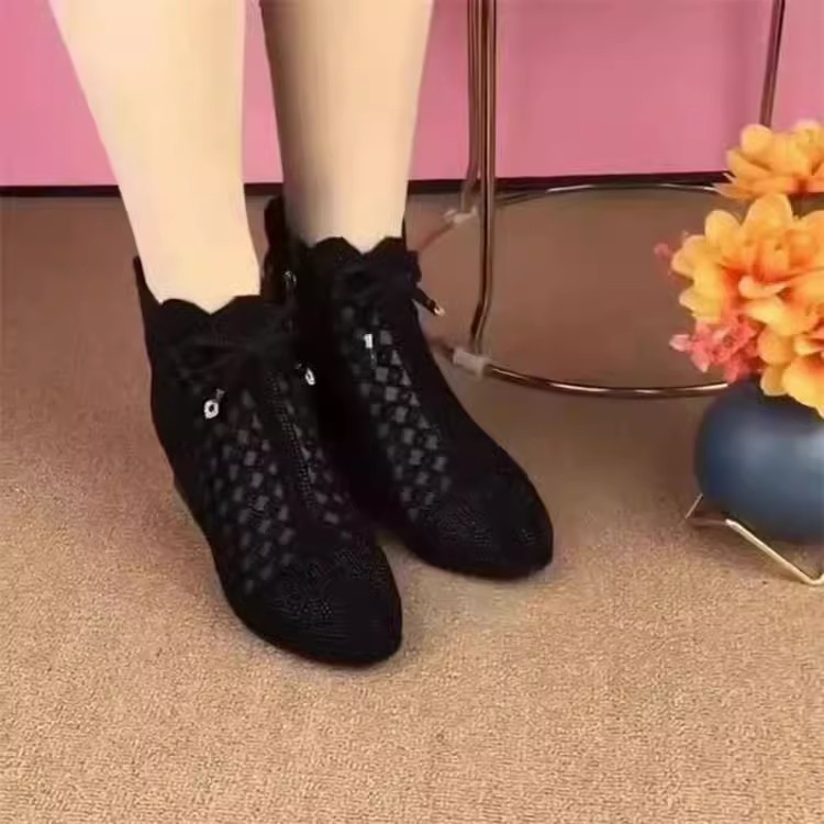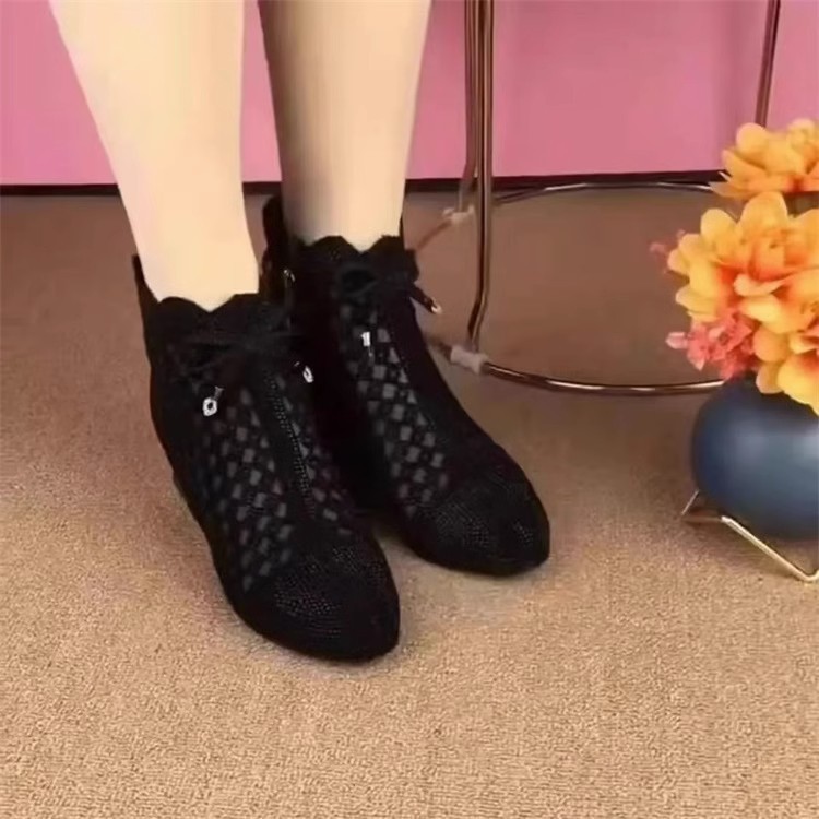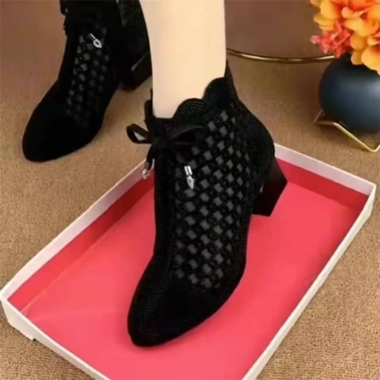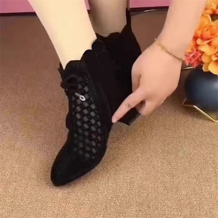 대외 무역 크로스보더 메쉬 중공 뾰족한 발가락 두꺼운 굽 라인스톤 패션 다용도 샌들 짧은 부츠 여성 봄 여름 신작 샌들스토어 가기