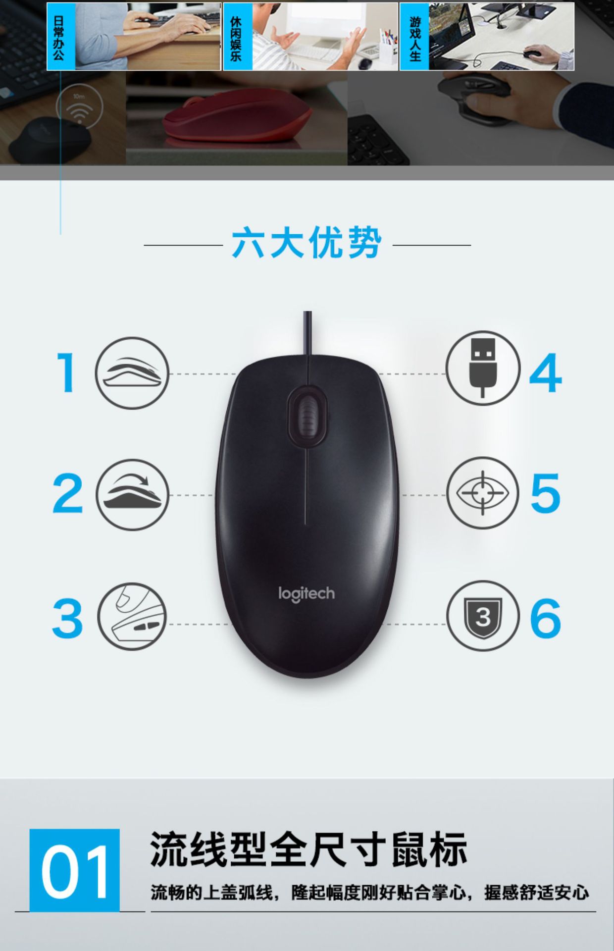 Logitech Logitech M90 유선 마우스 데스크탑 노트북 홈 오피스 컴퓨터 액세서리 도매스토어 가기