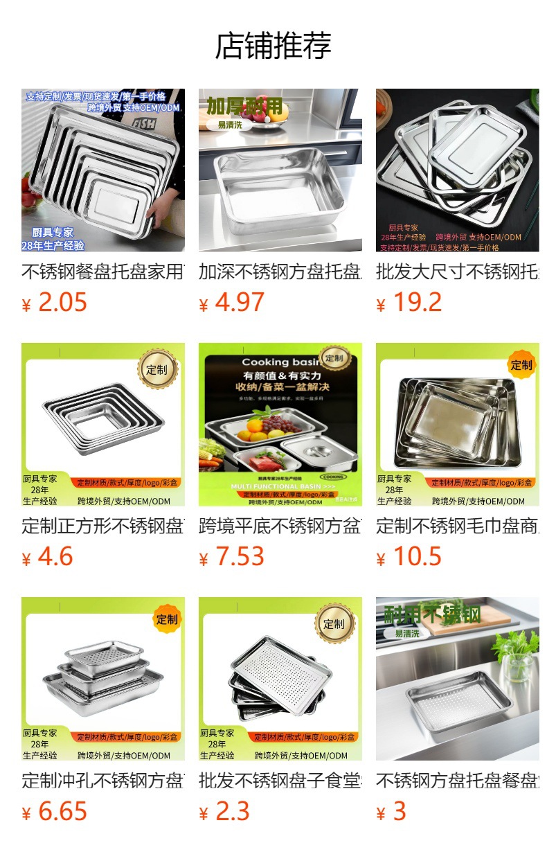 맞춤형 스테인리스 식판, 가정용 및 상업용, 타공 베이킹 트레이, 두꺼운 찜밥 트레이, 호텔 및 학교용 접시, 식기, 해외 판매스토어 가기
