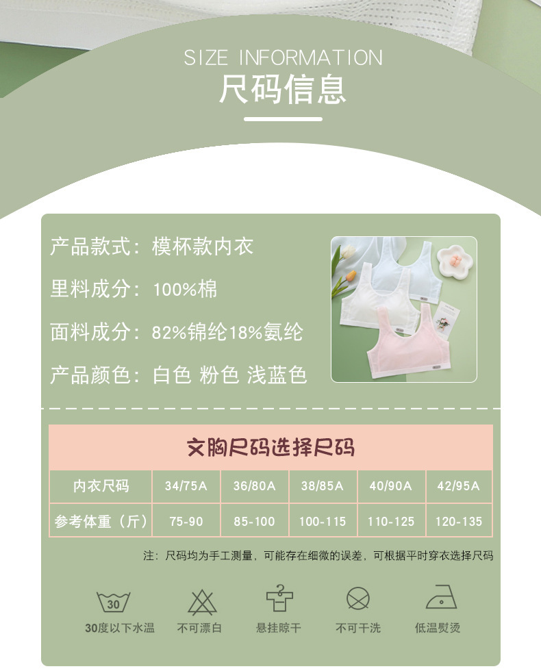 얇은 여름 여아 브라, 중학생 속옷, 여아 및 아동 발달기 조끼, 통기성이 좋고 편안합니다.