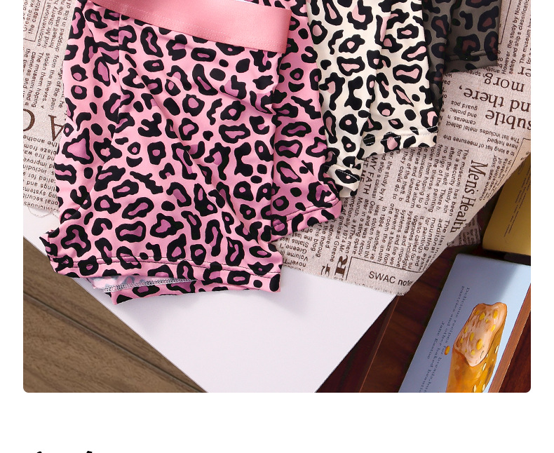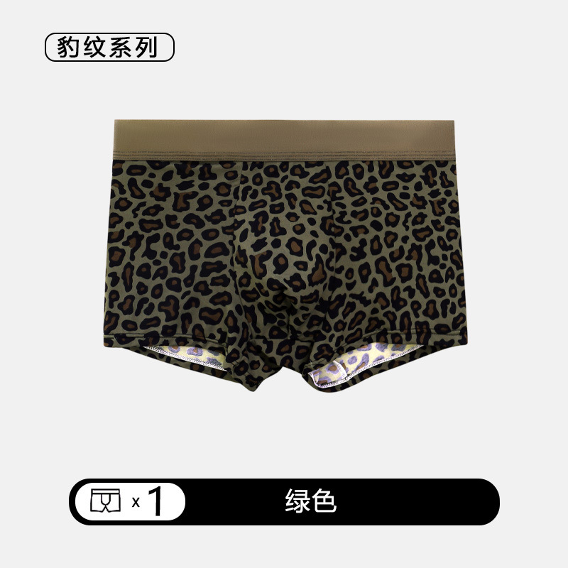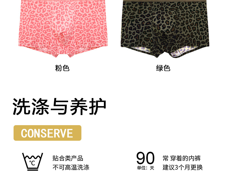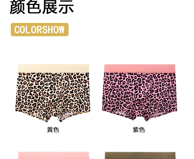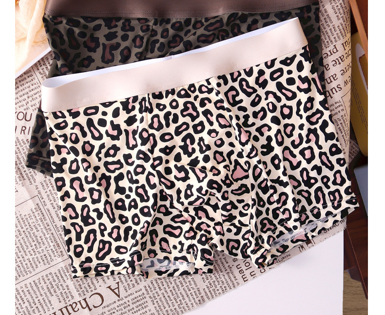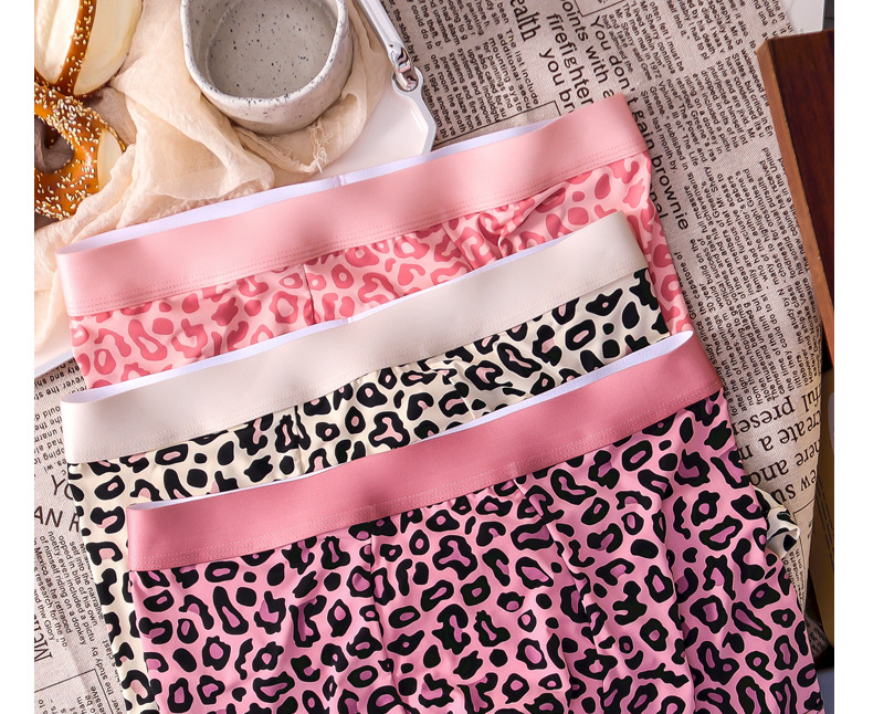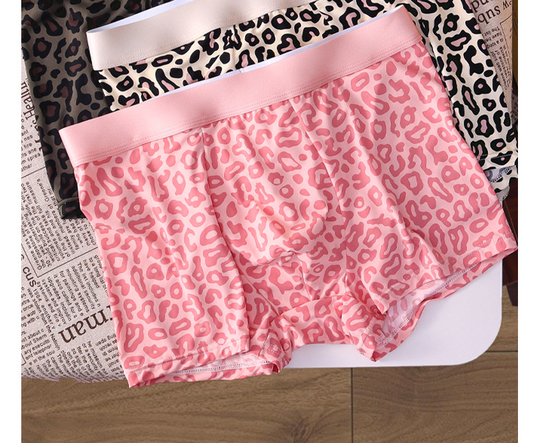 여름 신작 남성용 핑크 레오파드 패턴 속옷, 남성용 복서 팬티, 아이스 실크 누드 복서 팬티, 루즈한 고탄력 반바지스토어 가기