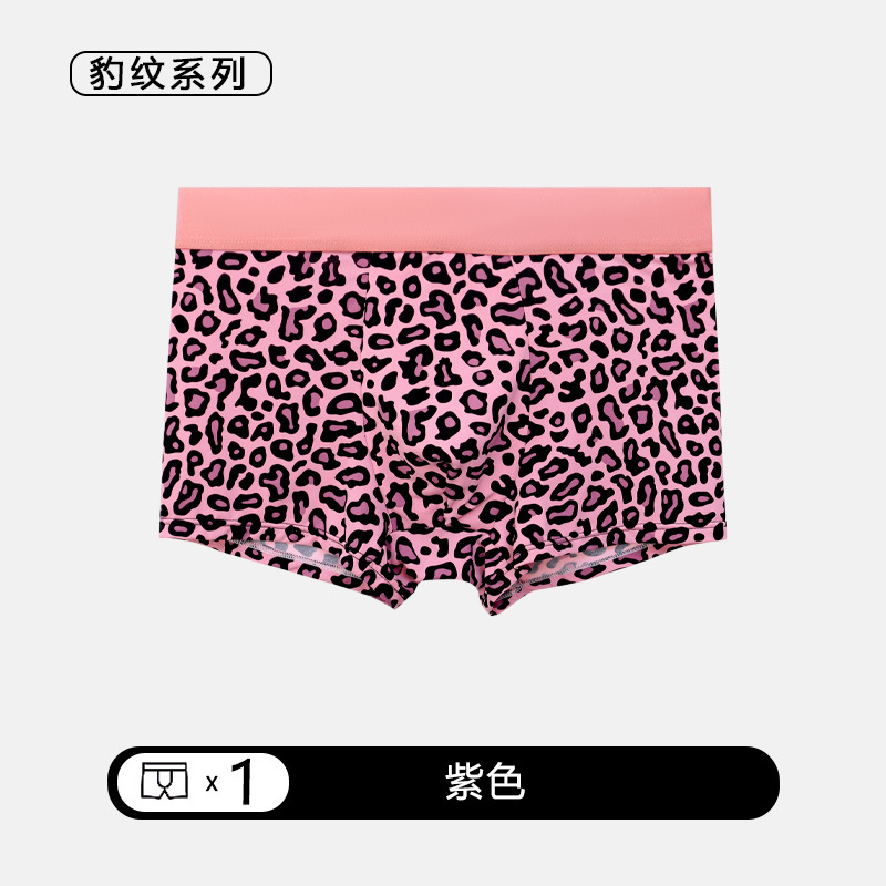 여름 신작 남성용 핑크 레오파드 패턴 속옷, 남성용 복서 팬티, 아이스 실크 누드 복서 팬티, 루즈한 고탄력 반바지
