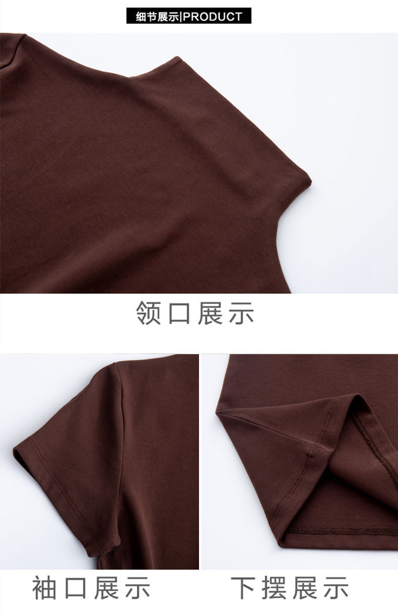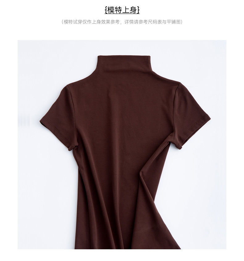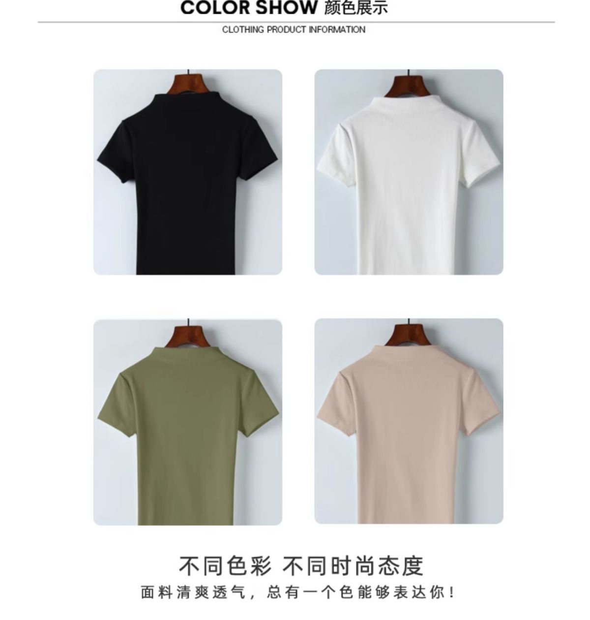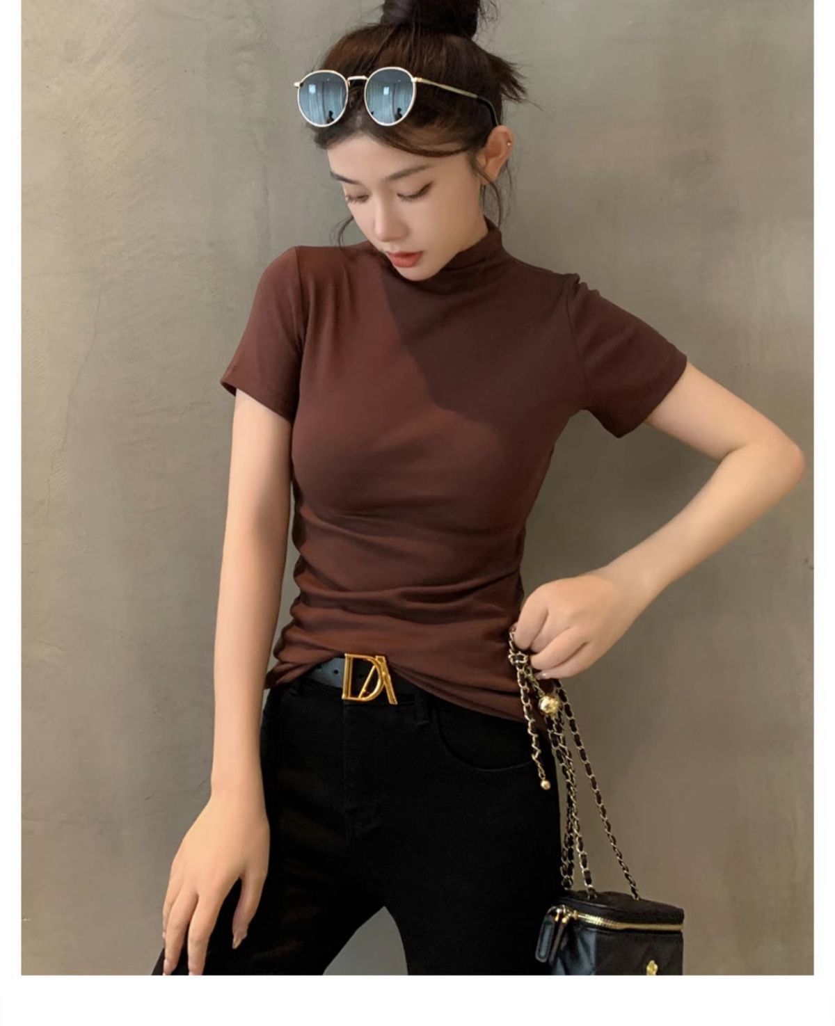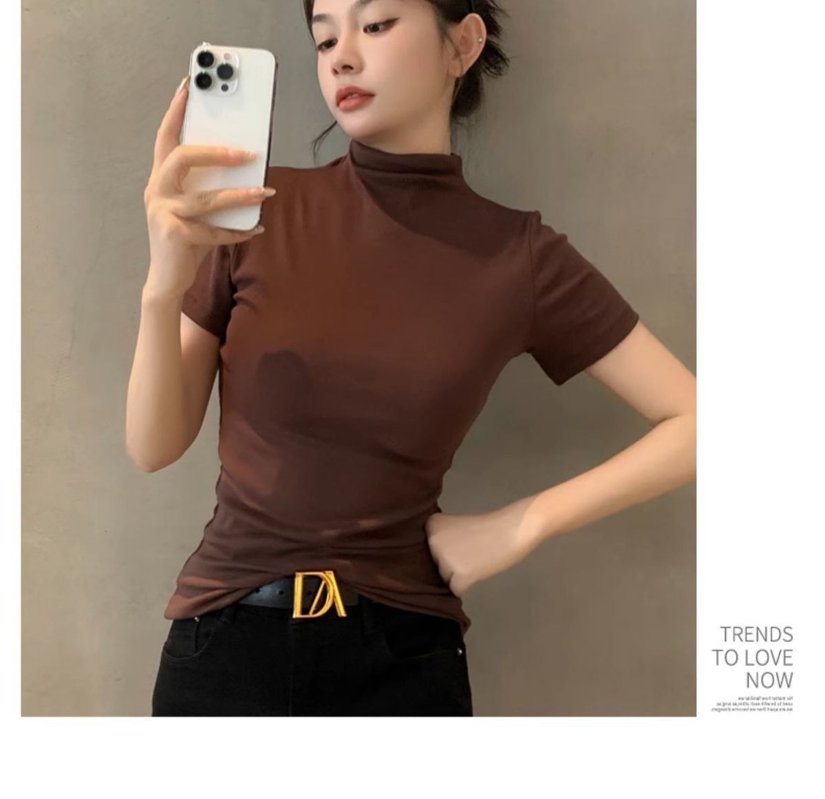여성용 블랙 반팔 티셔츠, 봄 여름 스타일의 고급스러운 실 반팔 탑이 있는 니트 하프 터틀넥 셔츠스토어 가기