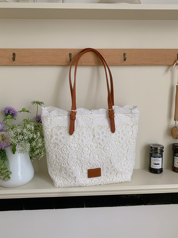 일본식 페어리 레이스 토트 백 2025 새로운 도착 한국 스타일 예술적 올매치 Ins 대용량 휴대용 숄더 백