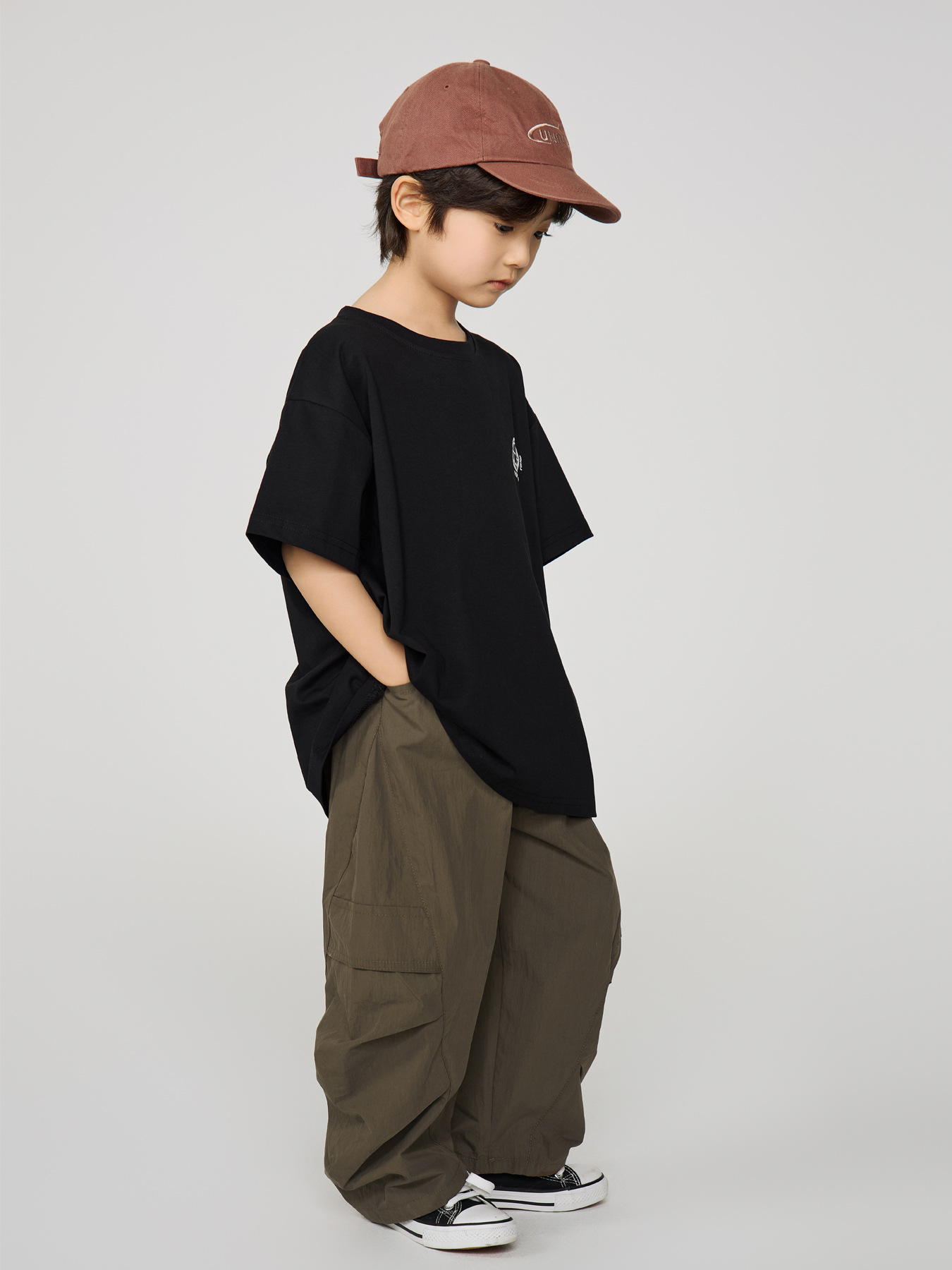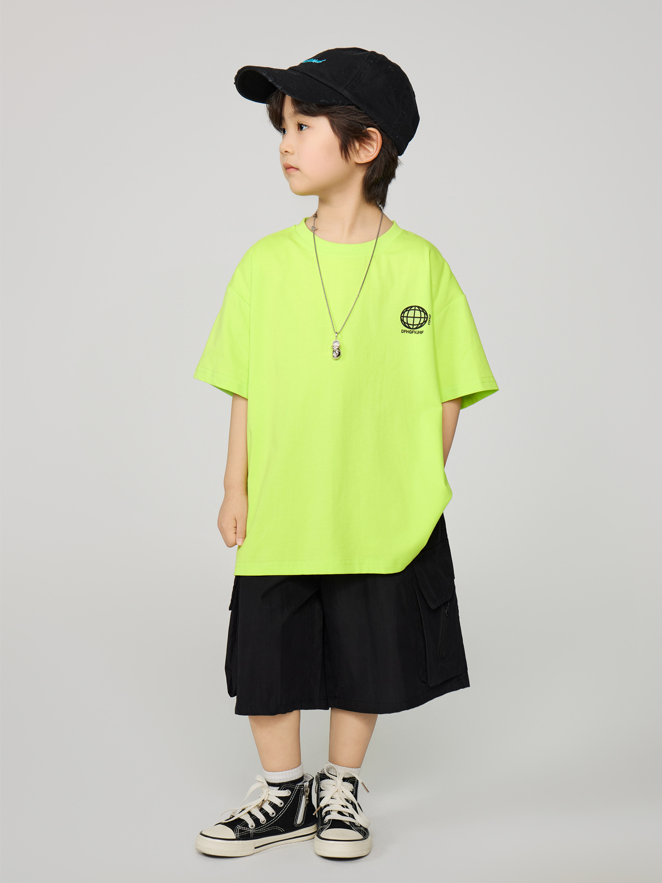 2025 여름 새로운 어린이 일본 스타일 트렌디 브랜드 인쇄 쿨 탑 남성 스타일 느슨한 반팔 티셔츠스토어 가기