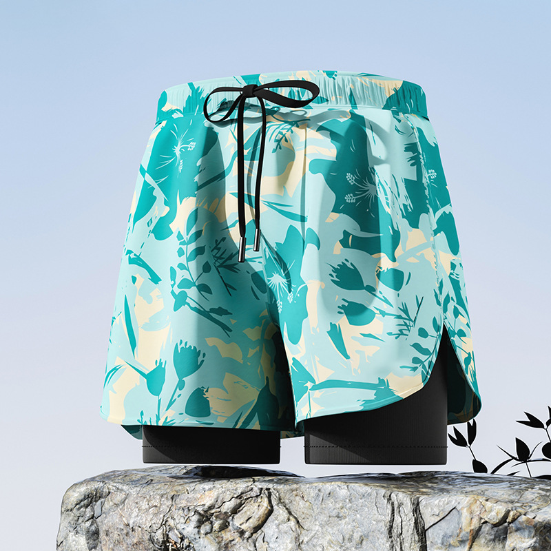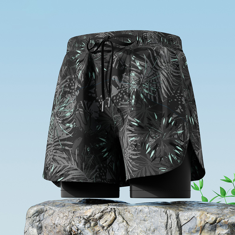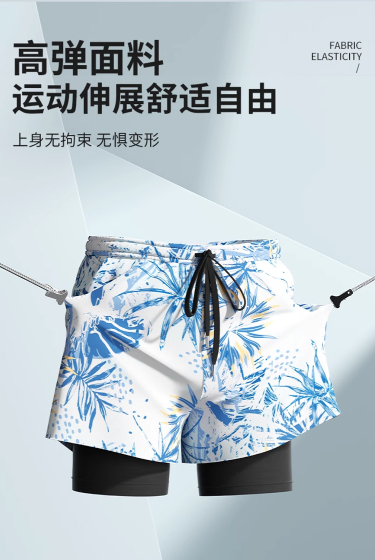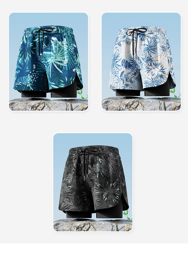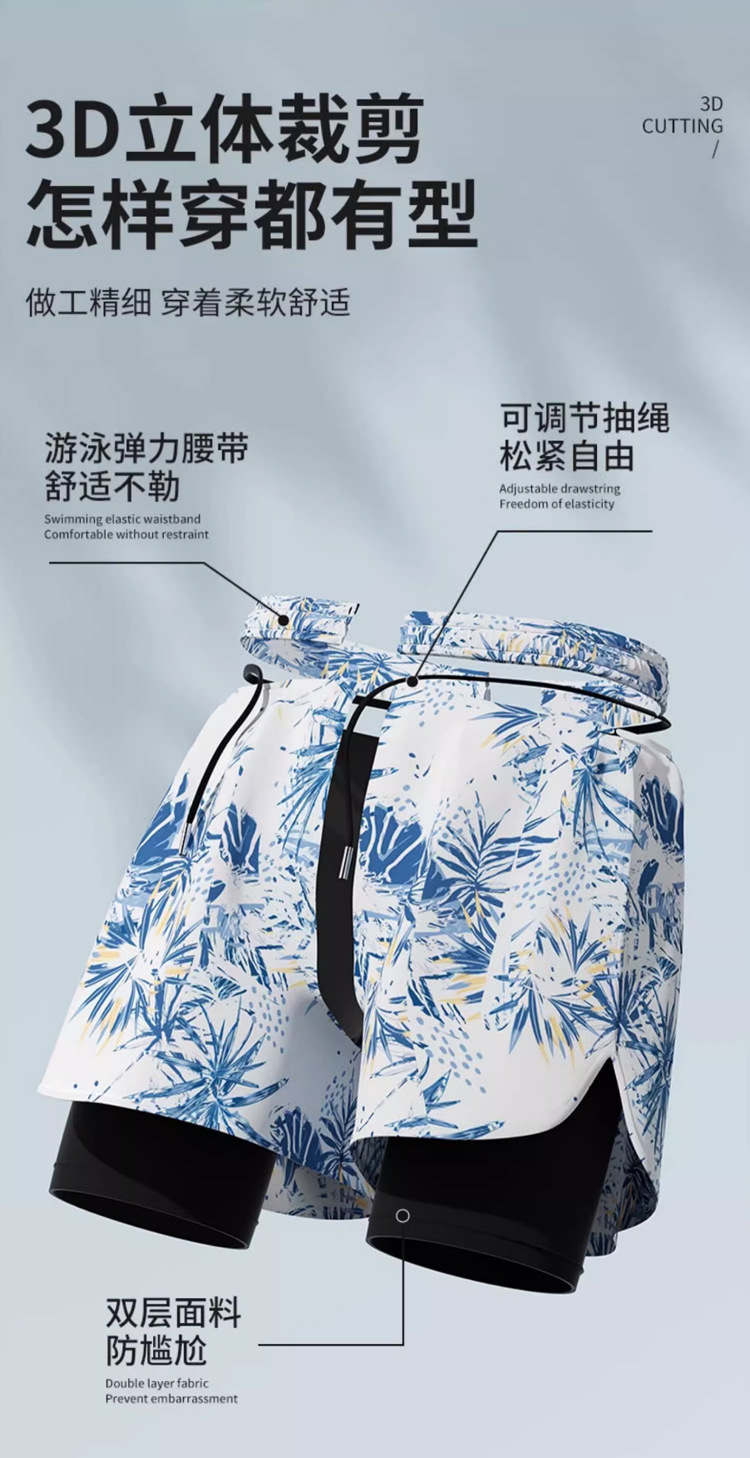 남성용 크로스보더 이중 레이어 루즈핏 수영복, 대형 사이즈, 속건성 수영복, 스포츠 패션 팬츠, 편안한 비치 반바지스토어 가기