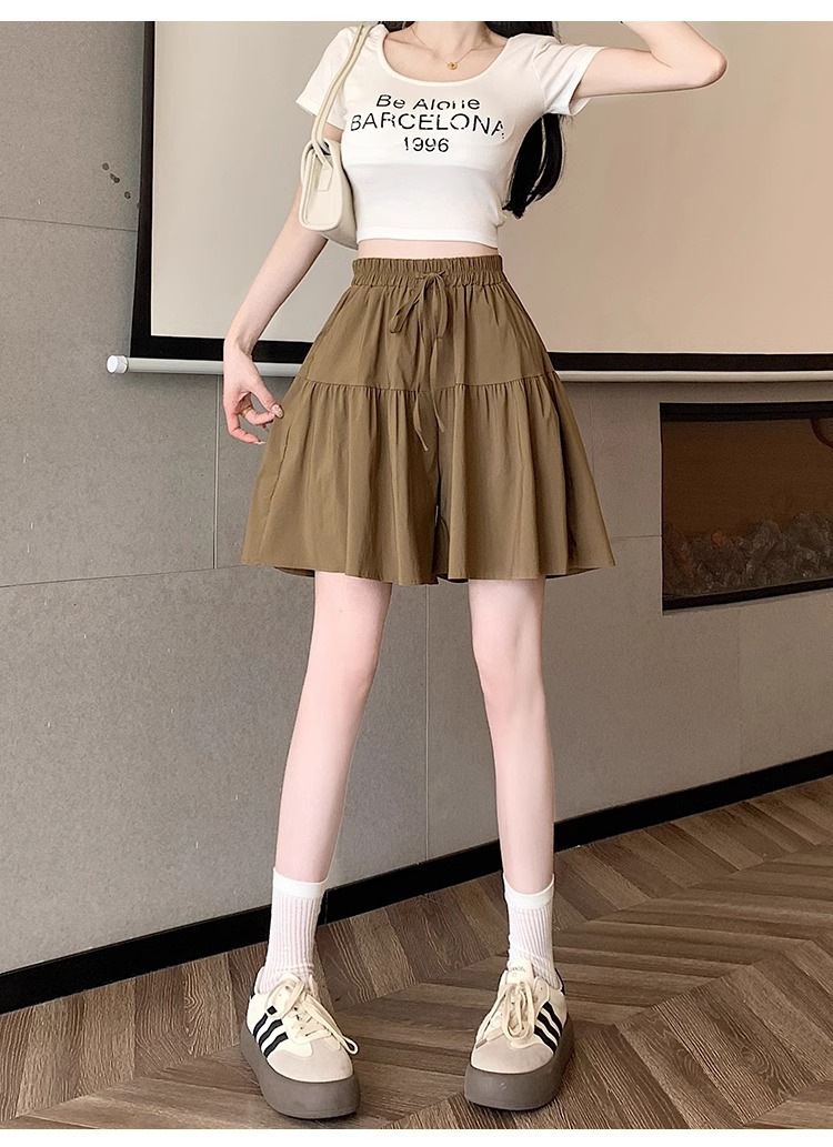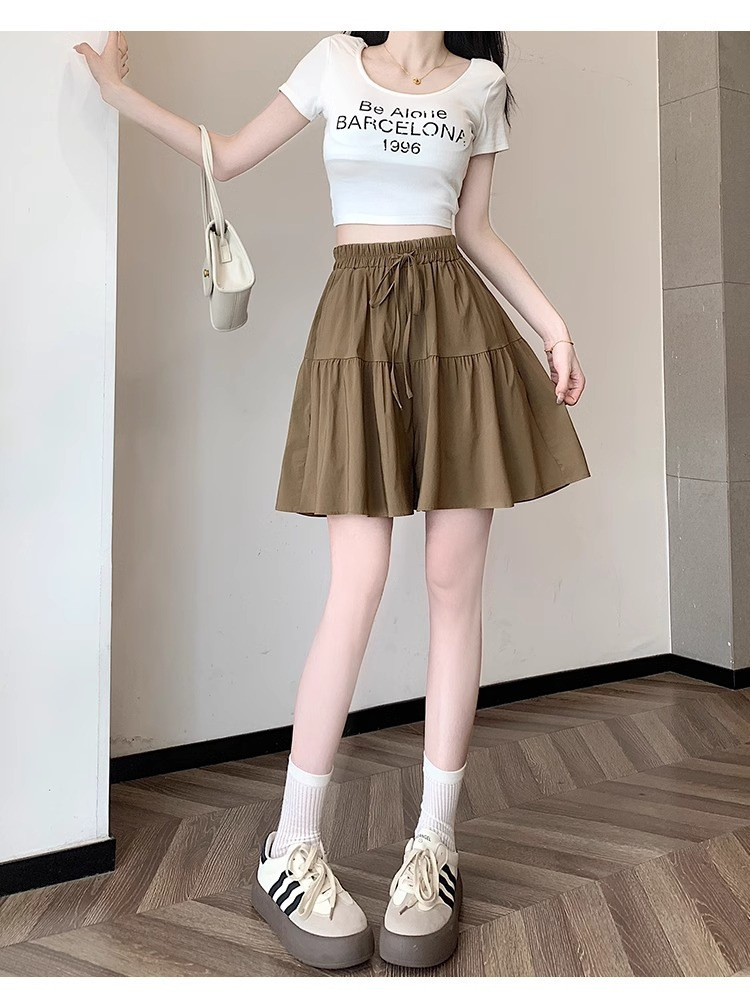 2025 야마모토 반바지 여성 아우터웨어 여름 한국식 하이 웨이스트 와이드 레그 쇼트 팬츠 스커트 A 라인 루즈 반바지 여성 여름스토어 가기